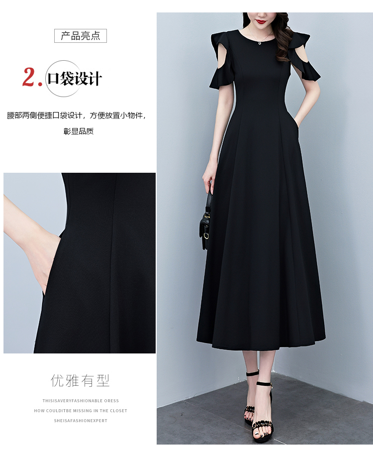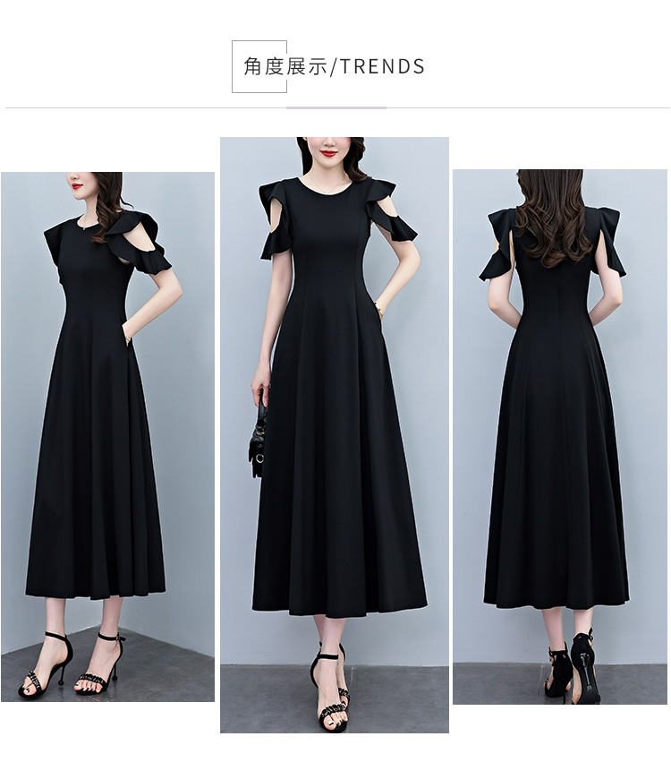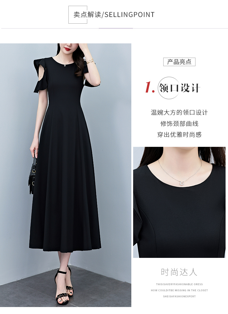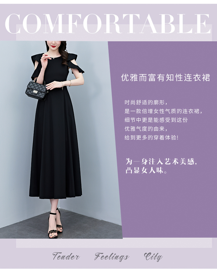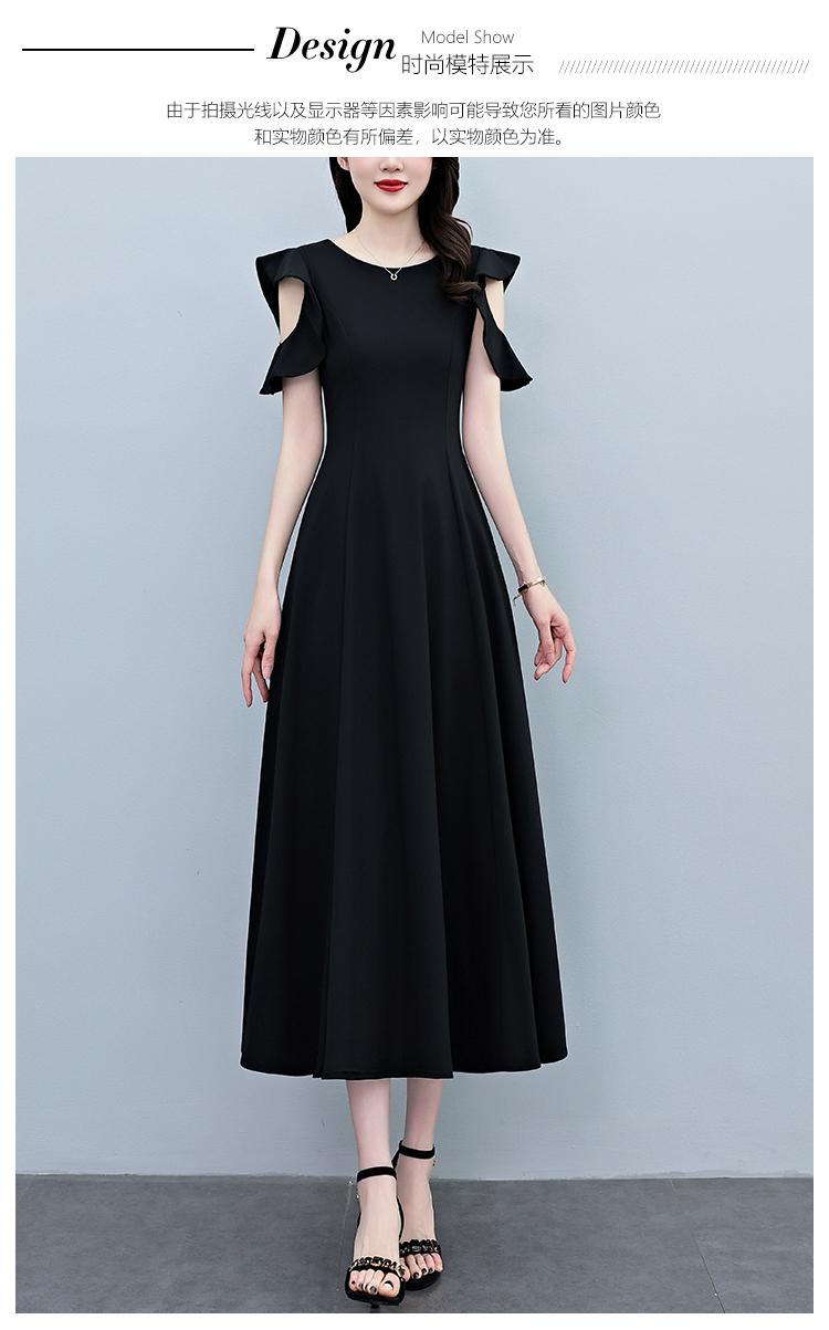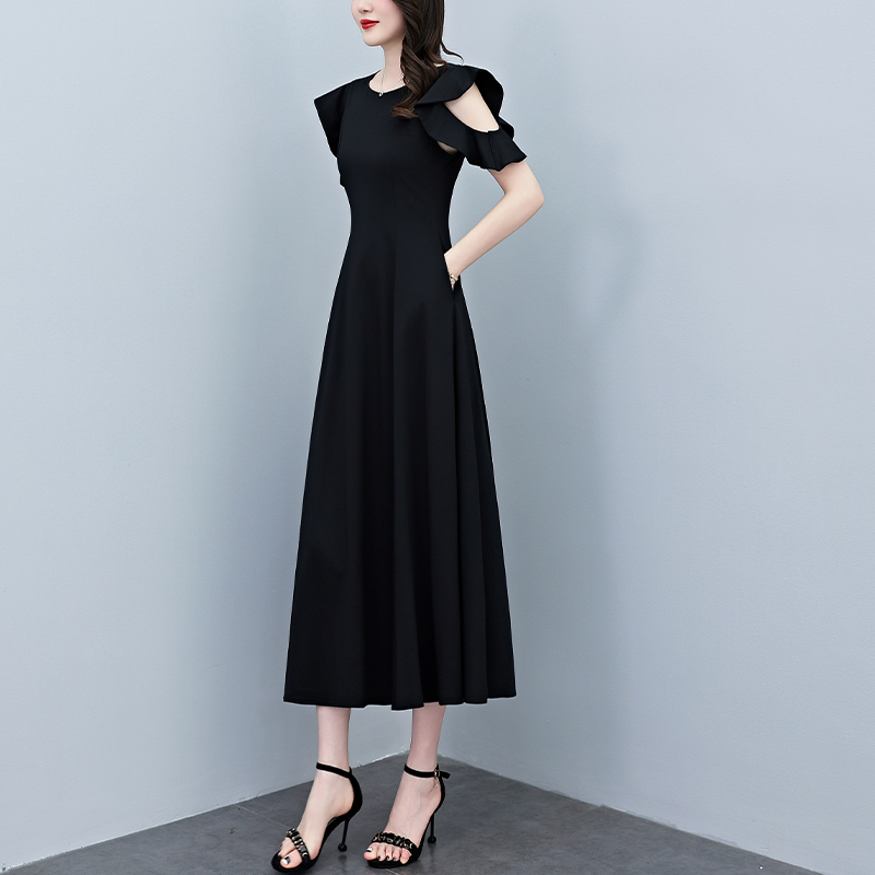 RY3974# 2026夏季新款赫本风黑色连衣裙女夏长款大码收腰显瘦胖mm小黑裙子