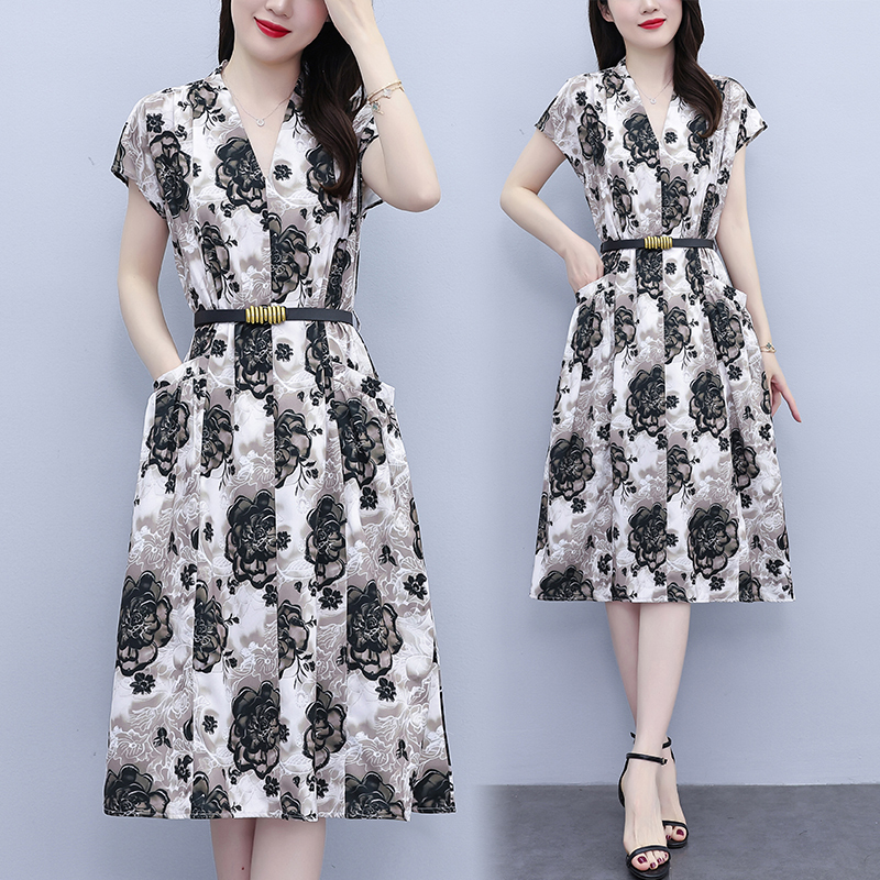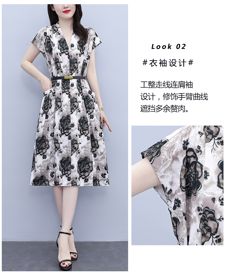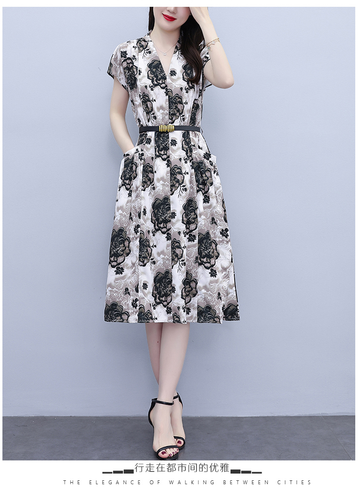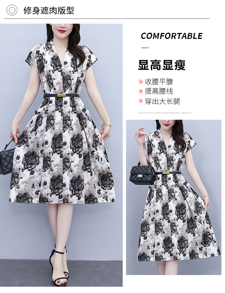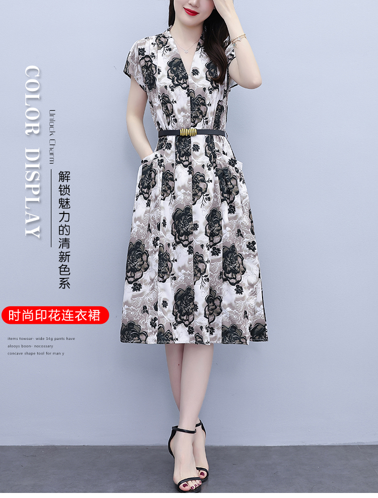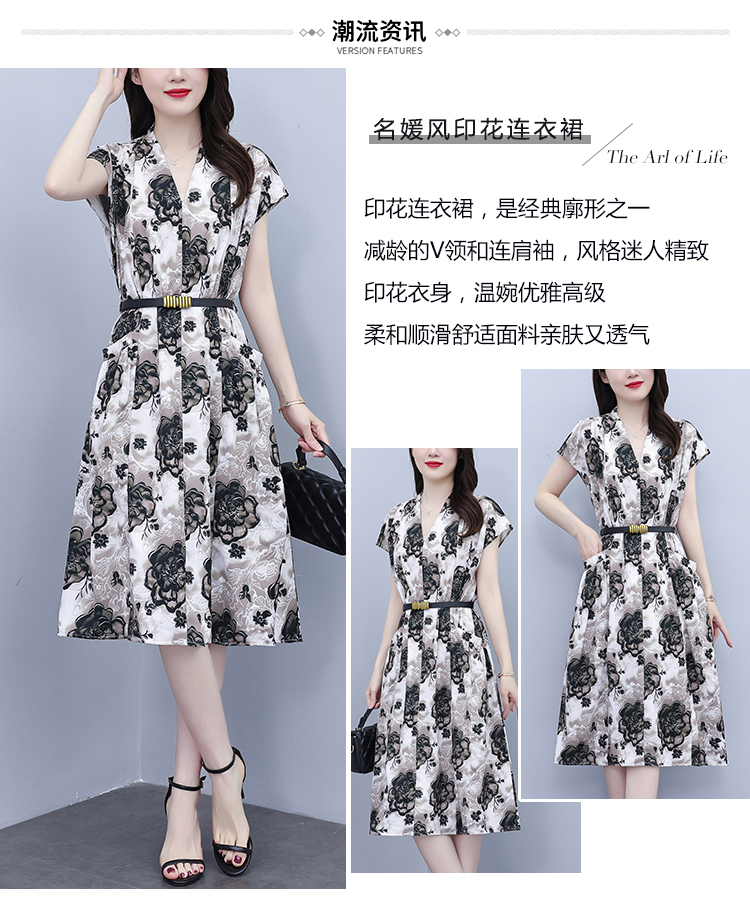 RY3958# 气质妈妈夏装国风改良旗袍连衣裙阔太太高贵裙子中老年女洋气短...