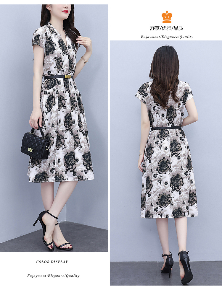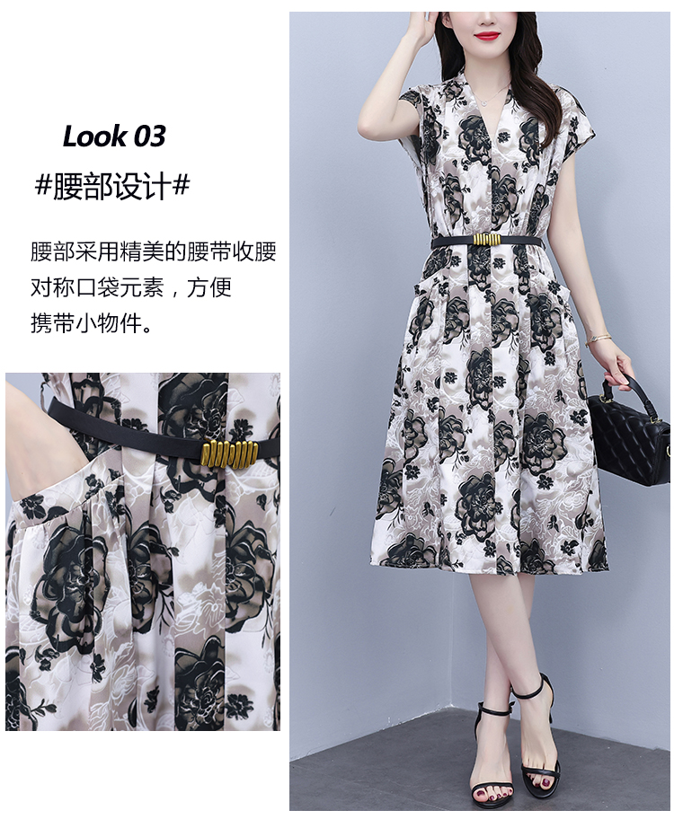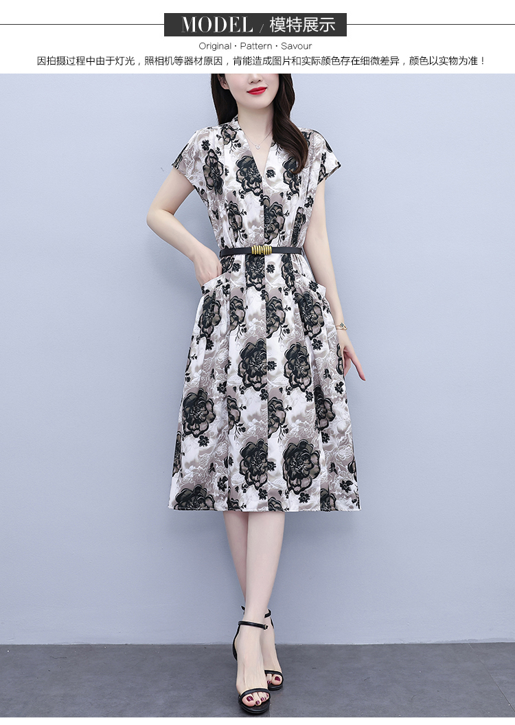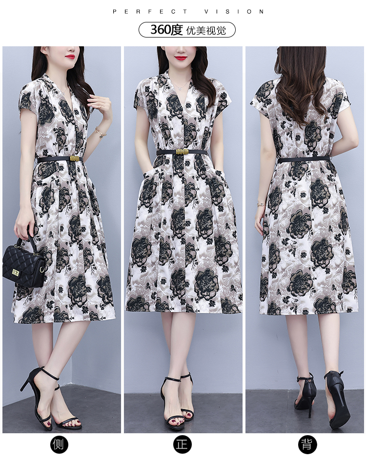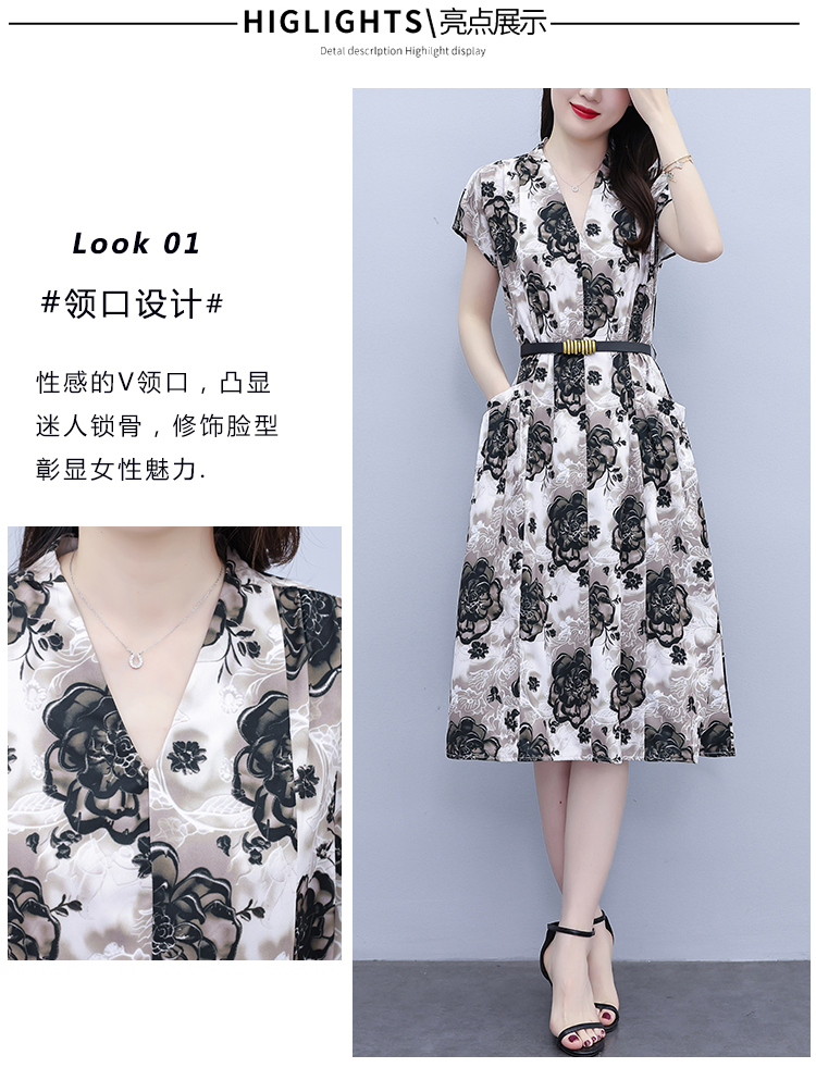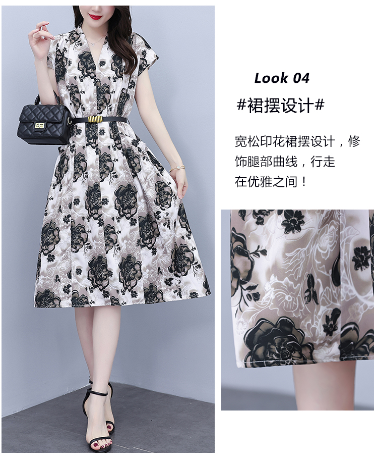 RY3958# 气质妈妈夏装国风改良旗袍连衣裙阔太太高贵裙子中老年女洋气短...