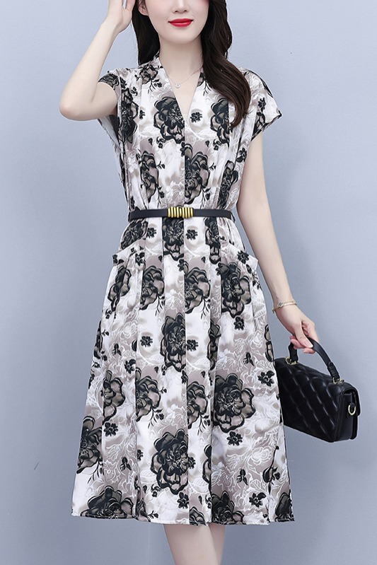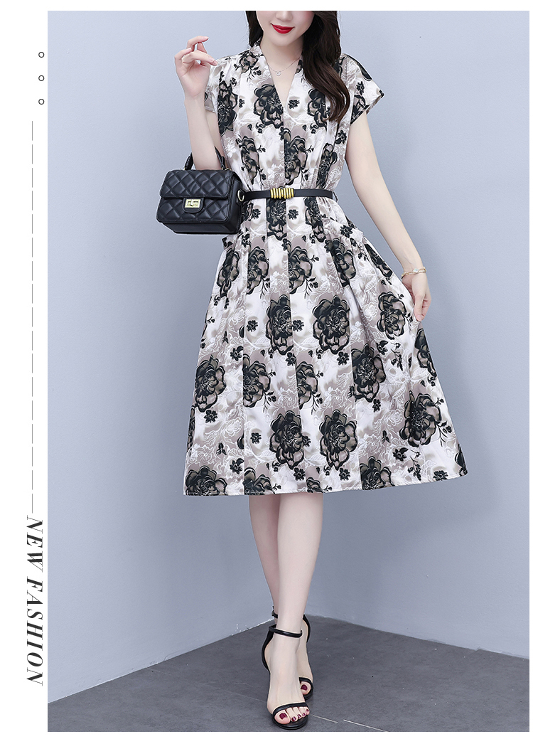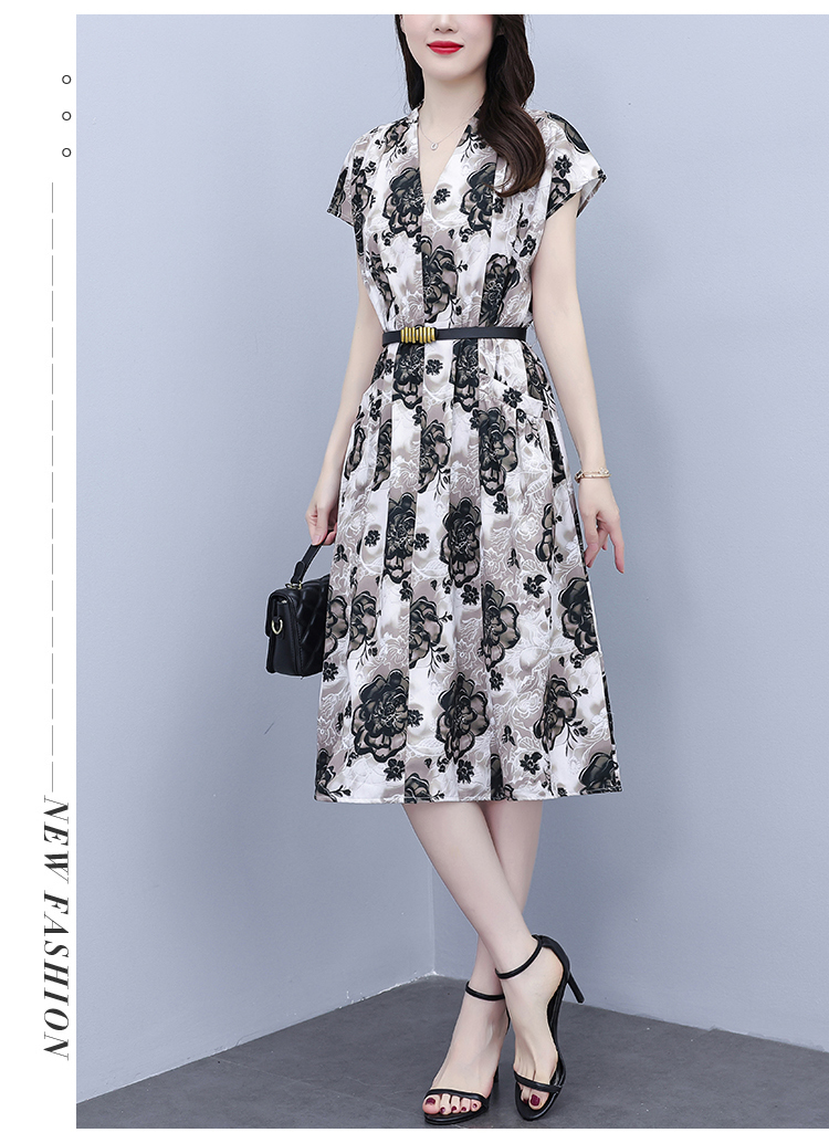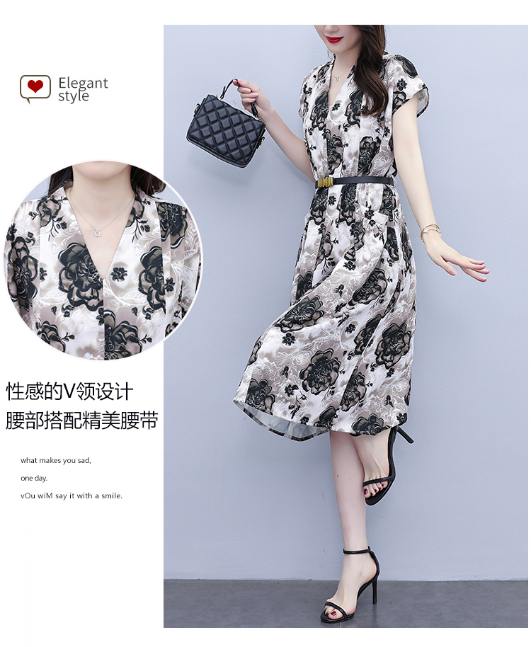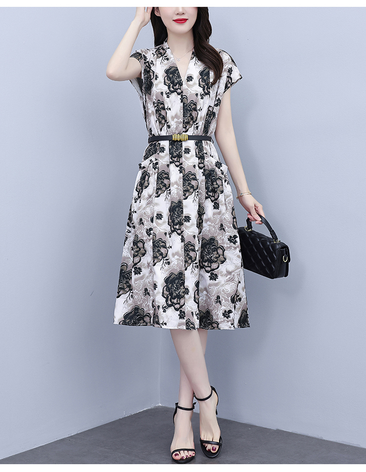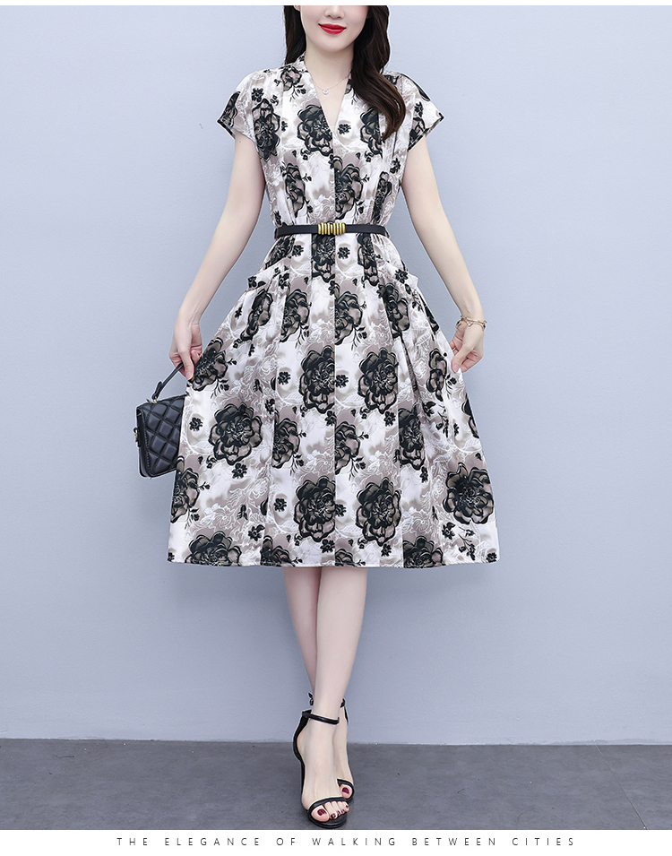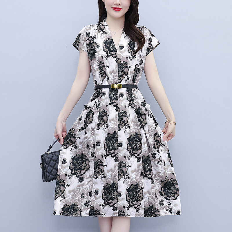 RY3958# 气质妈妈夏装国风改良旗袍连衣裙阔太太高贵裙子中老年女洋气短...