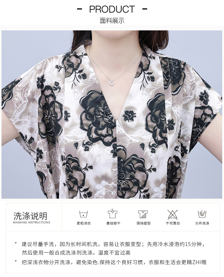 RY3984# 2026夏季新款胖mm西装领雪纺碎花拼接时尚遮肚中年妈妈气...
