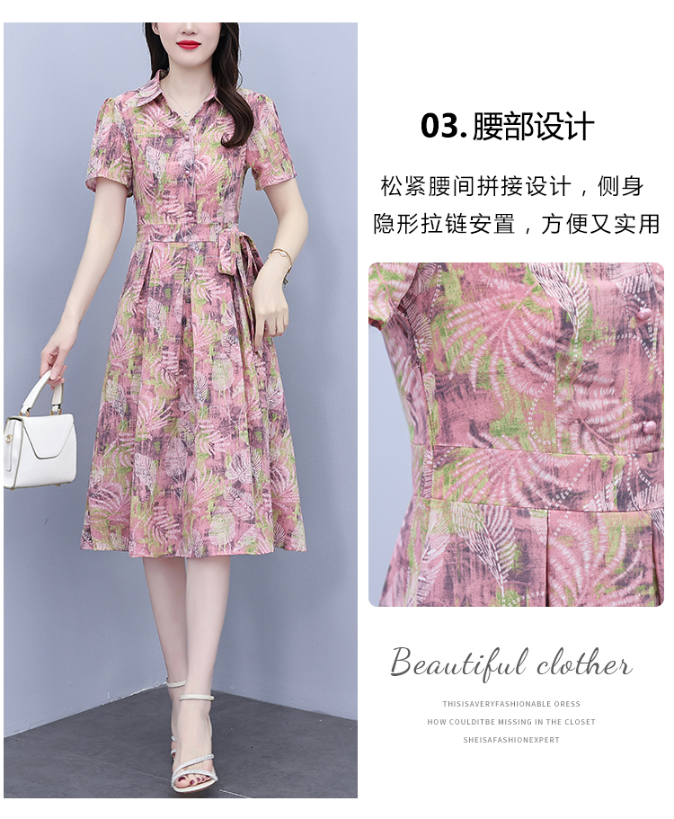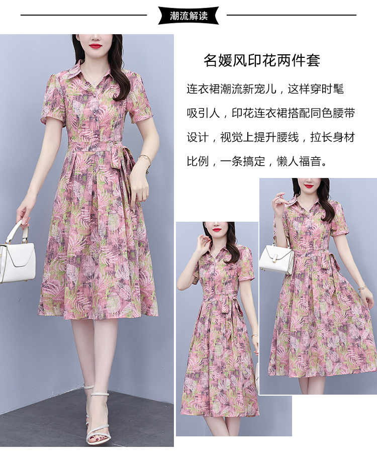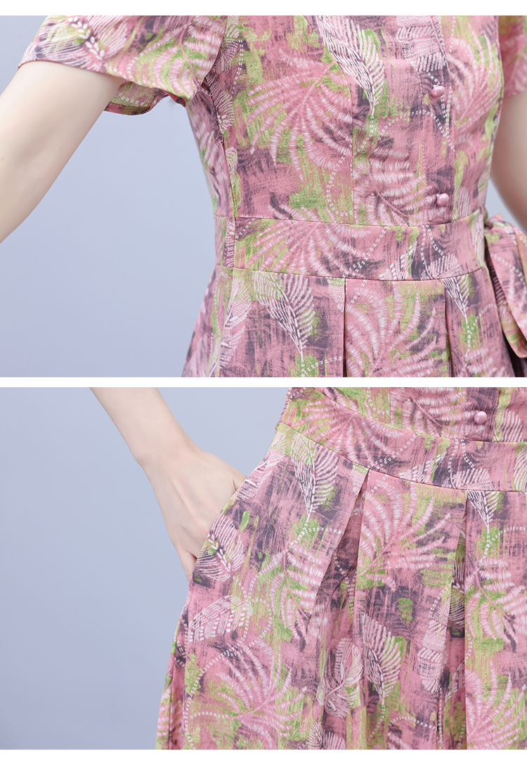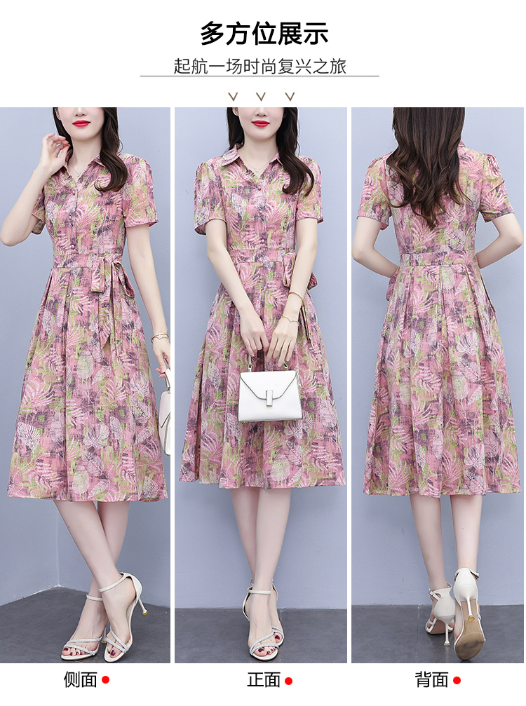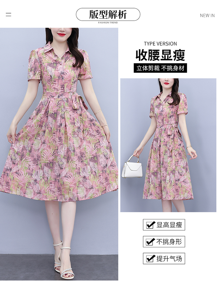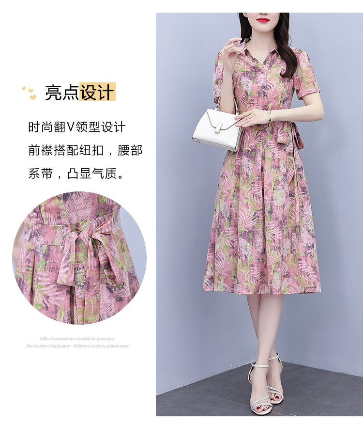RY3978# 真丝桑蚕丝女夏季新款香云纱高端洋气质大码连衣裙妈妈印花裙子