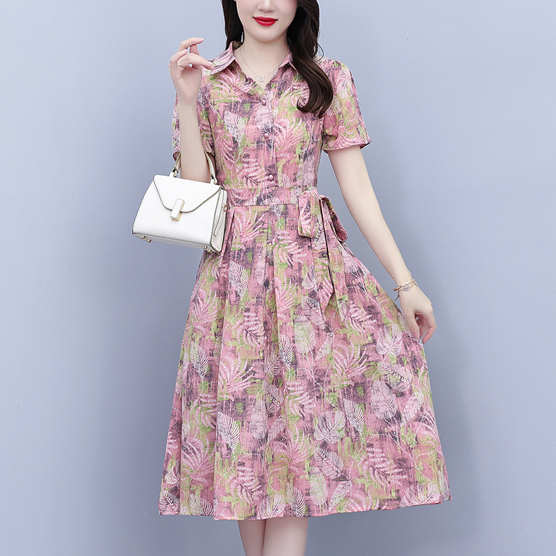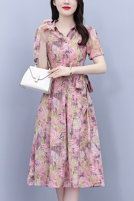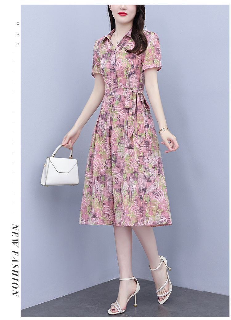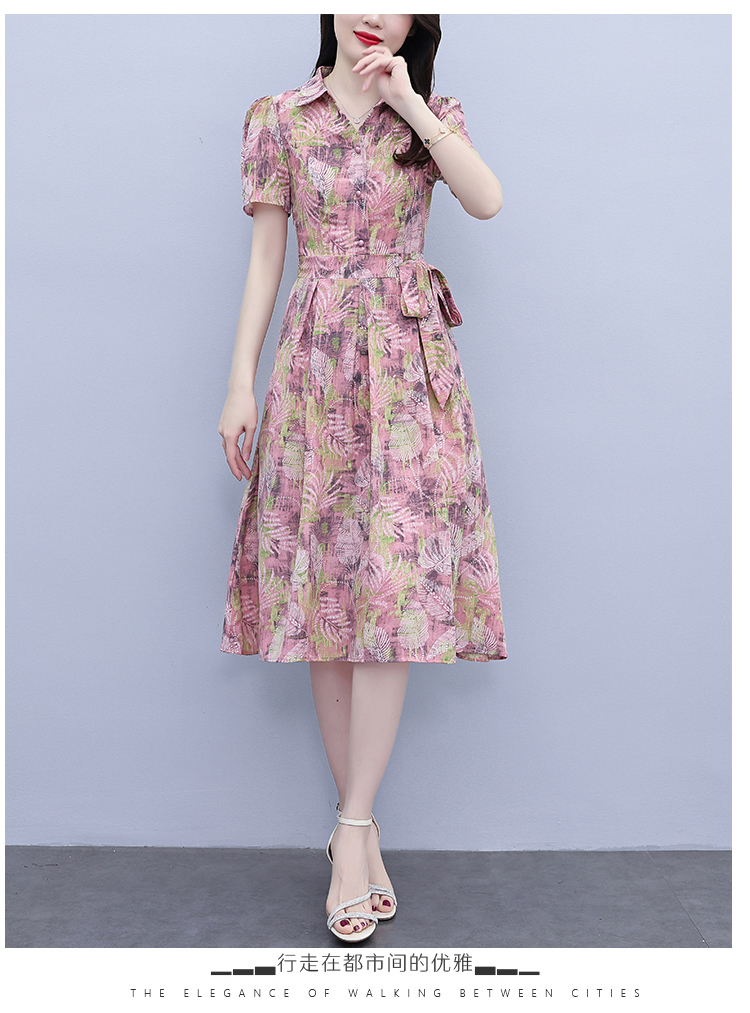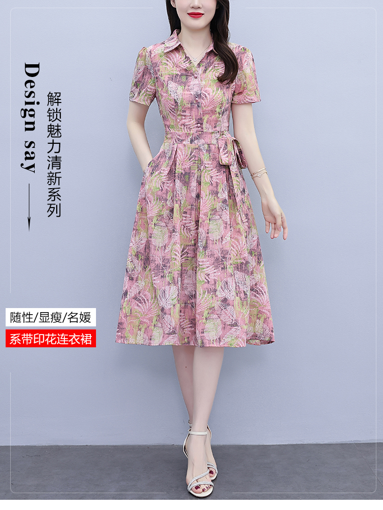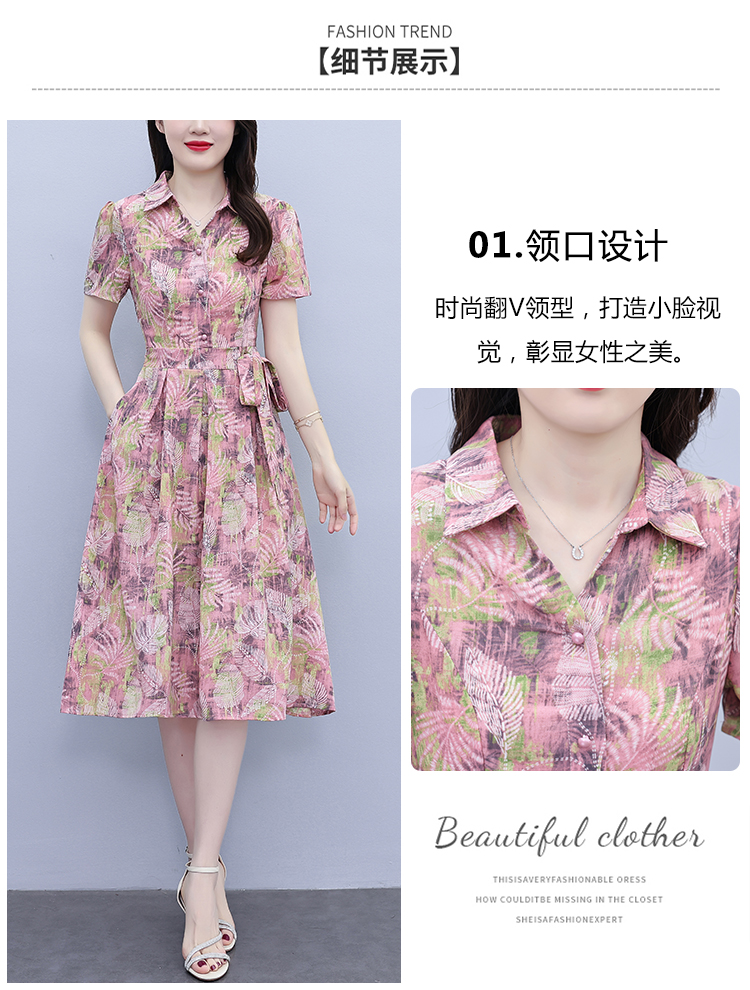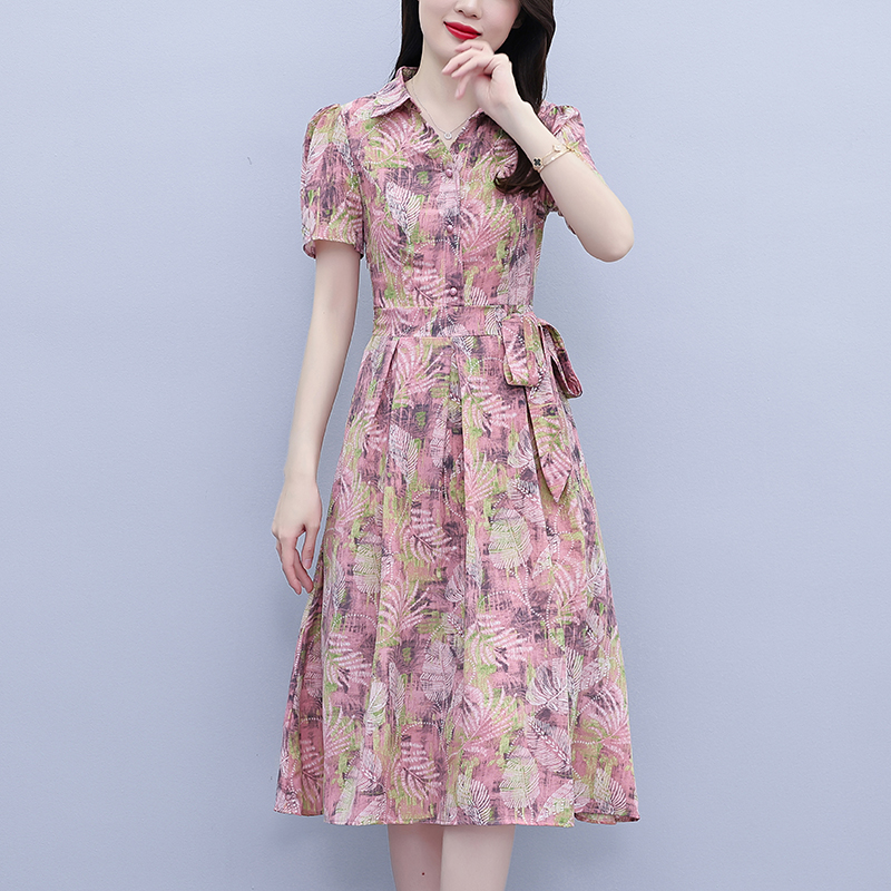 RY3978# 真丝桑蚕丝女夏季新款香云纱高端洋气质大码连衣裙妈妈印花裙子