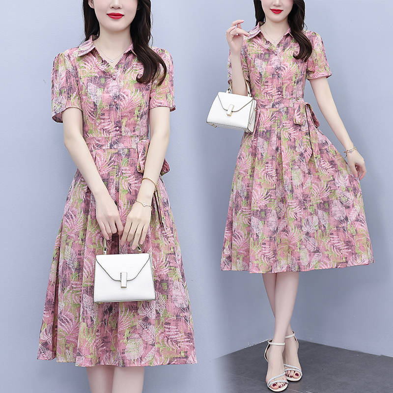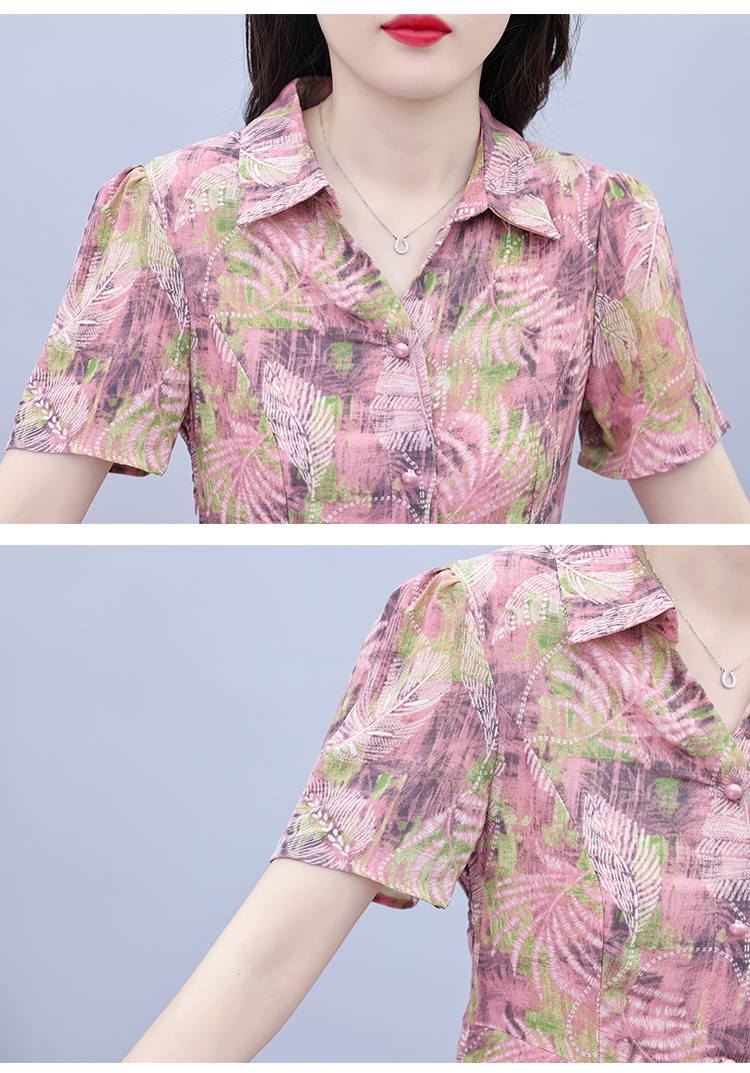 RY3983# 2026夏季大码女装胖mm雪纺碎花短袖修身显瘦中年妈妈遮肚...