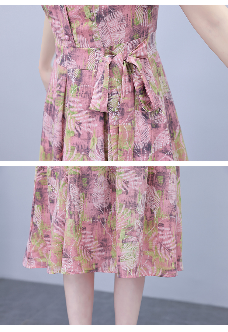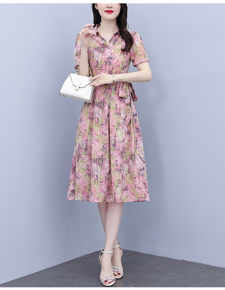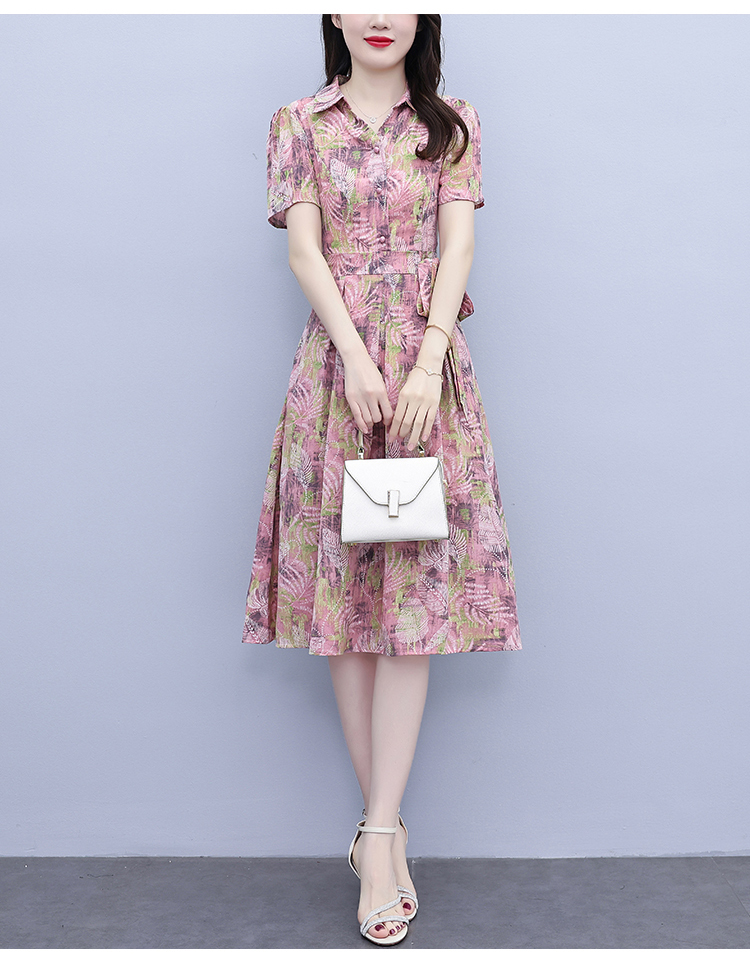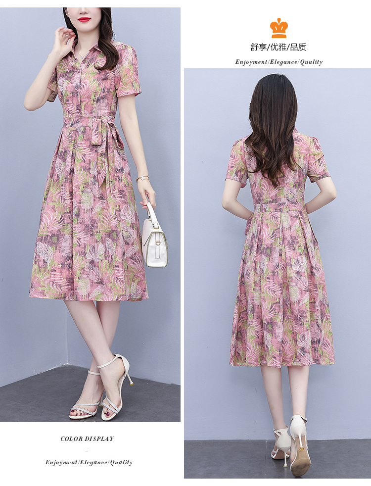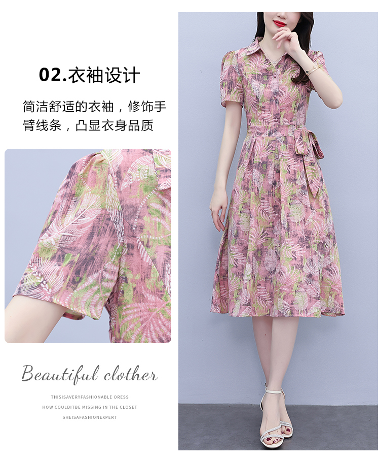 RY3968# 夏季新款高档印花雪纺连衣裙长款大码收腰显瘦遮肚子长裙