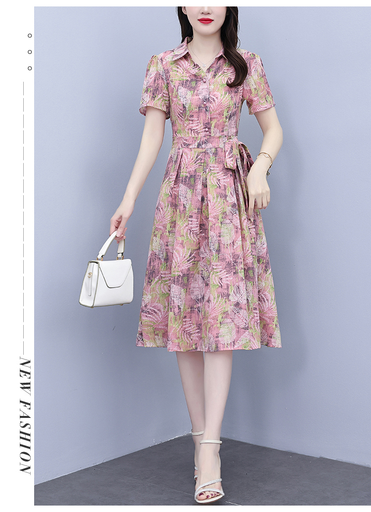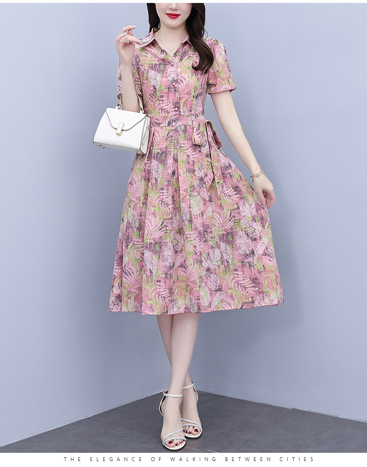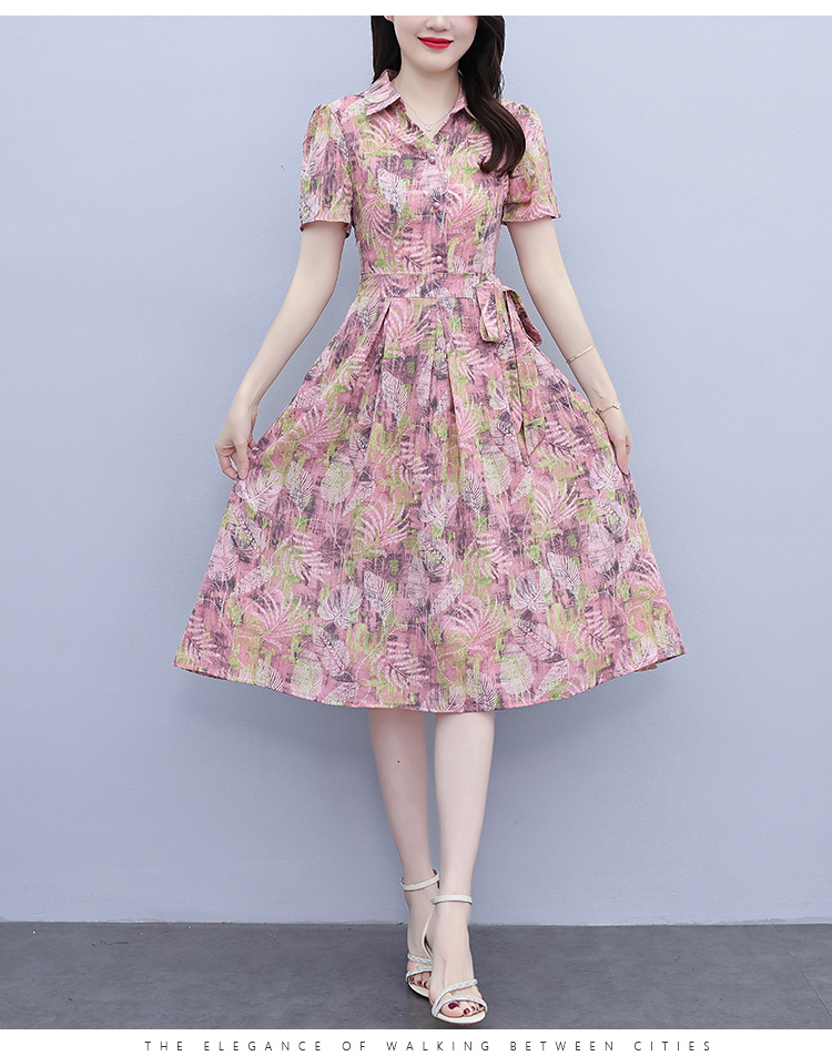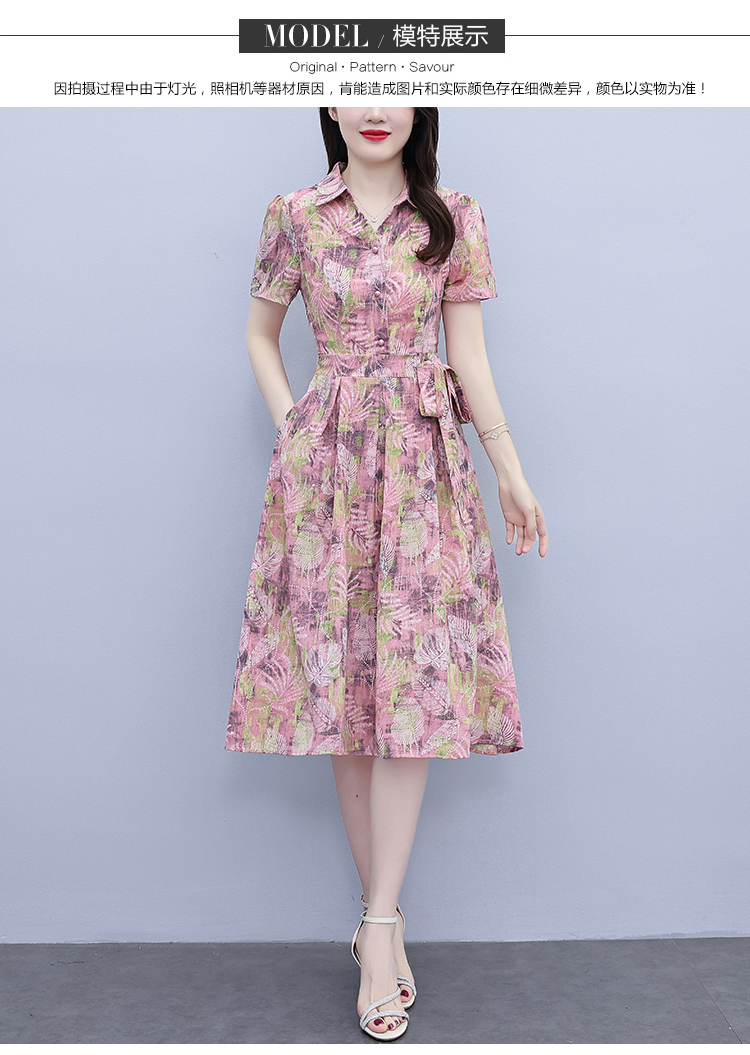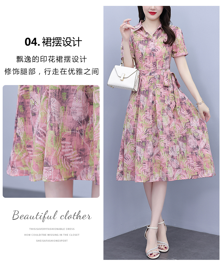 RY3968# 夏季新款高档印花雪纺连衣裙长款大码收腰显瘦遮肚子长裙