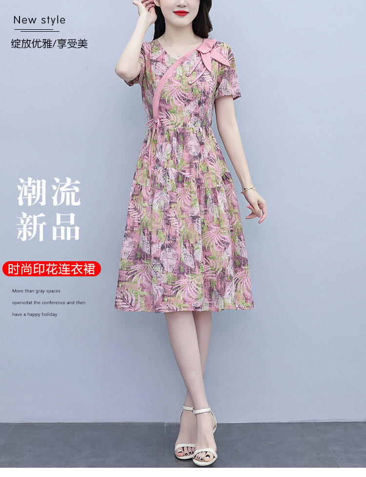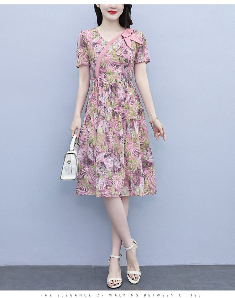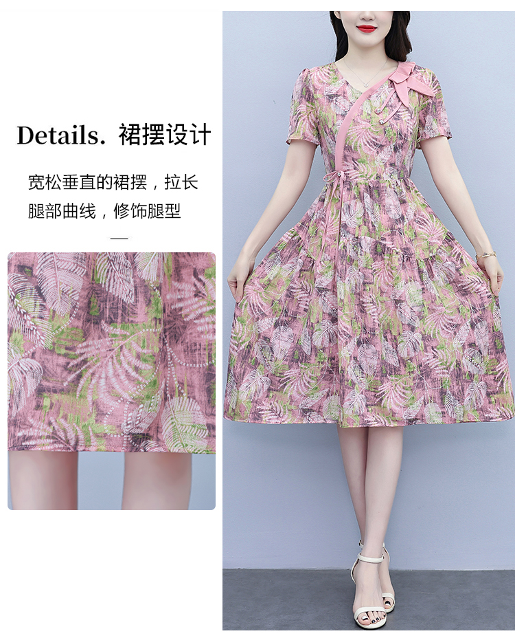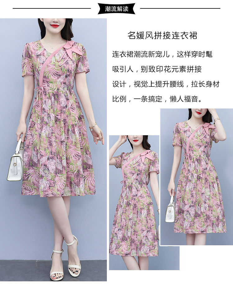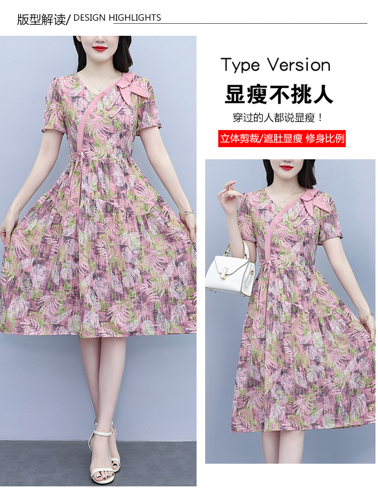 RY3980# 真丝桑蚕丝女夏季新款香云纱高端洋气质大码连衣裙妈妈印花裙子