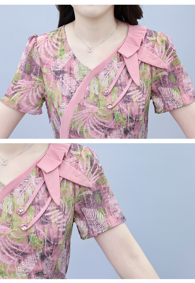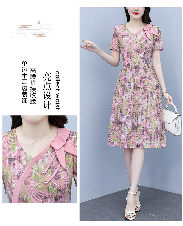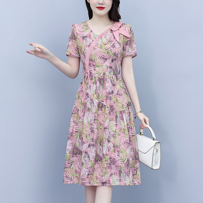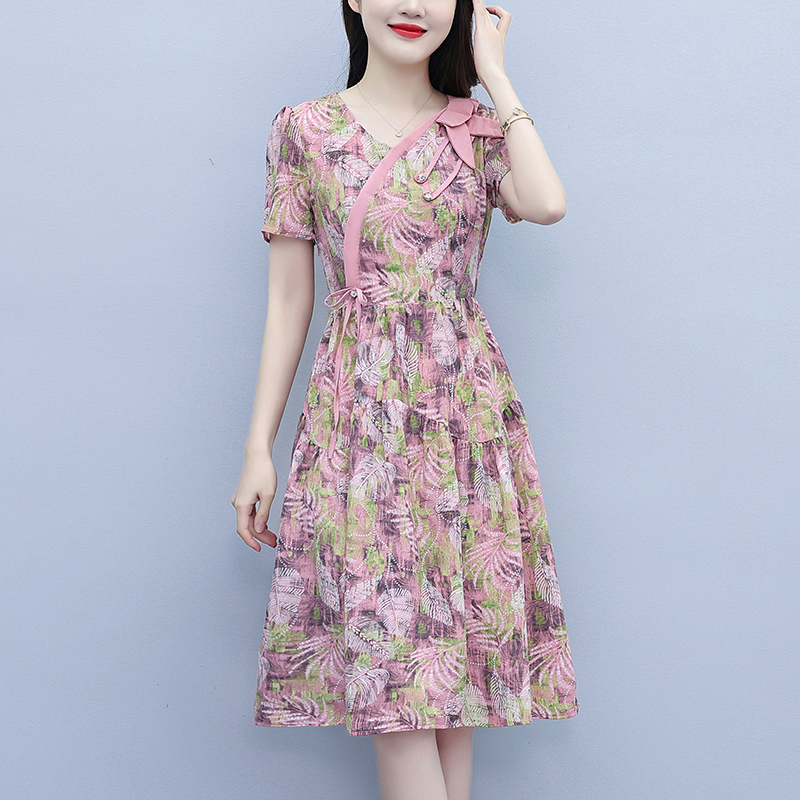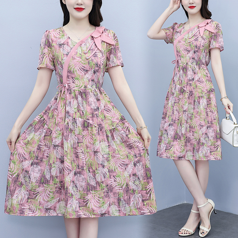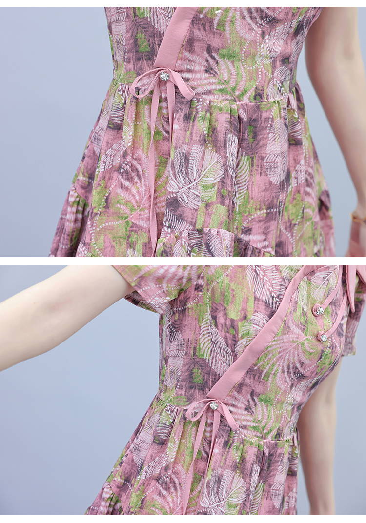 RY3980# 真丝桑蚕丝女夏季新款香云纱高端洋气质大码连衣裙妈妈印花裙子