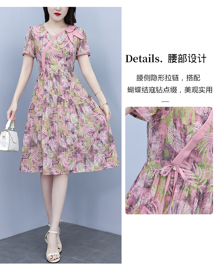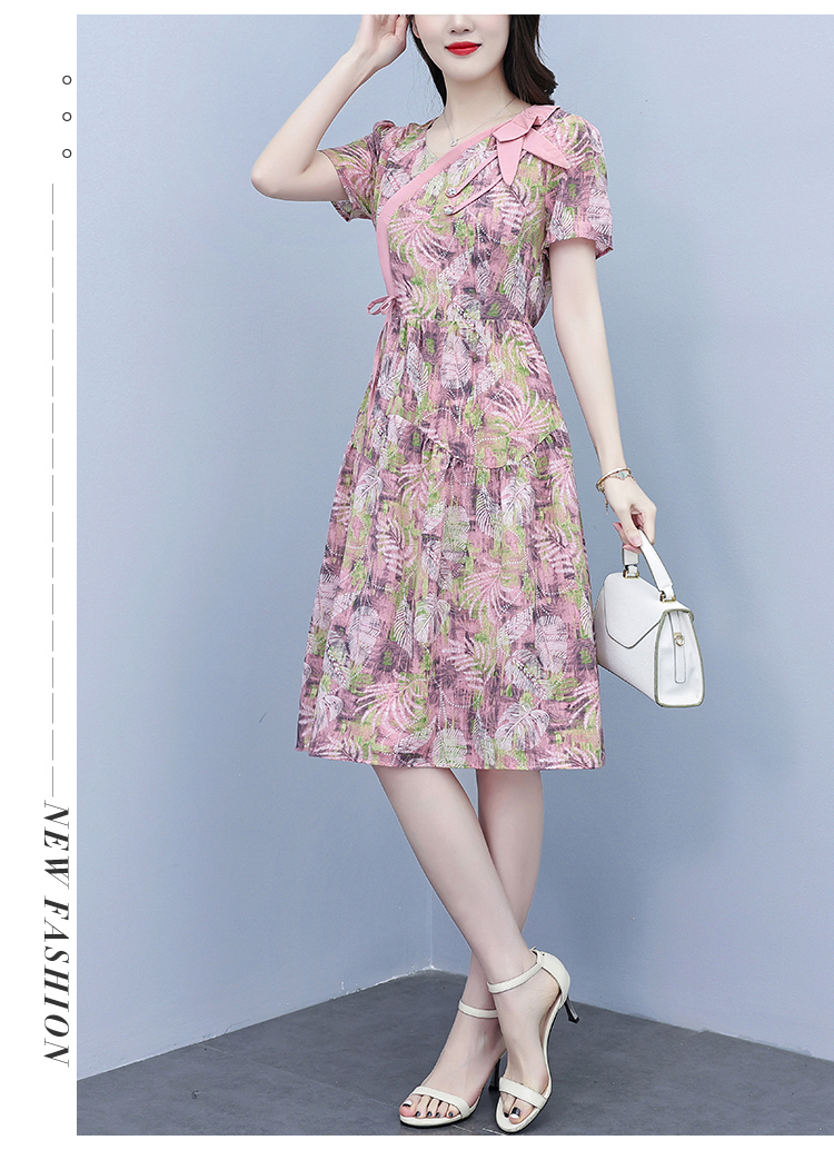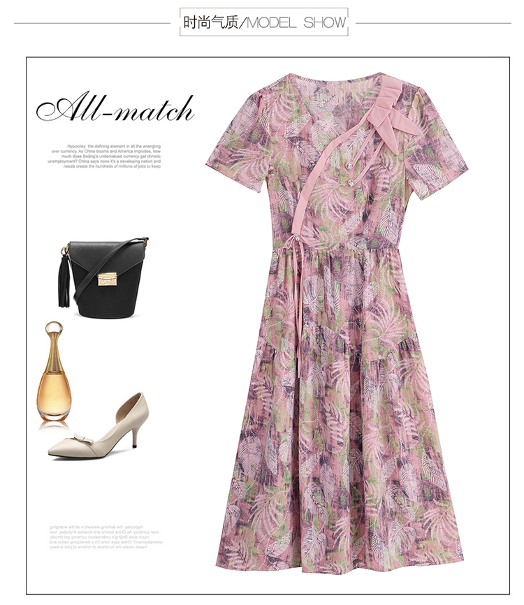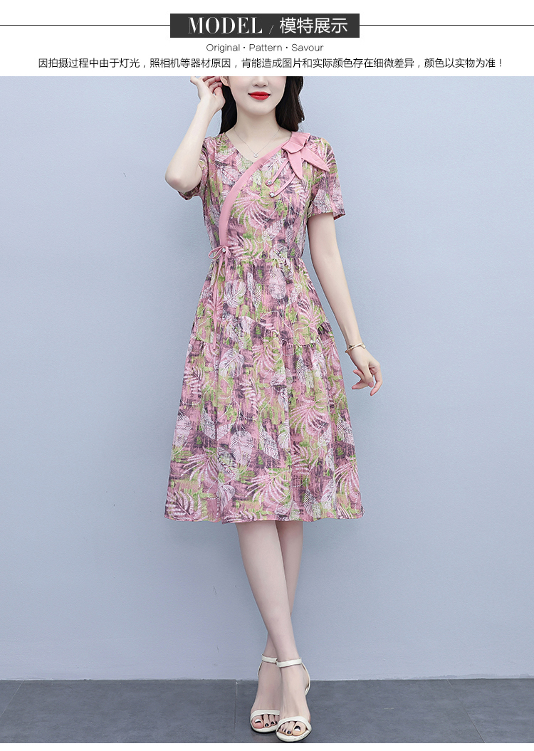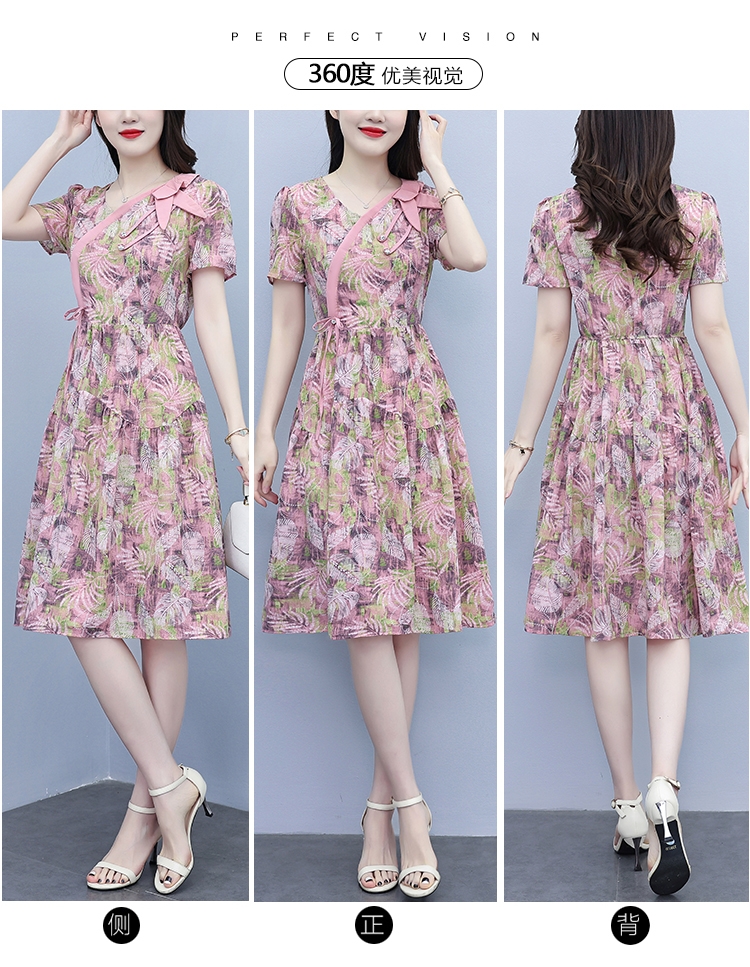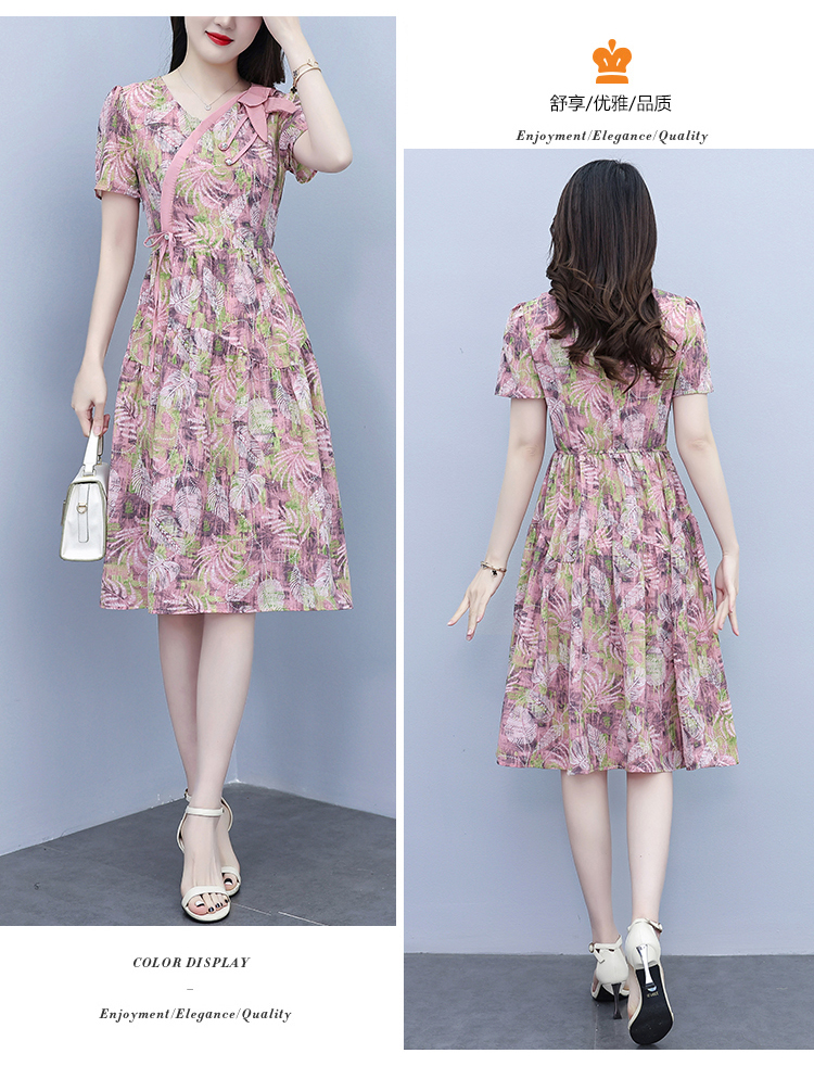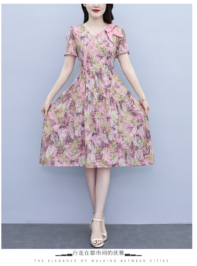 RY3963# 提花雪纺连衣裙女夏长款2026夏季新款大码胖mm显瘦印花优...