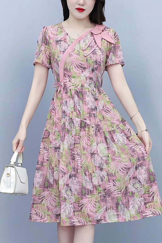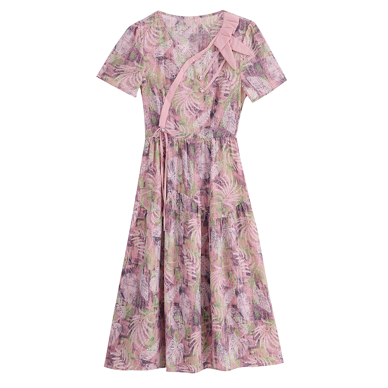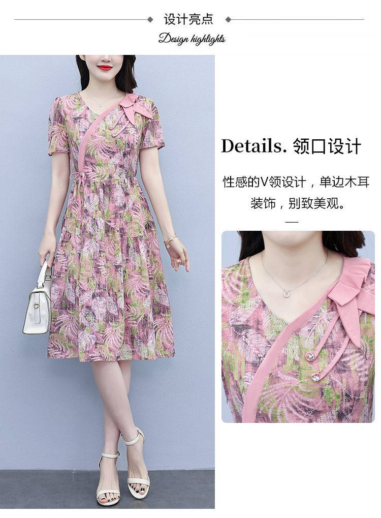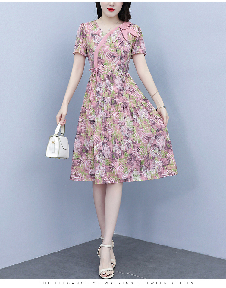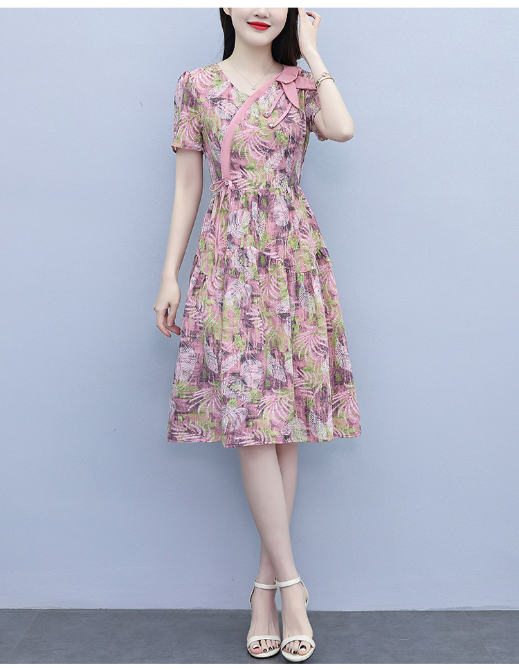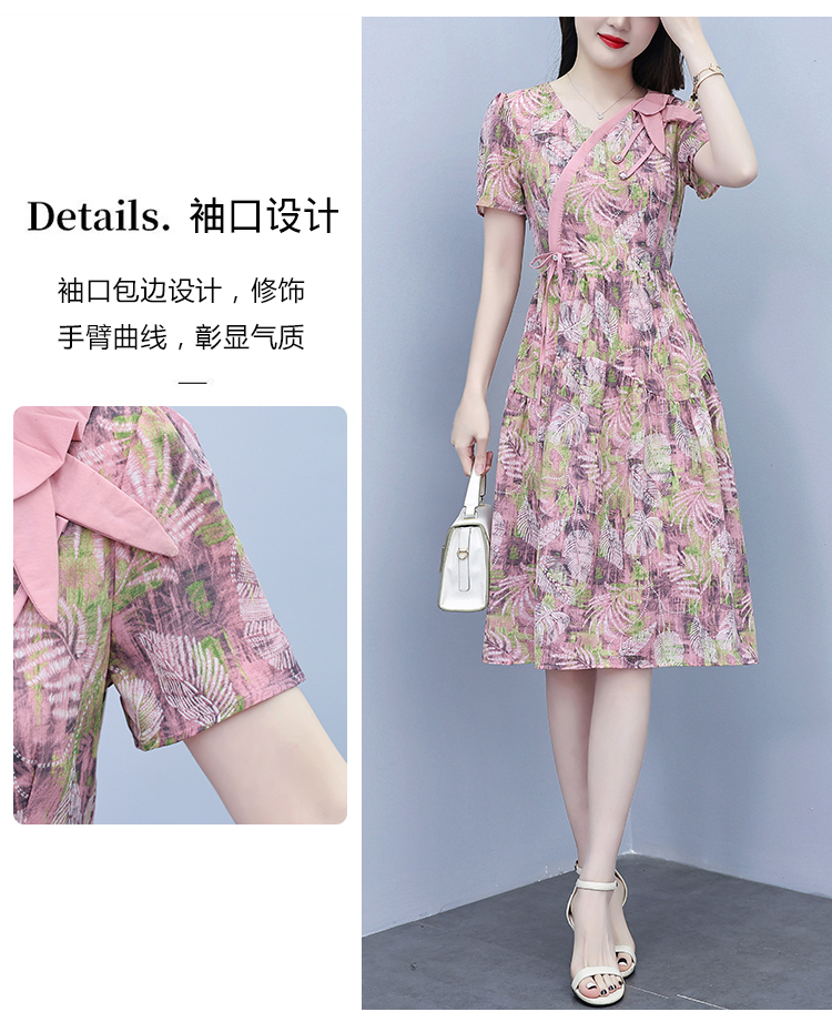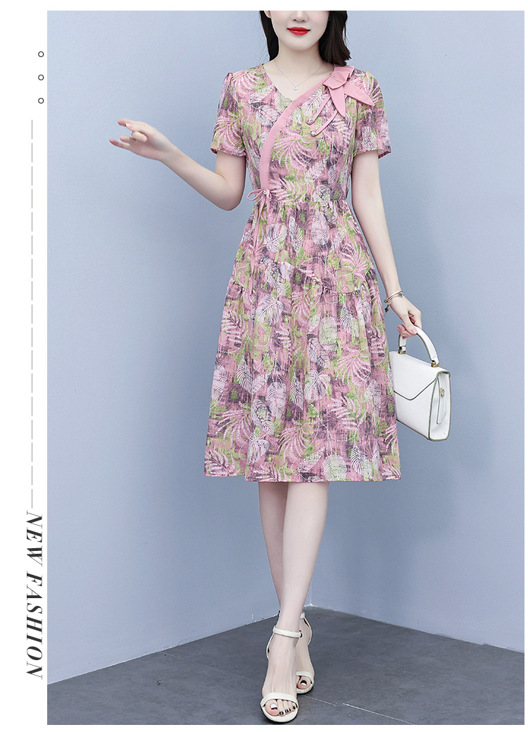 RY3963# 提花雪纺连衣裙女夏长款2026夏季新款大码胖mm显瘦印花优...