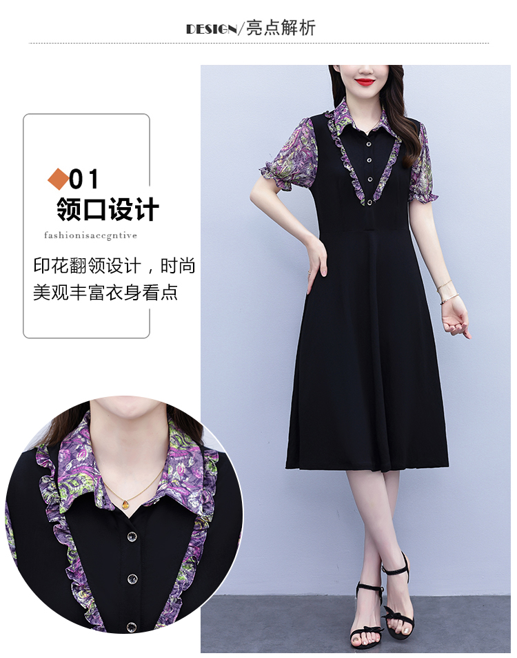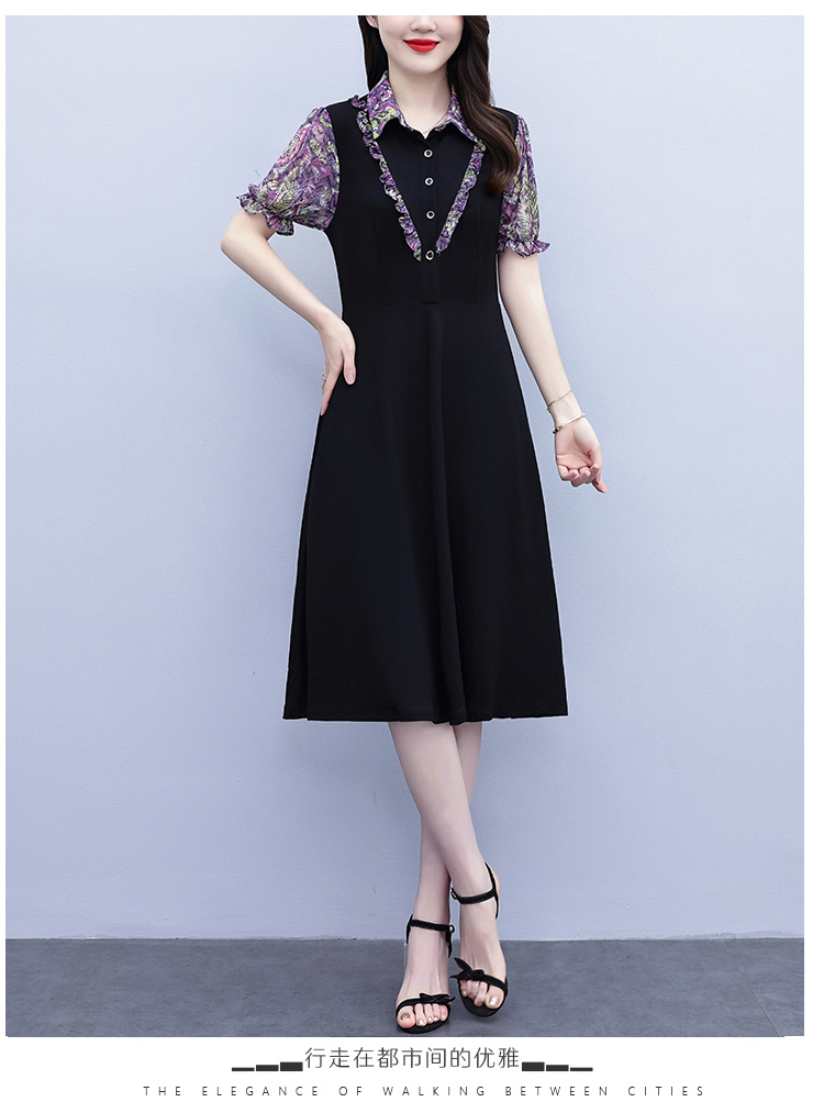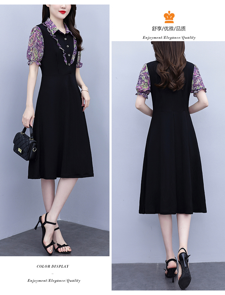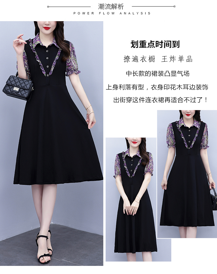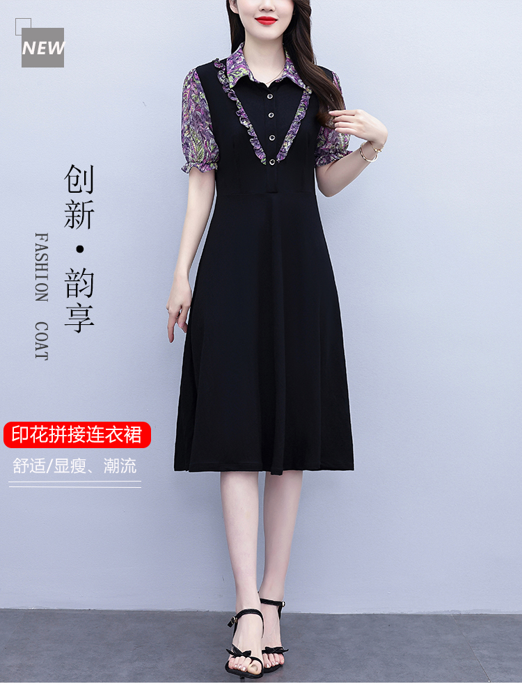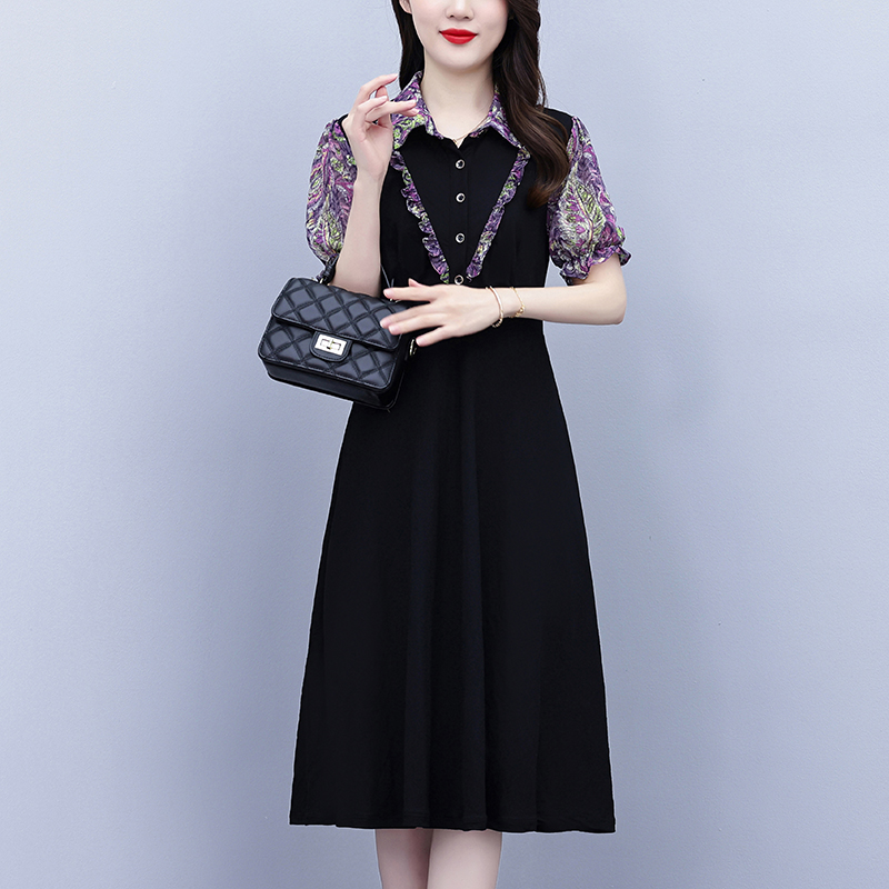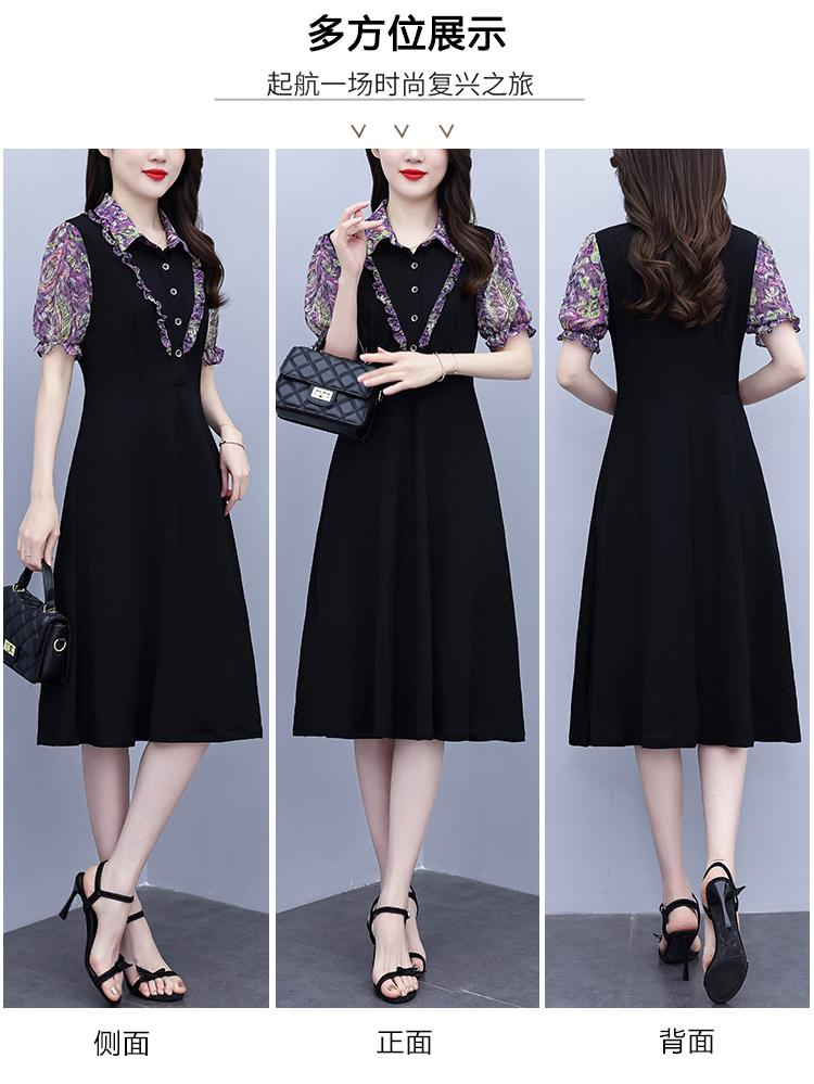RY3987# 2026大码女装夏季新款韩版中年妈妈假两件超修身简约拼接连...