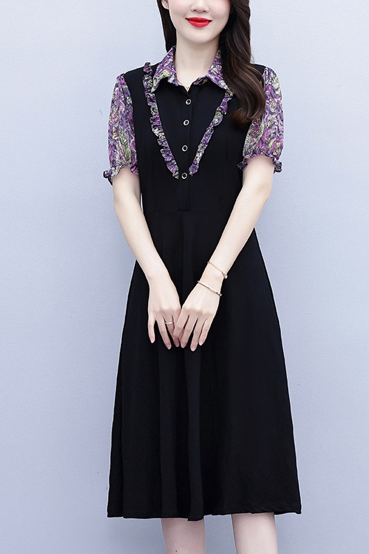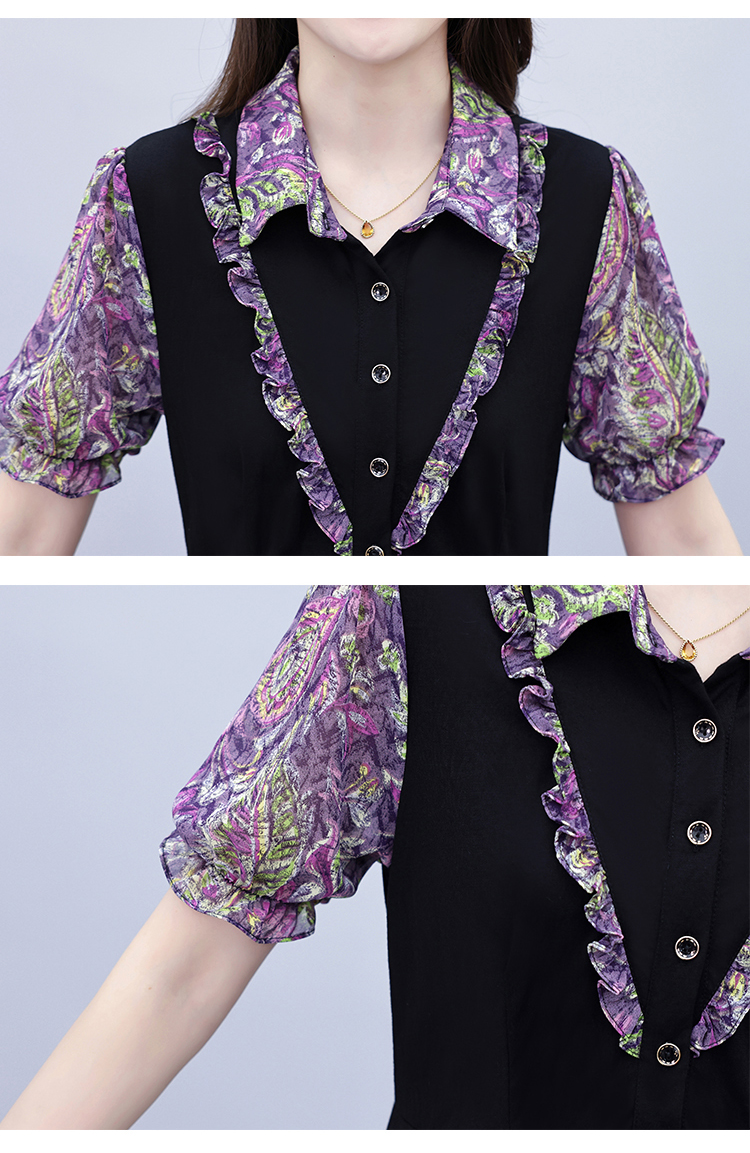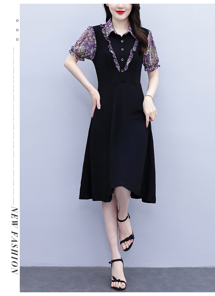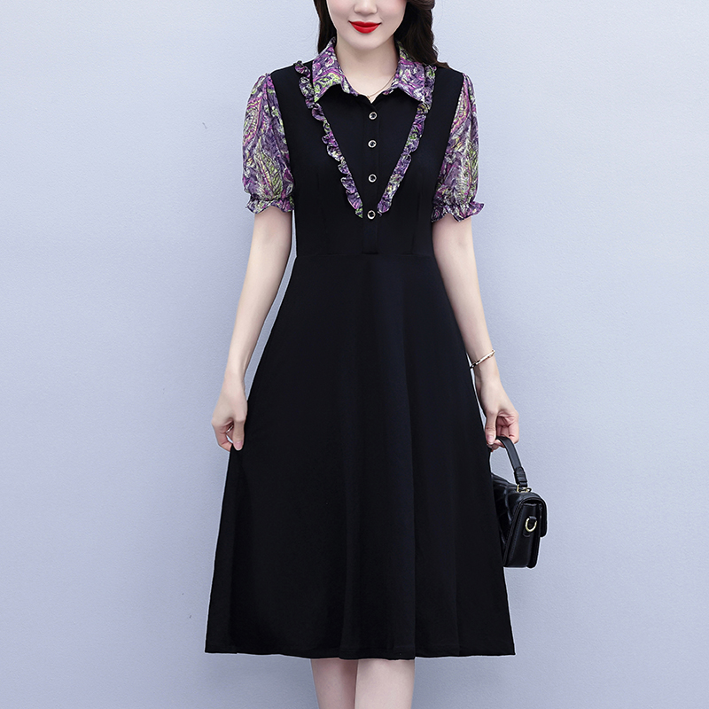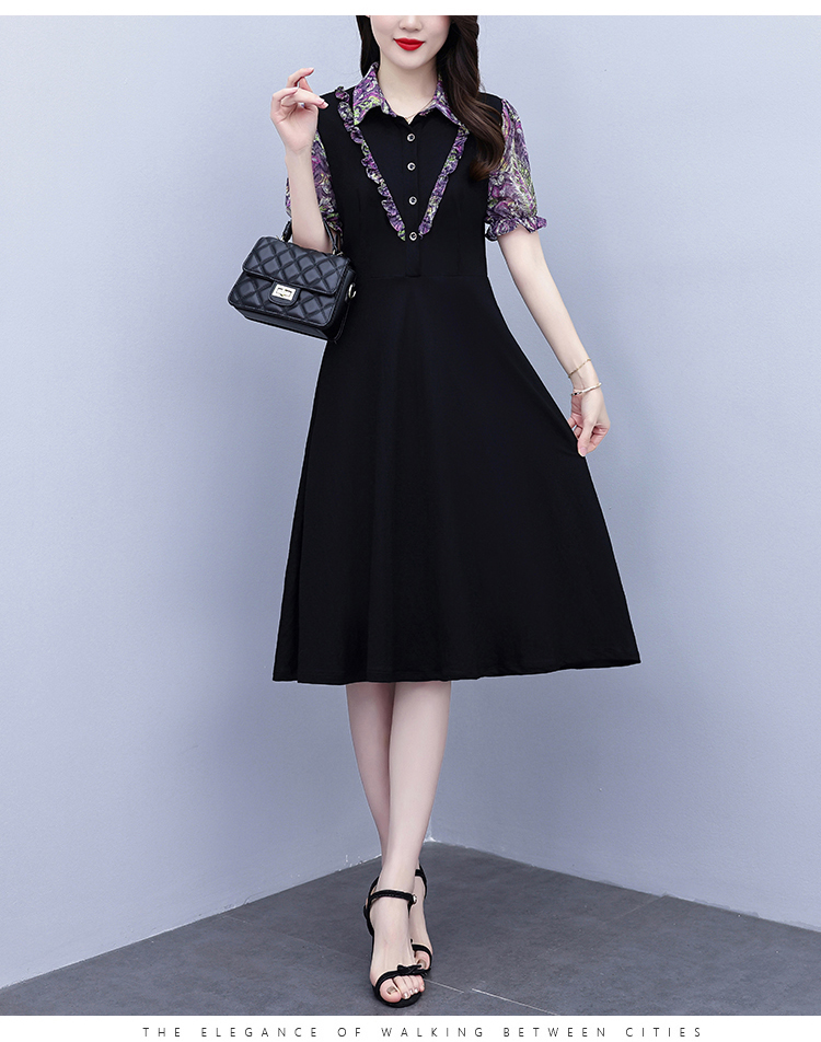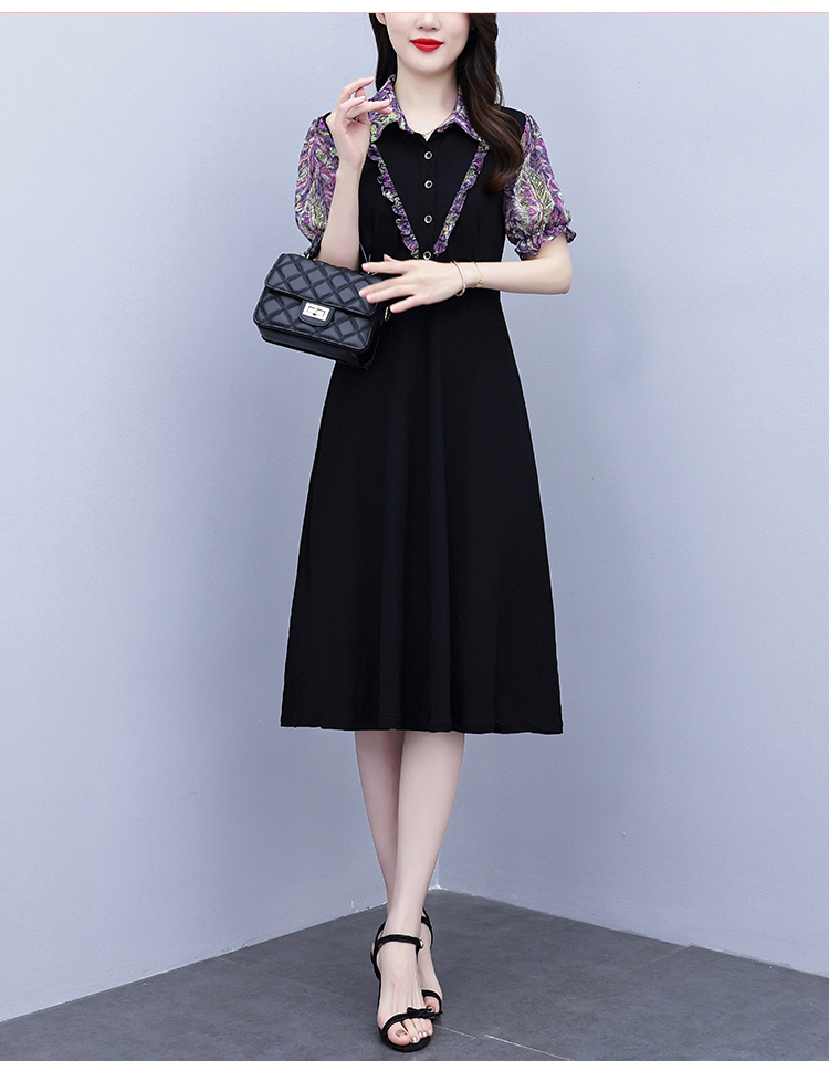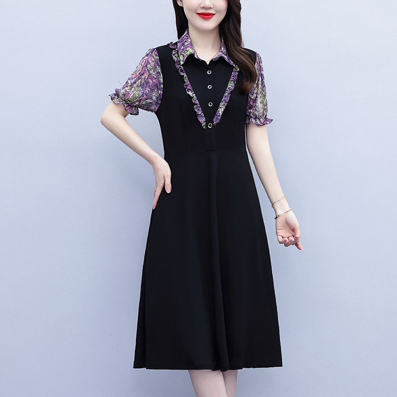 RY3987# 2026大码女装夏季新款韩版中年妈妈假两件超修身简约拼接连...