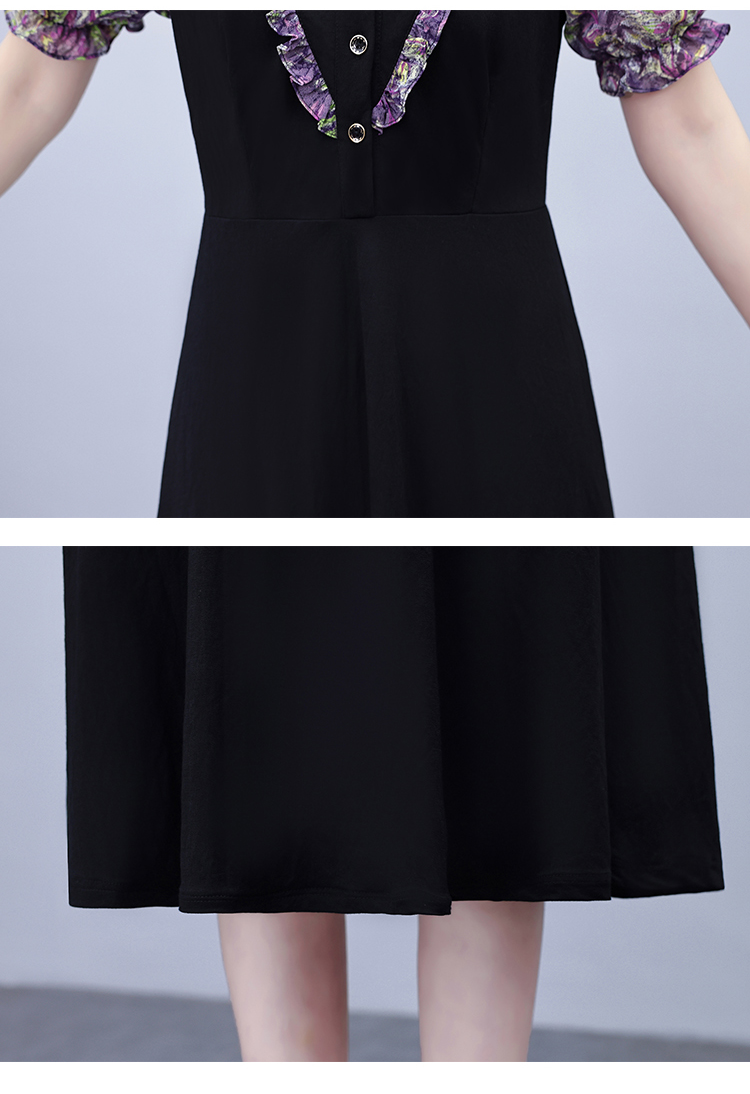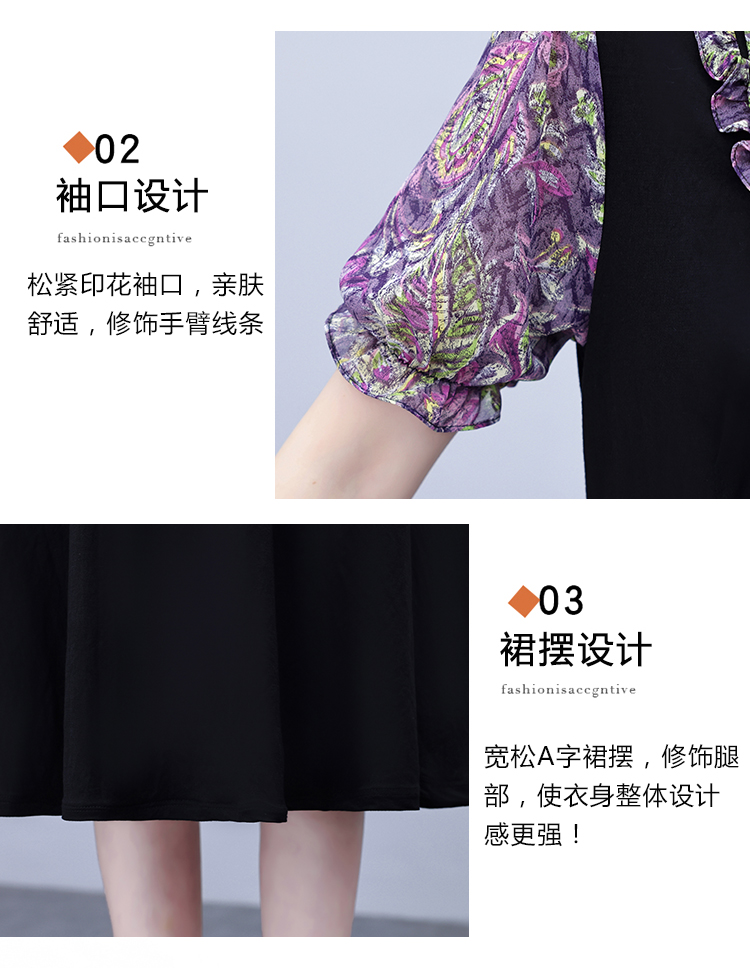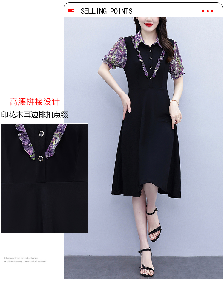 RY3983# 2026夏季大码女装胖mm雪纺碎花短袖修身显瘦中年妈妈遮肚子连衣裙