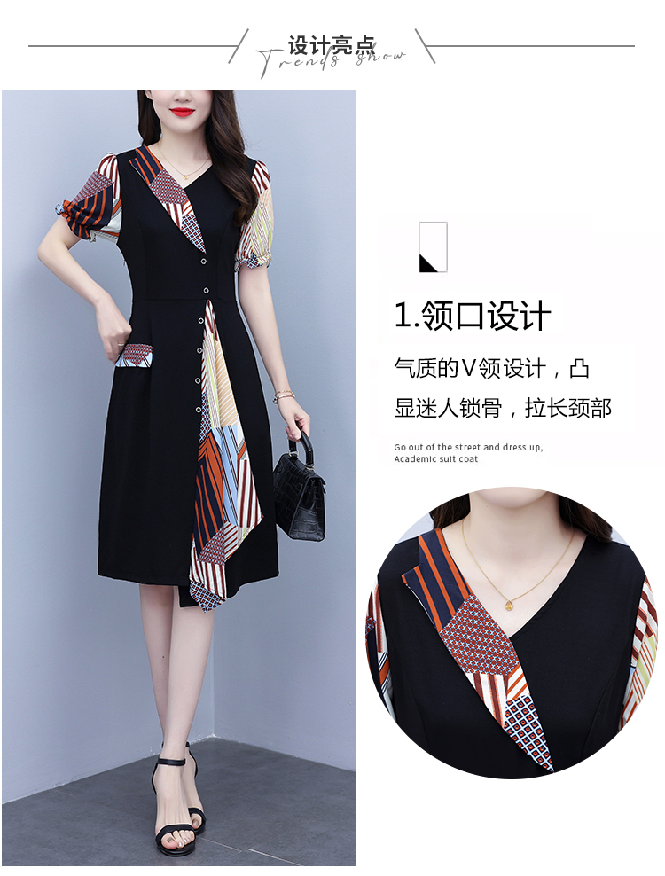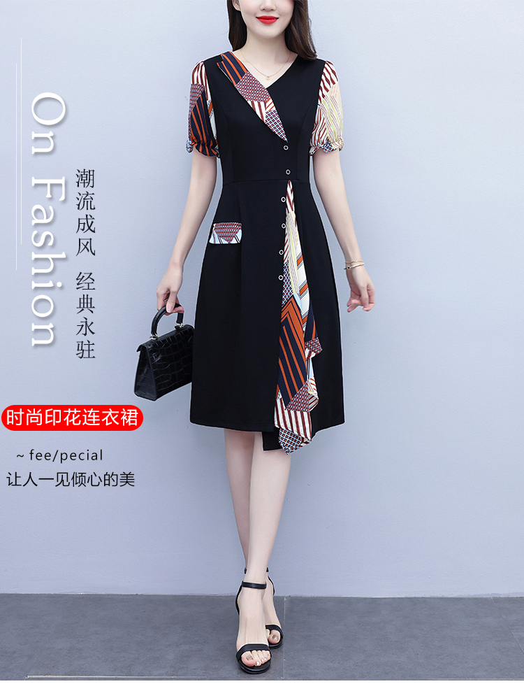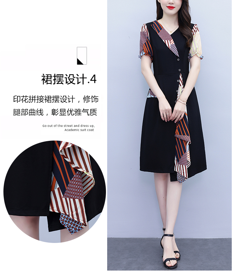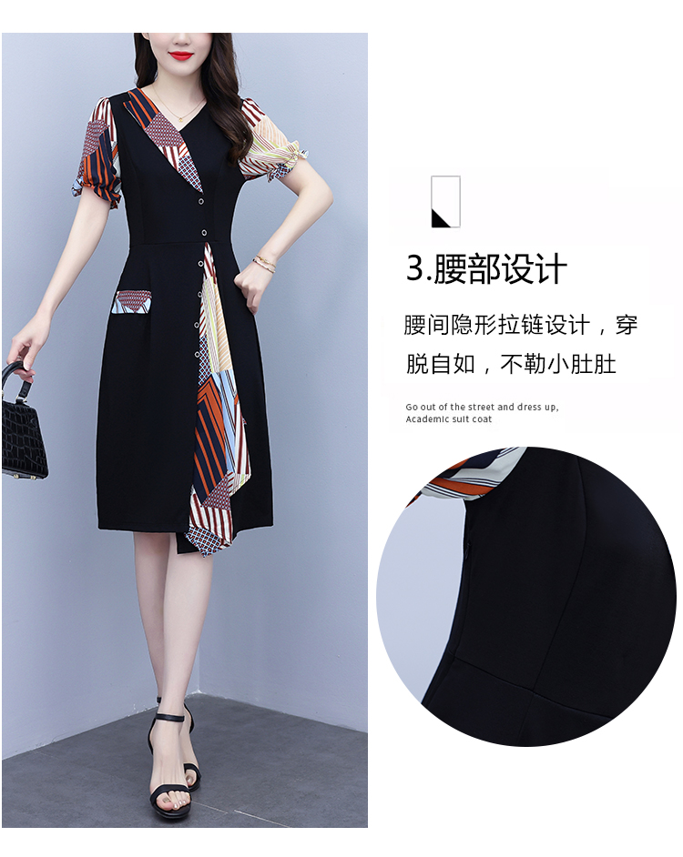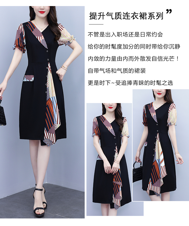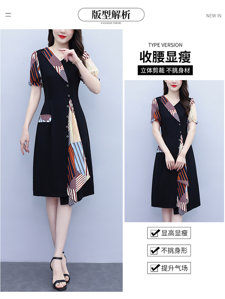 RY3985# 大码女装2026夏季新款中年妈妈气质优雅时尚显瘦碎花拼接连衣裙