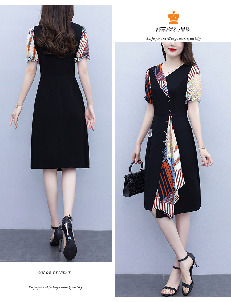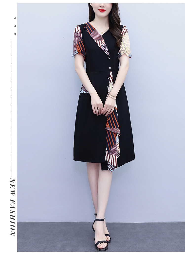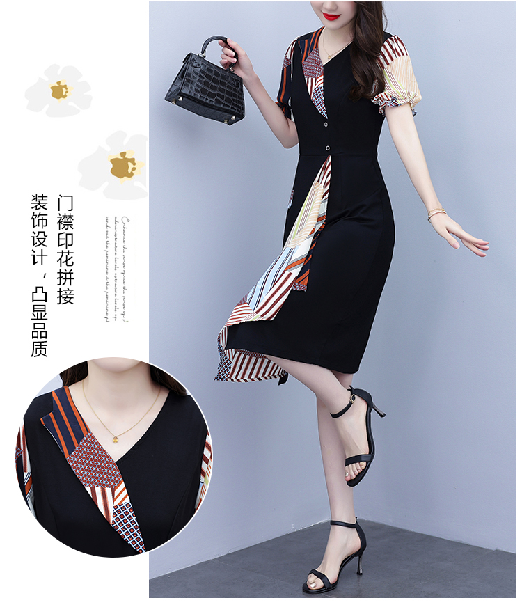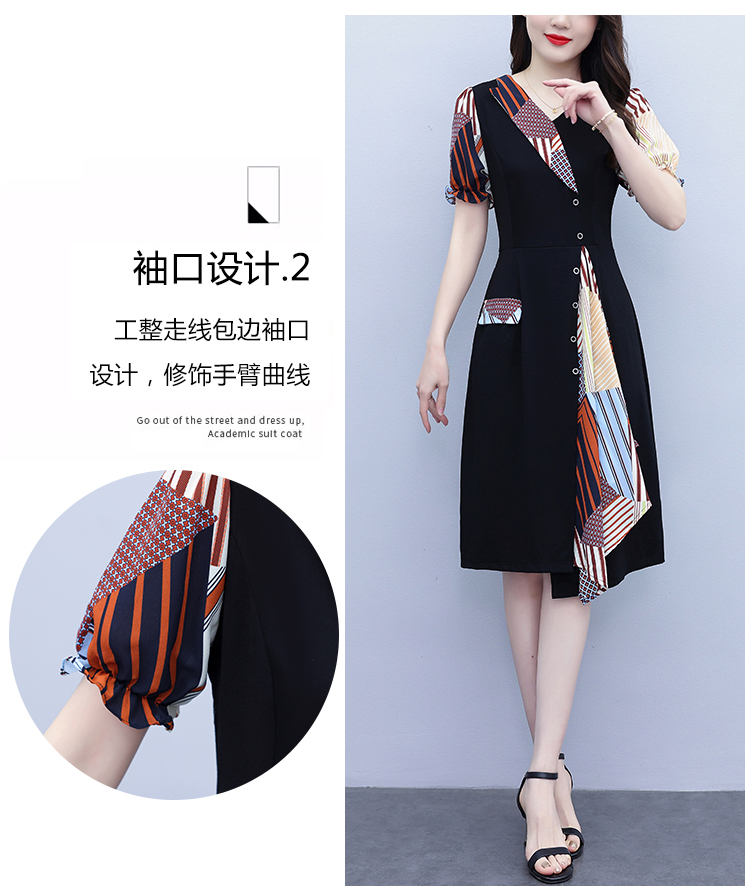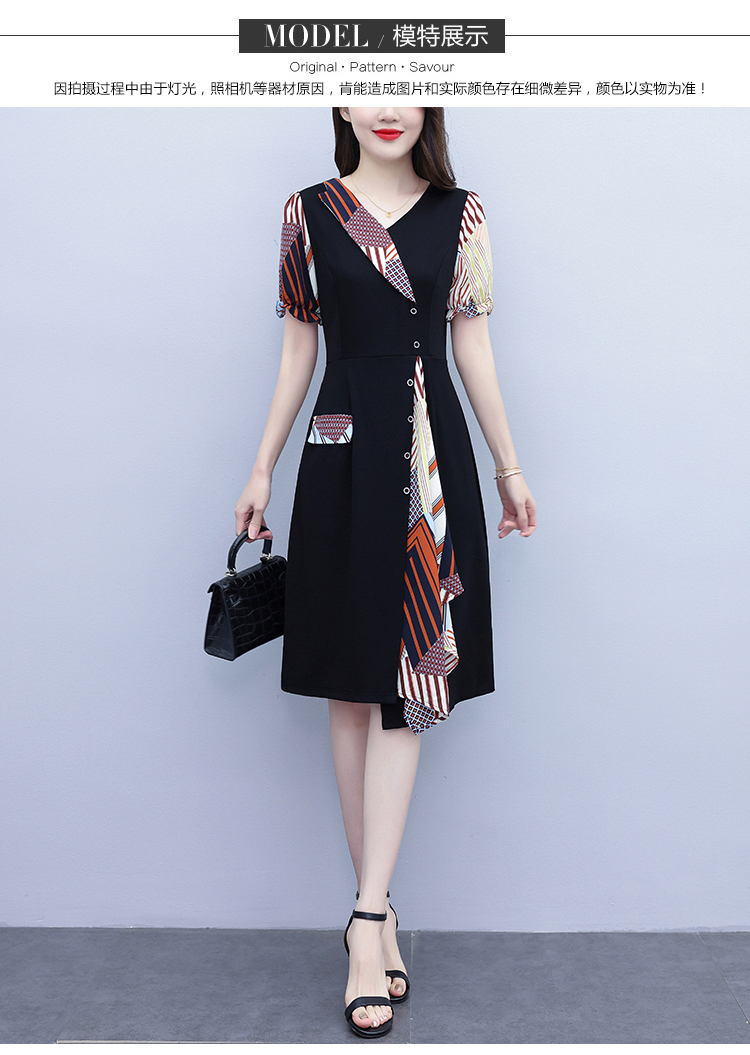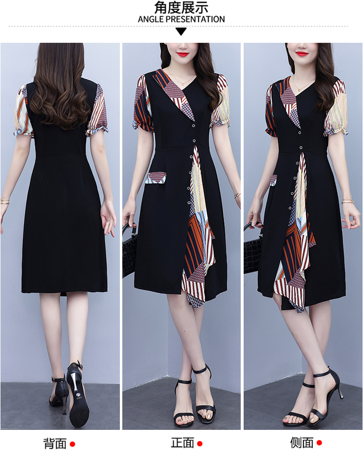 RY3985# 大码女装2026夏季新款中年妈妈气质优雅时尚显瘦碎花拼接连衣裙