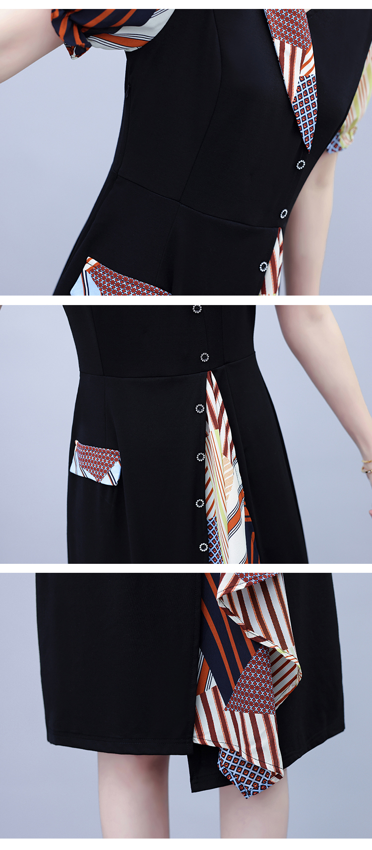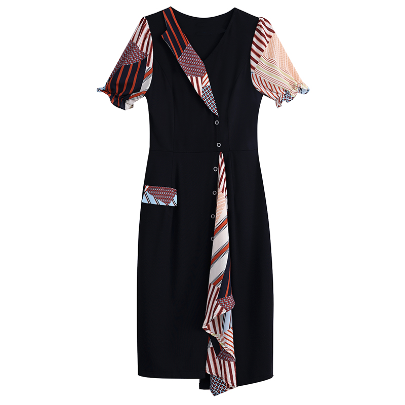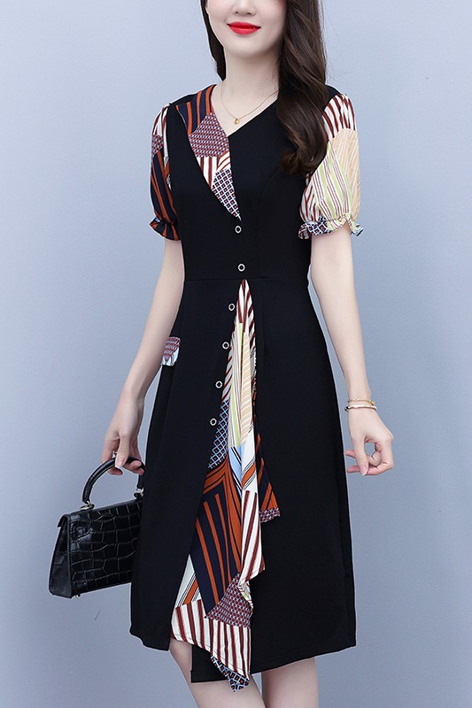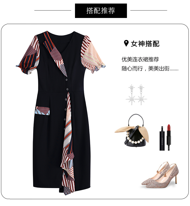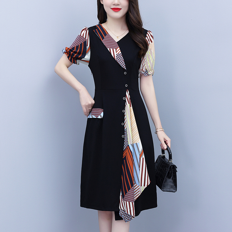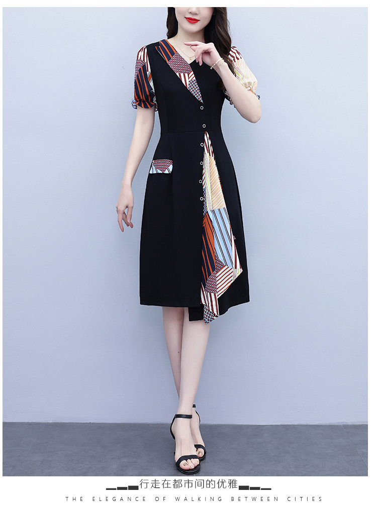 RY3985# 大码女装2026夏季新款中年妈妈气质优雅时尚显瘦碎花拼接连衣裙