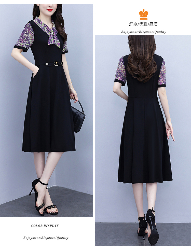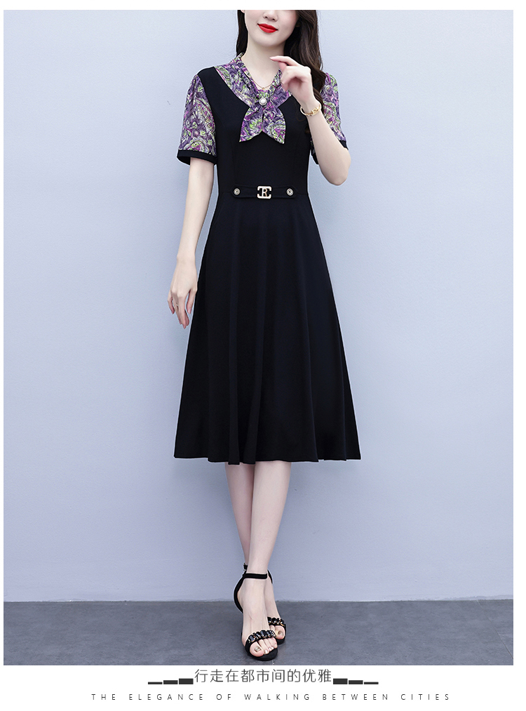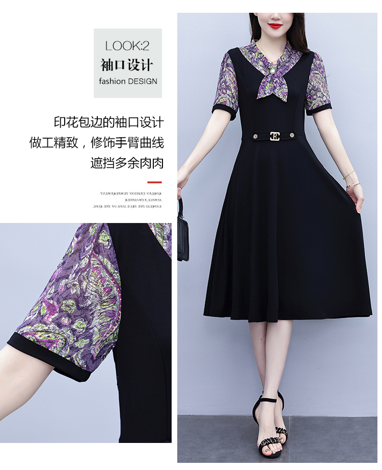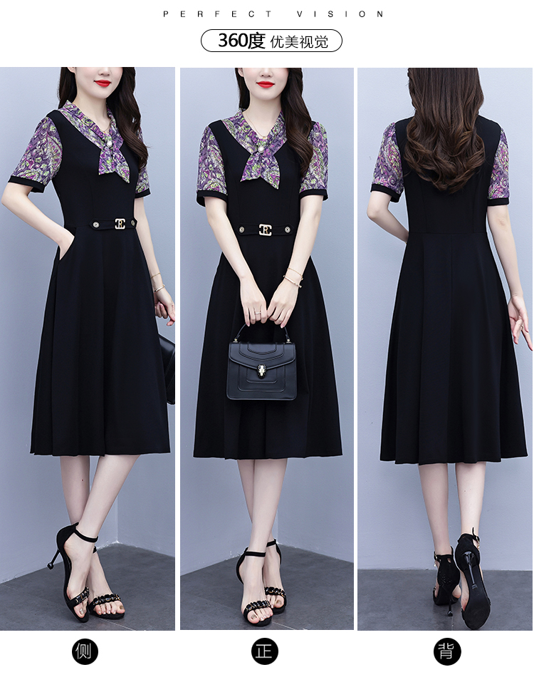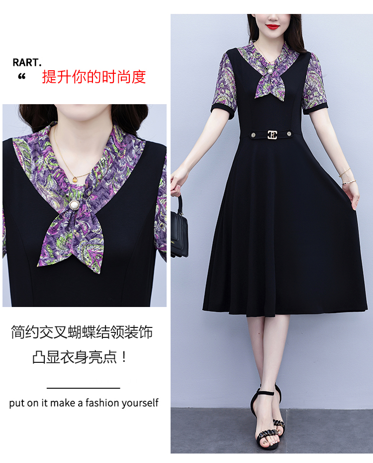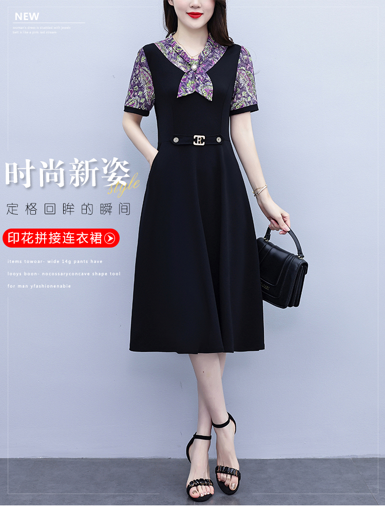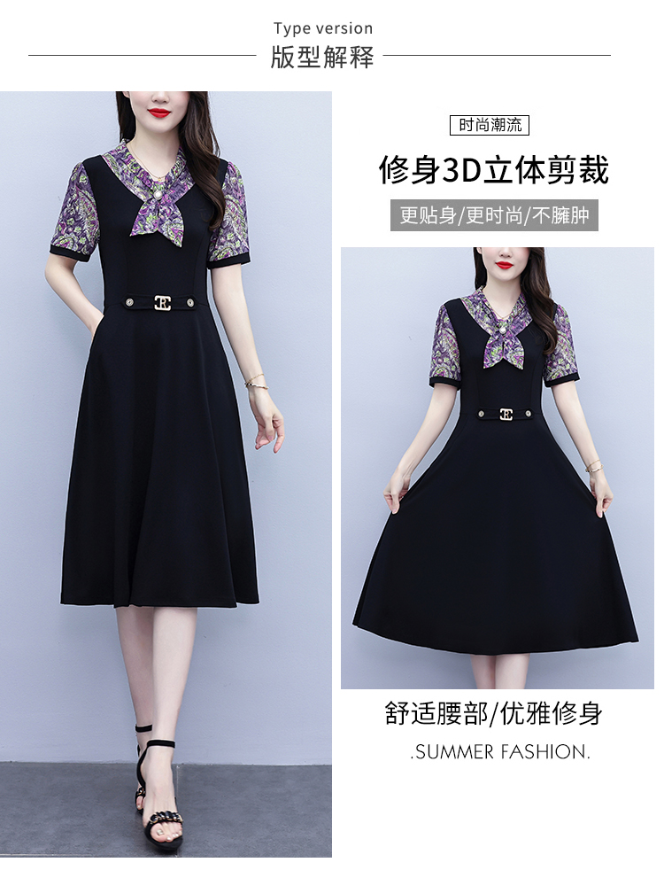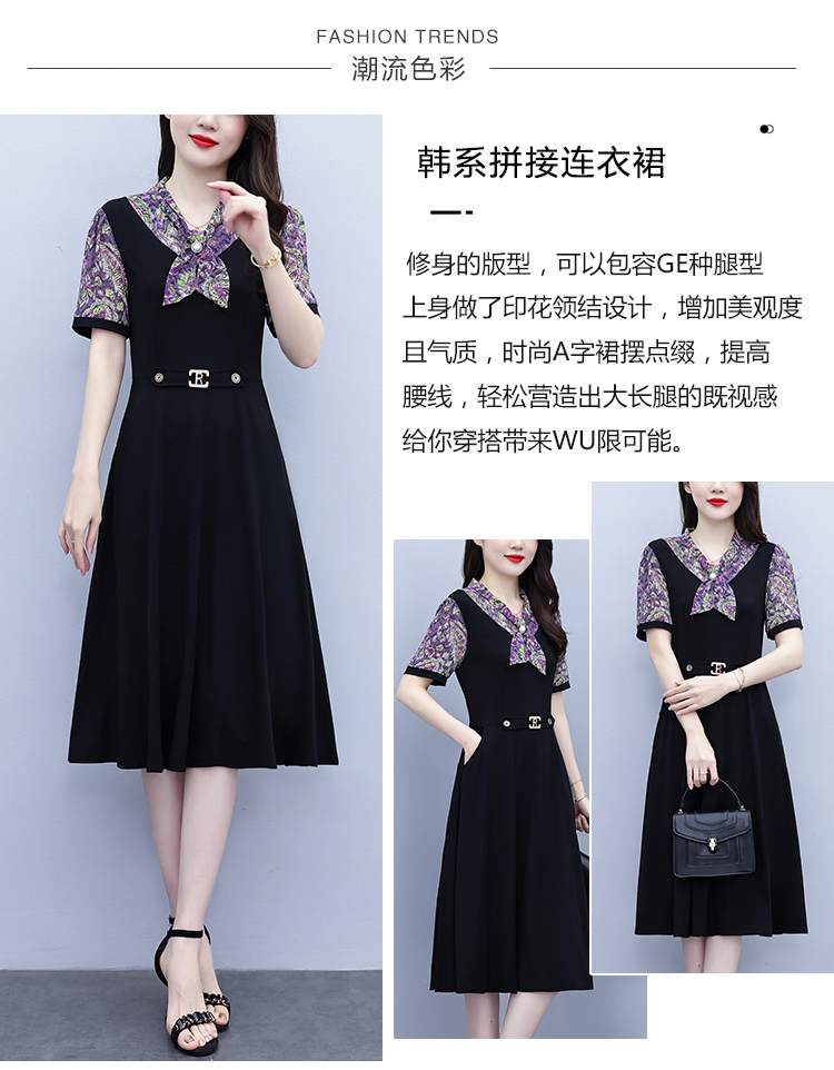 RY3986# 2026大码女装夏季新款韩版中年妈妈假两件超修身简约拼接连衣裙