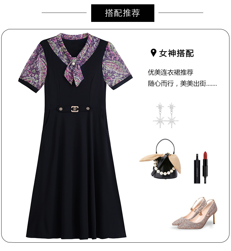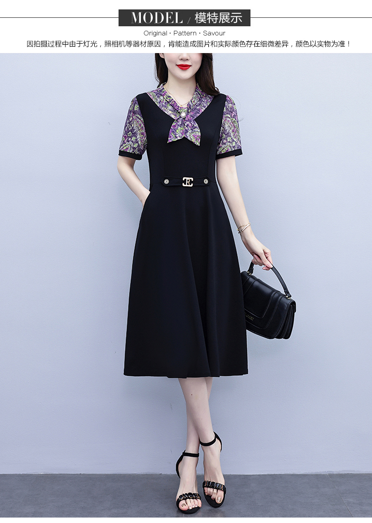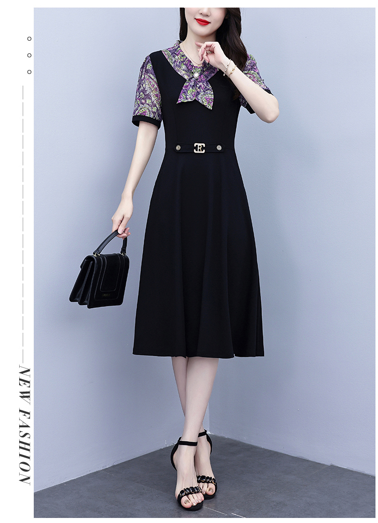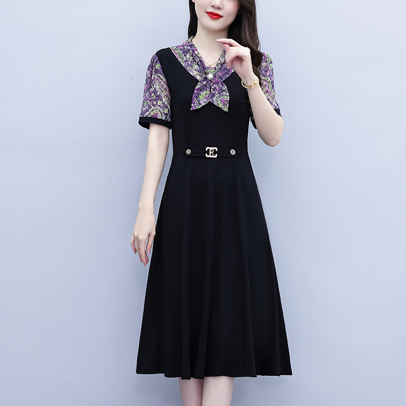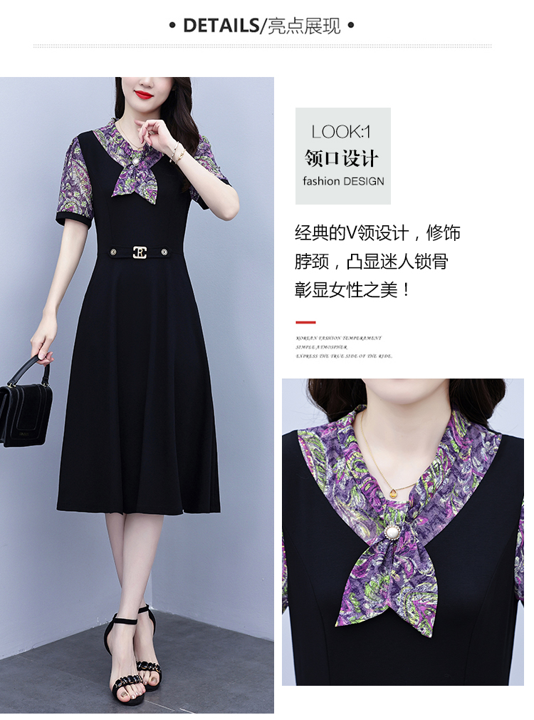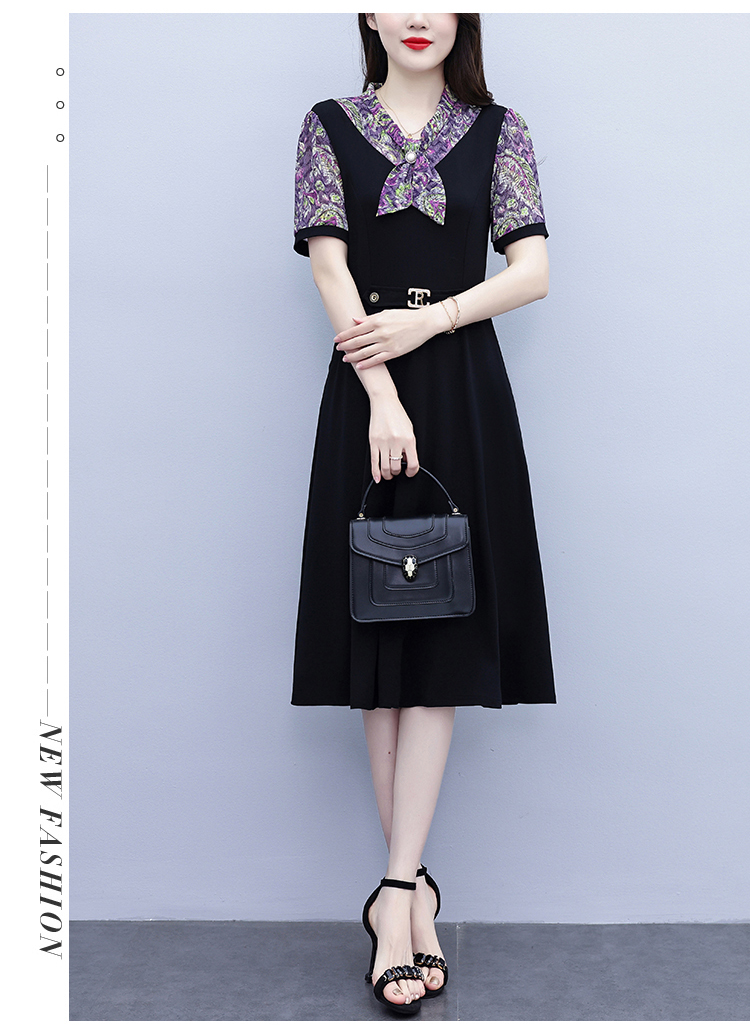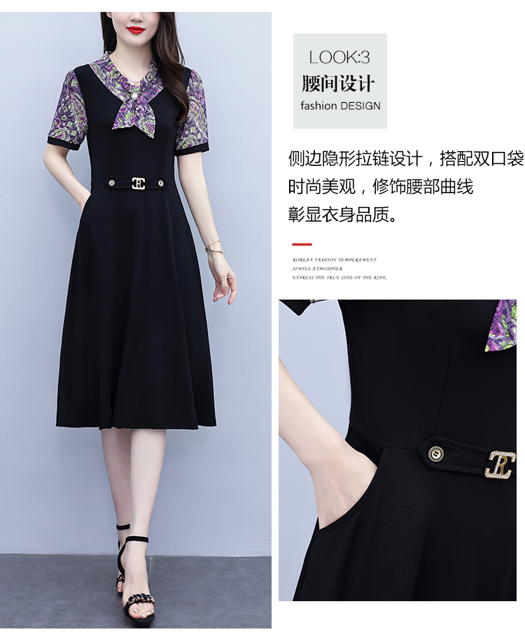 RY3986# 2026大码女装夏季新款韩版中年妈妈假两件超修身简约拼接连衣裙