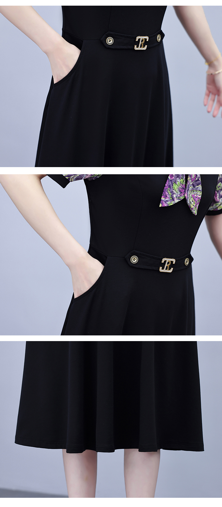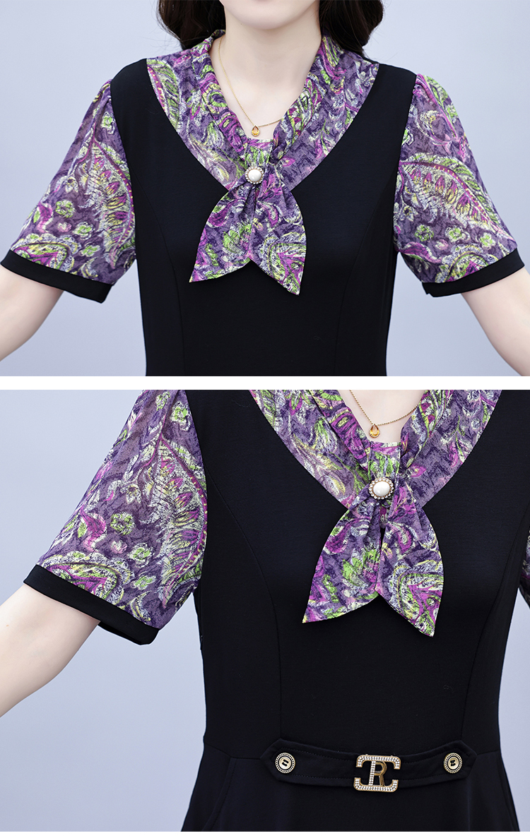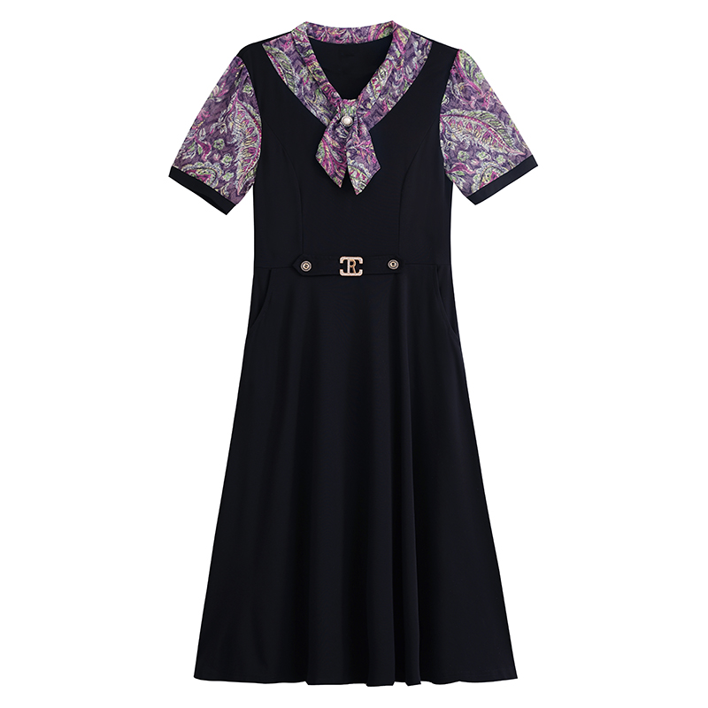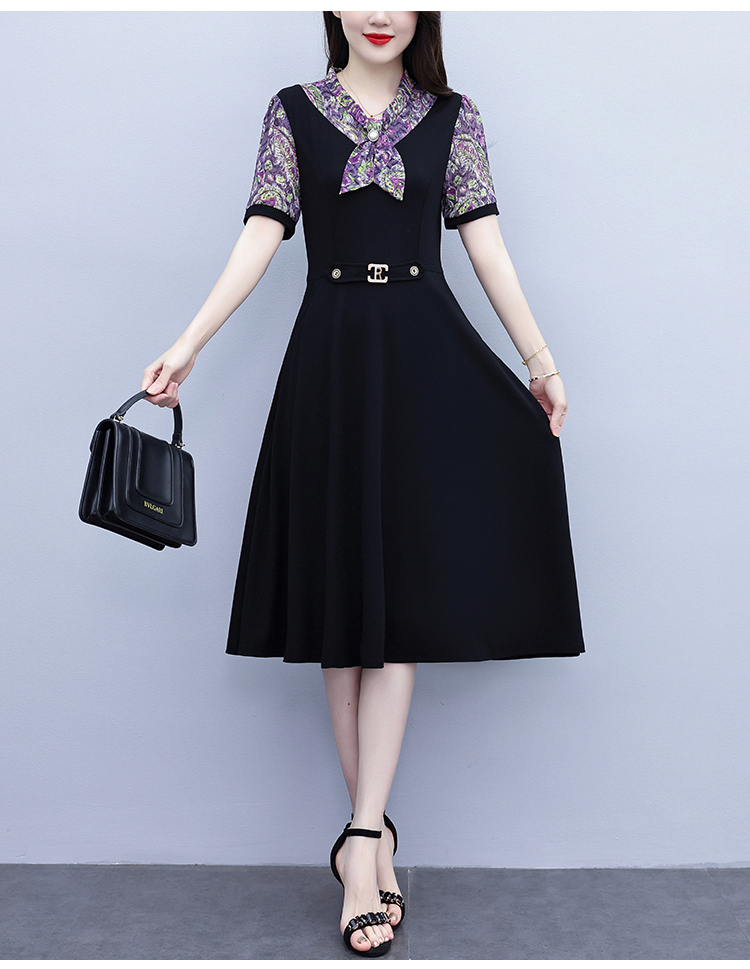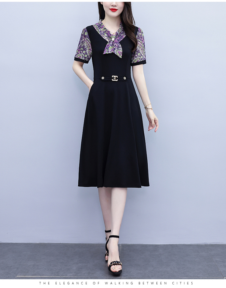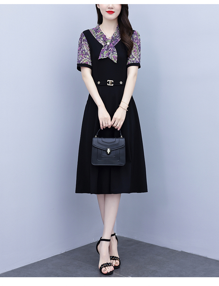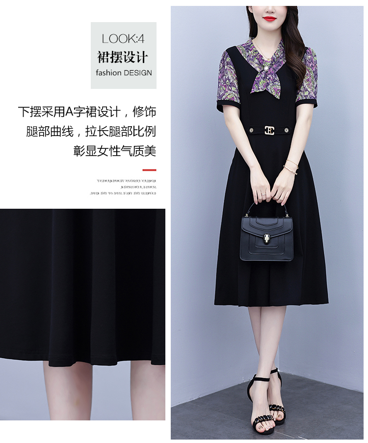 RY3986# 2026大码女装夏季新款韩版中年妈妈假两件超修身简约拼接连衣裙