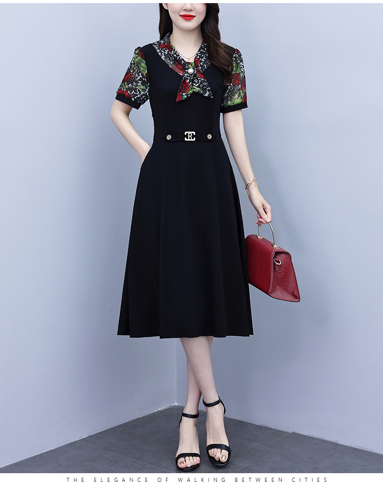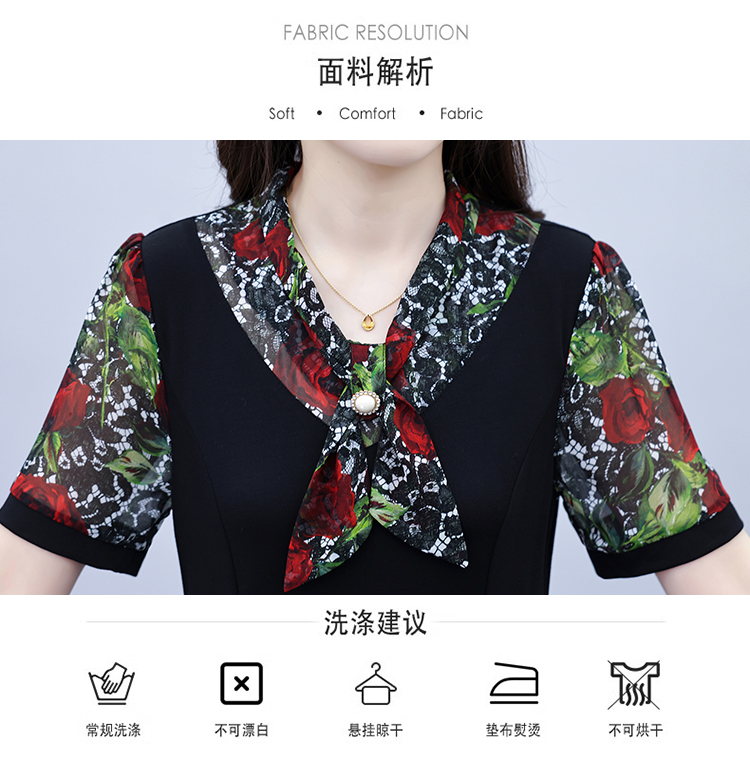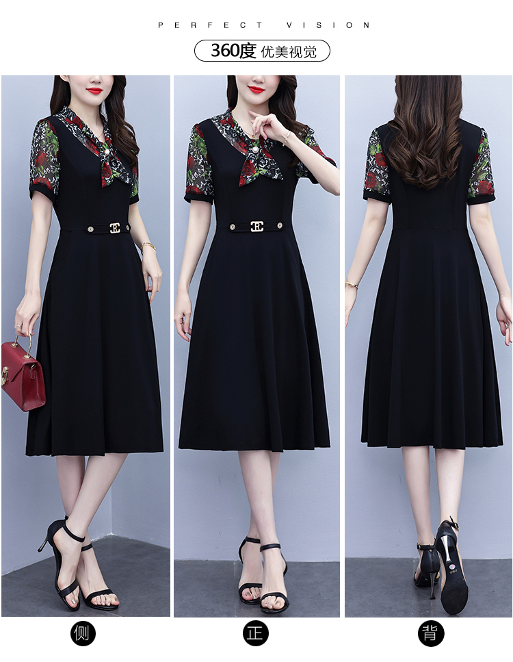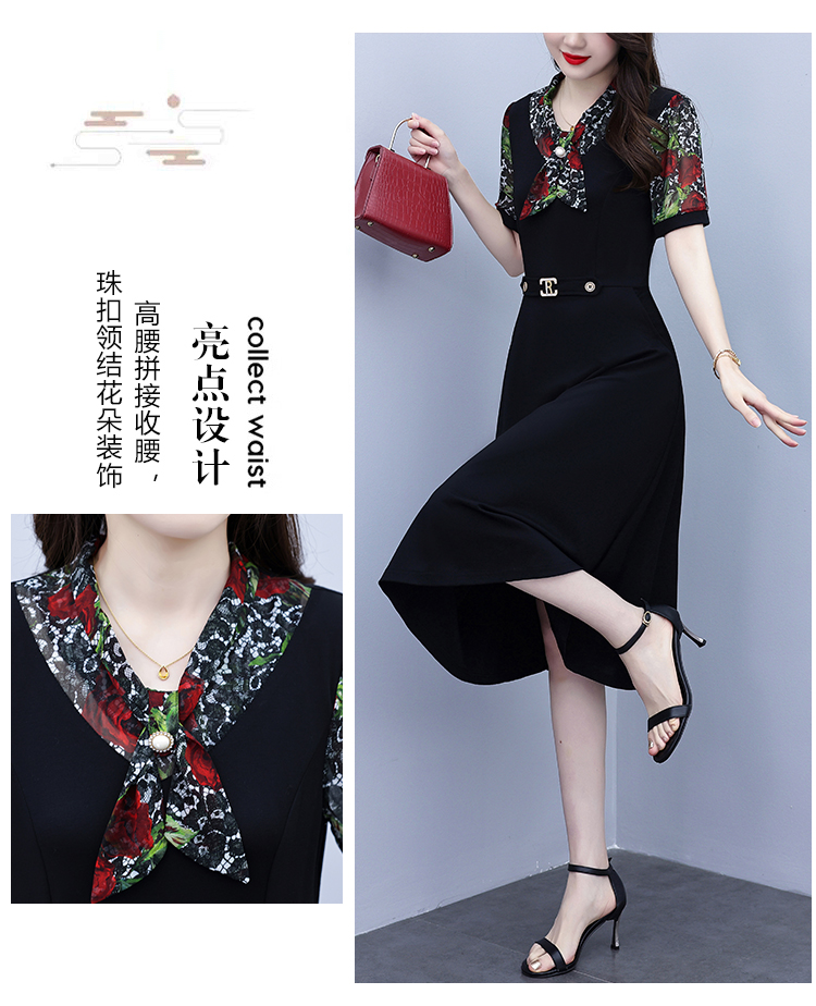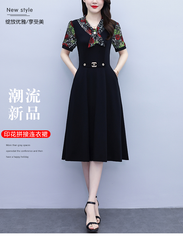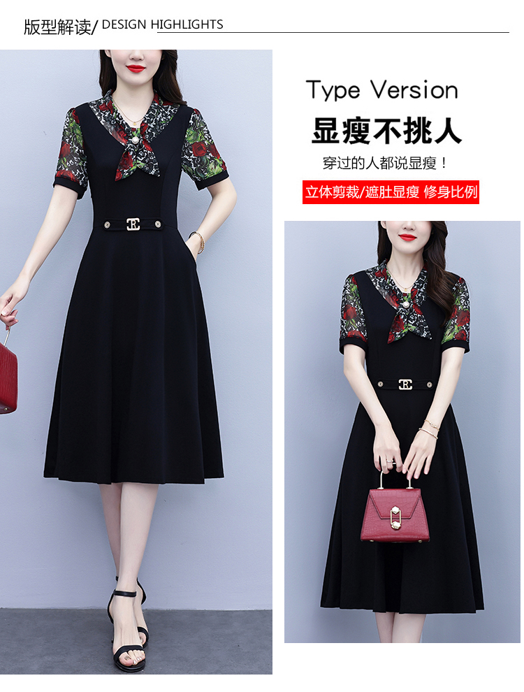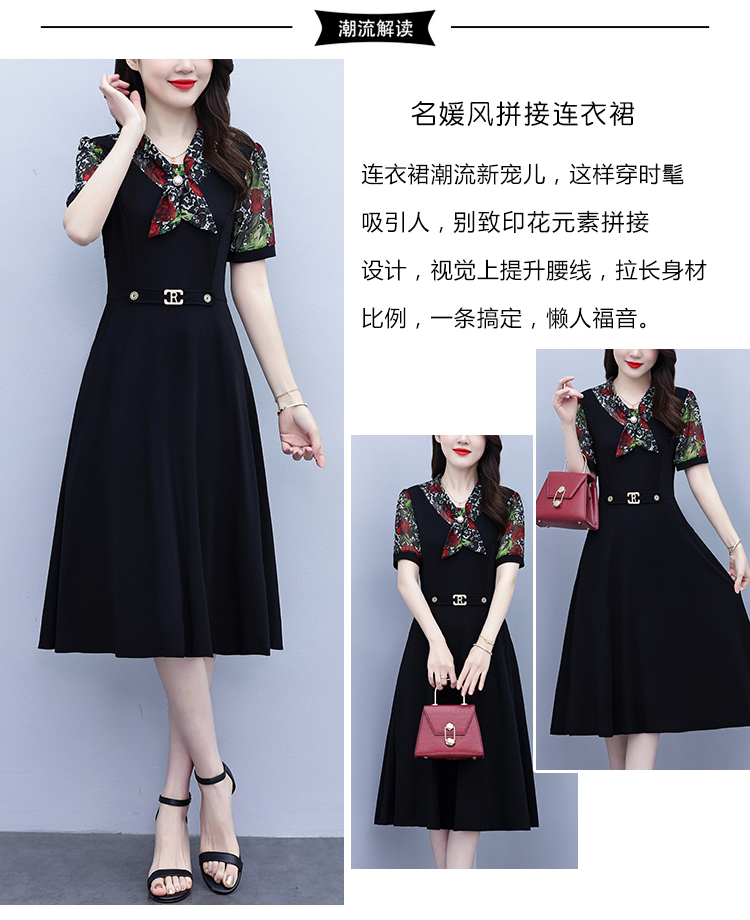 RY3987# 2026大码女装夏季新款韩版中年妈妈假两件超修身简约拼接连衣裙