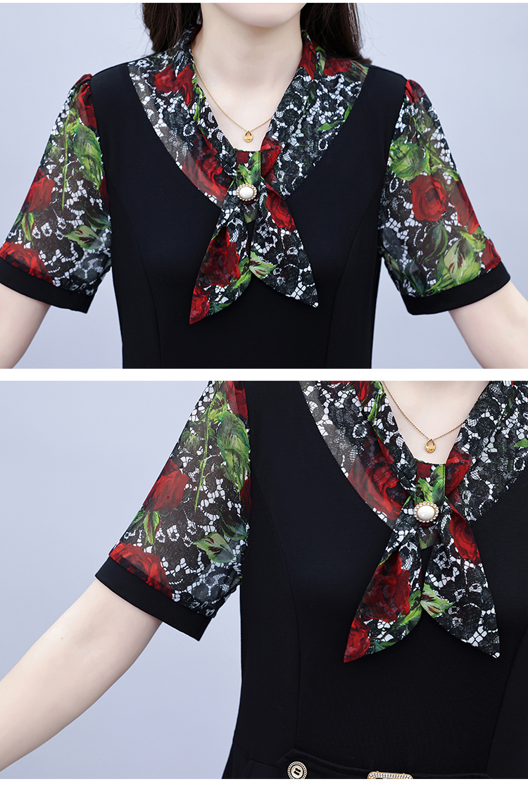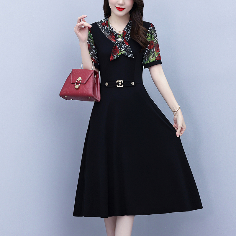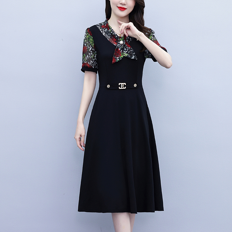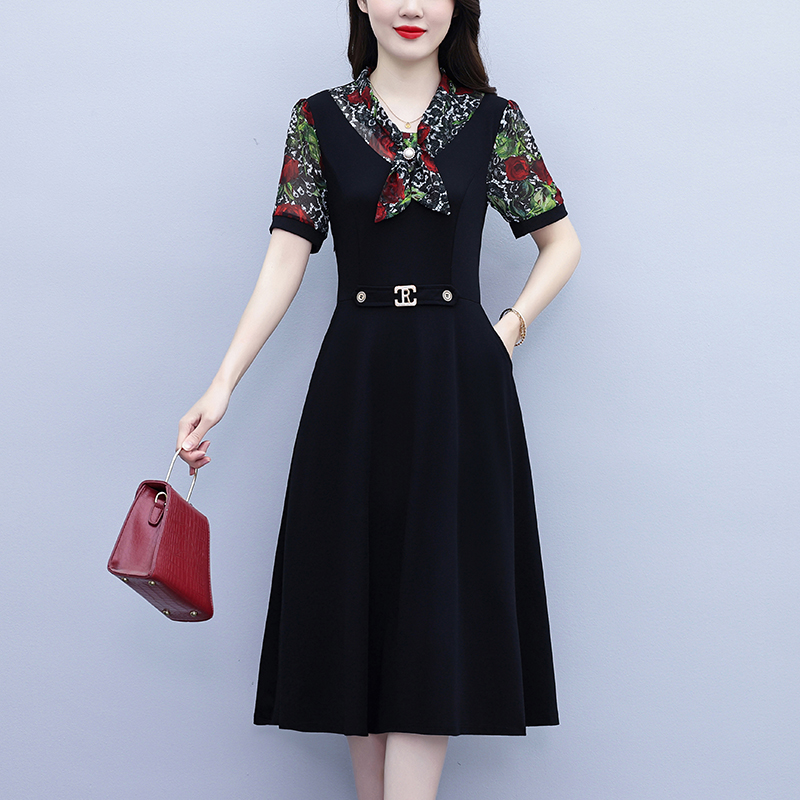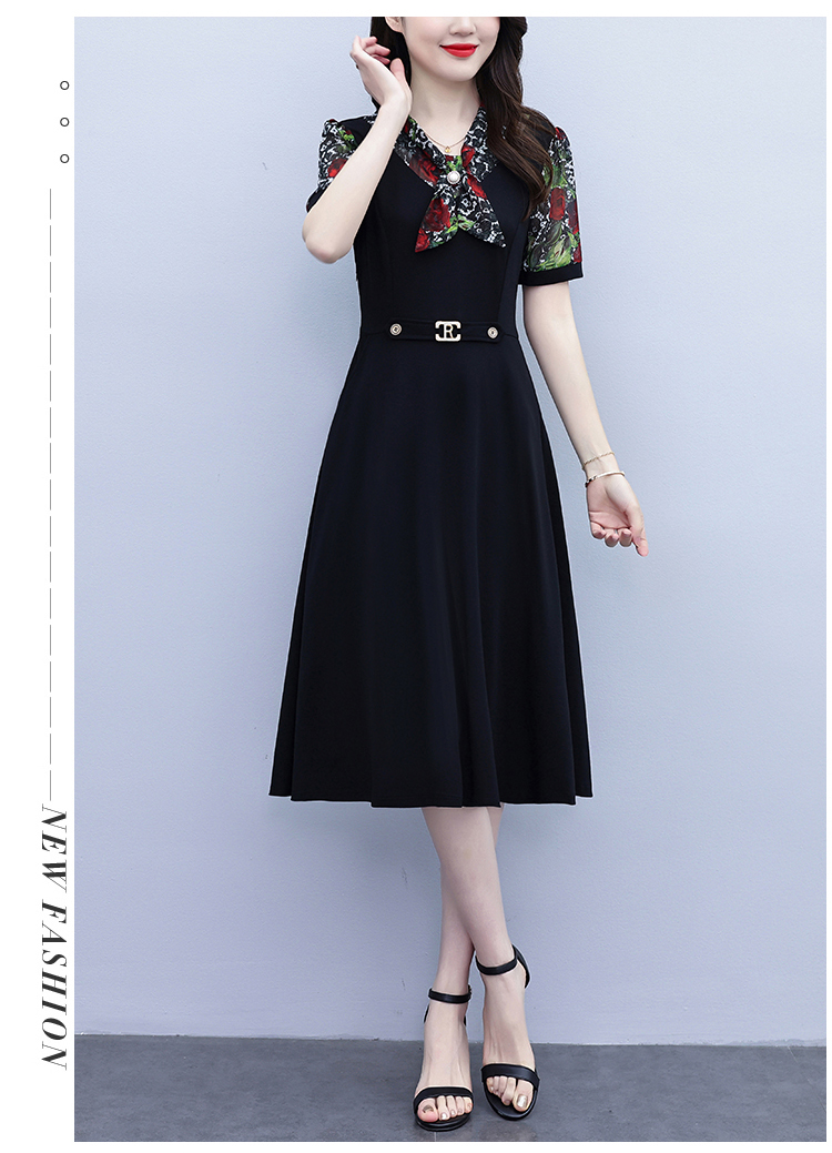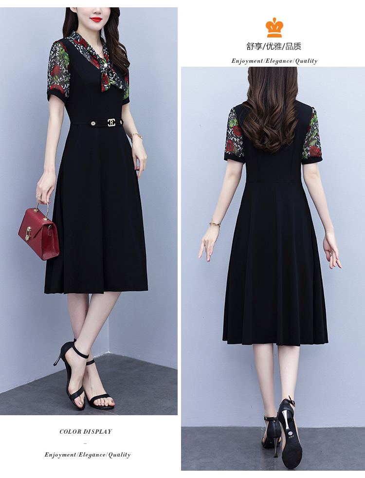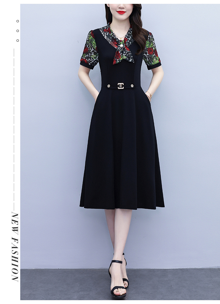 RY3987# 2026大码女装夏季新款韩版中年妈妈假两件超修身简约拼接连衣裙
