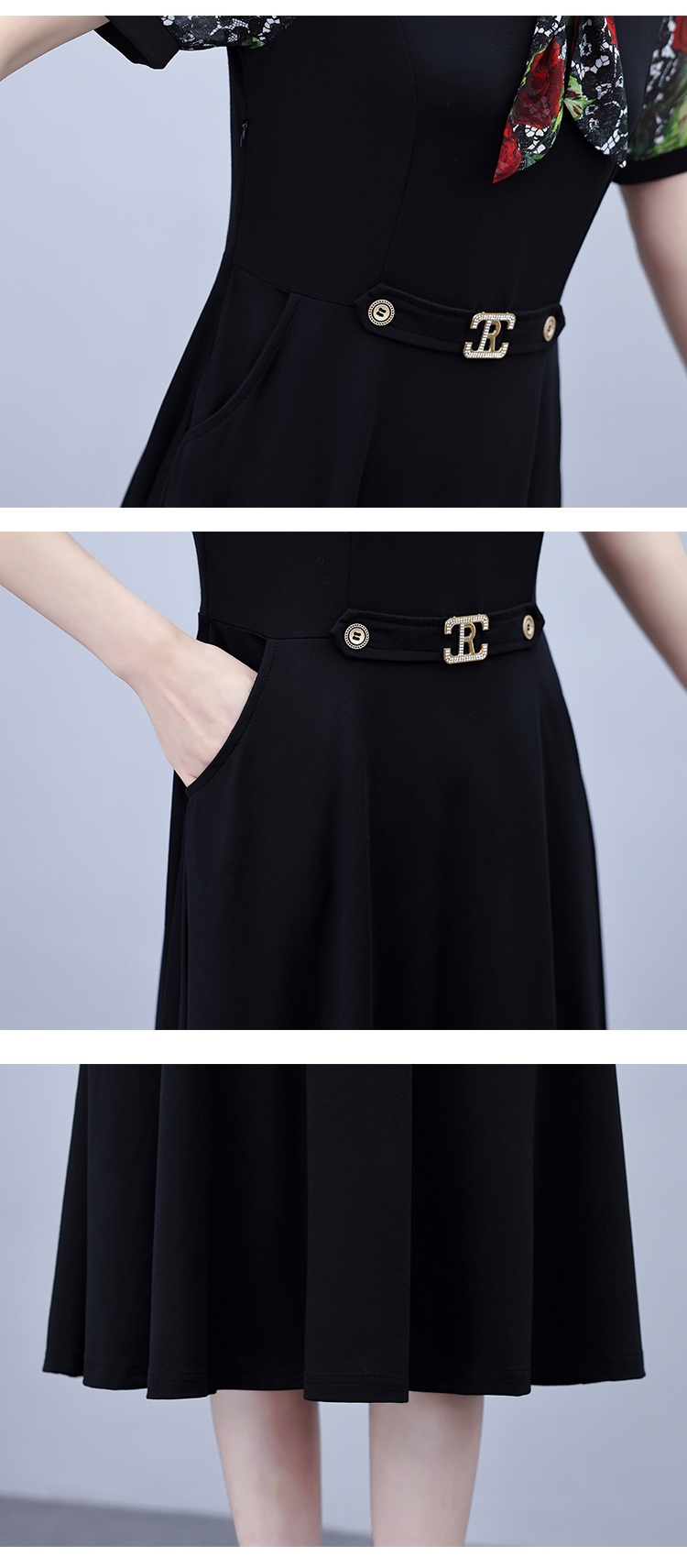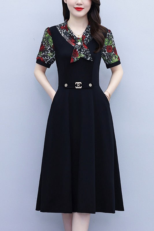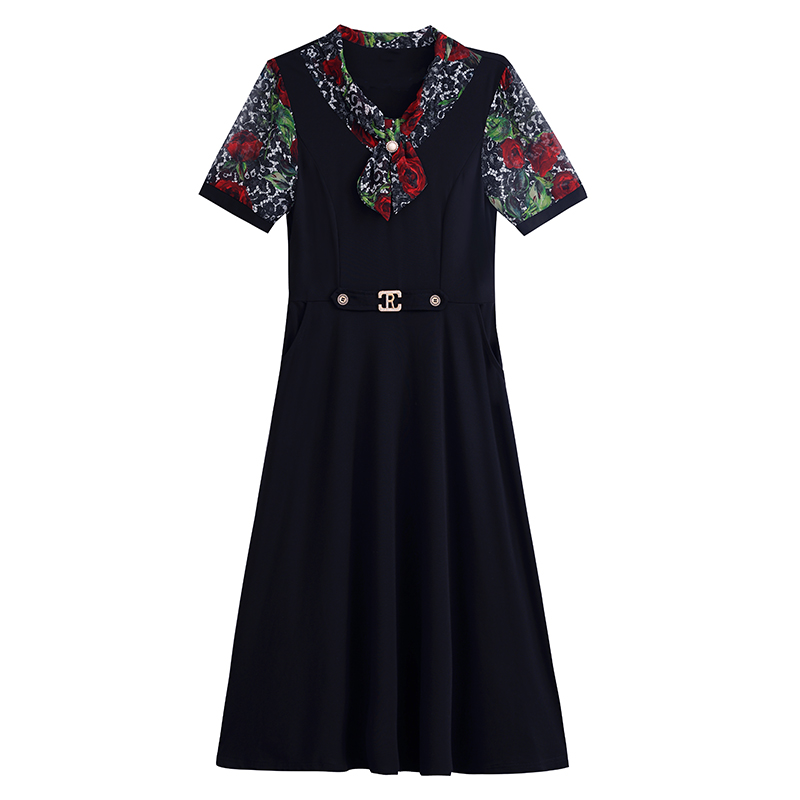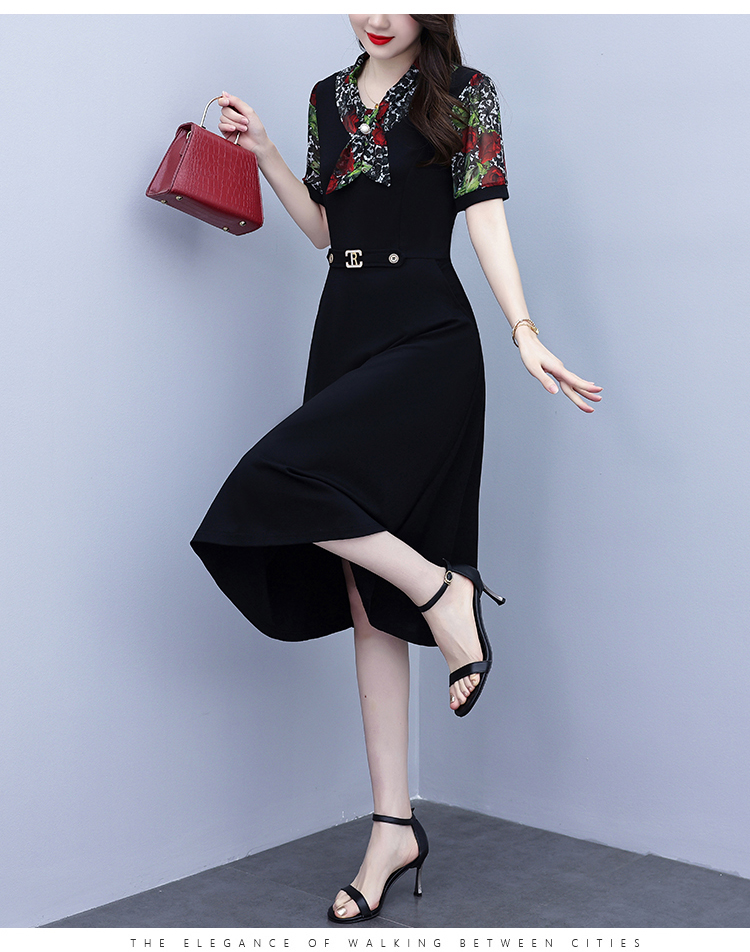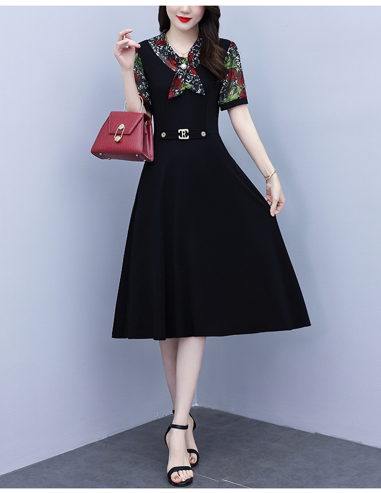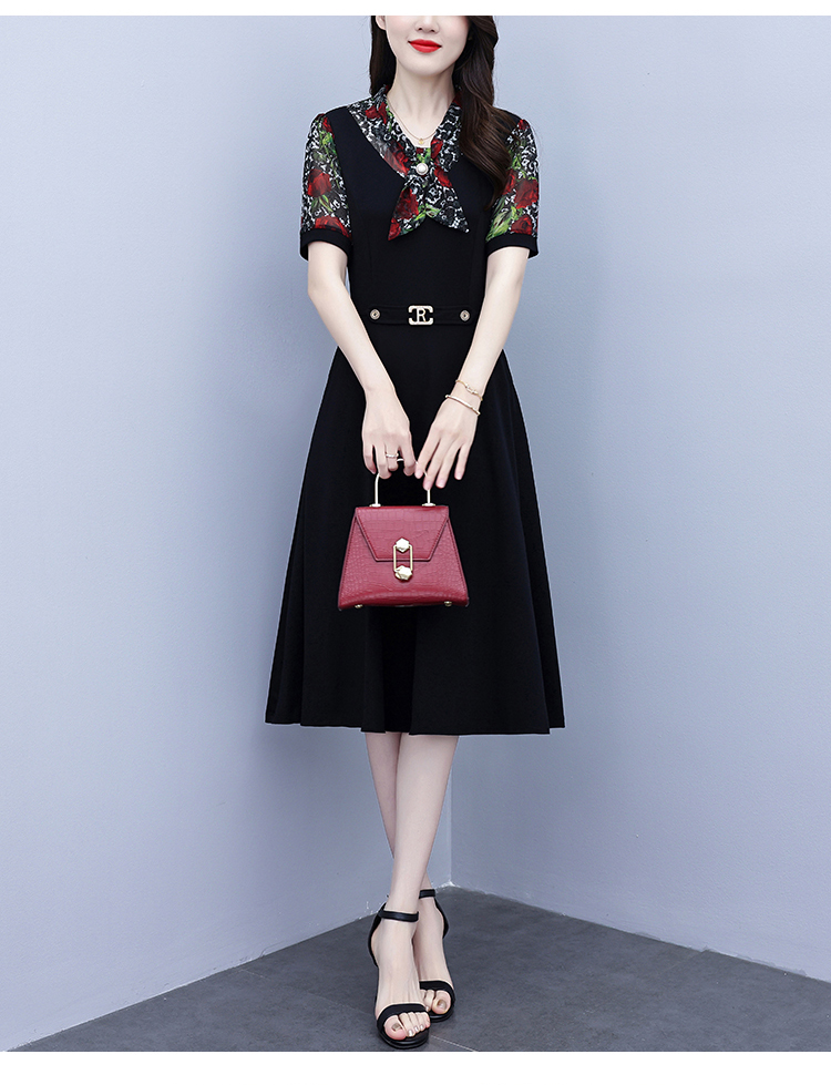 RY3987# 2026大码女装夏季新款韩版中年妈妈假两件超修身简约拼接连衣裙