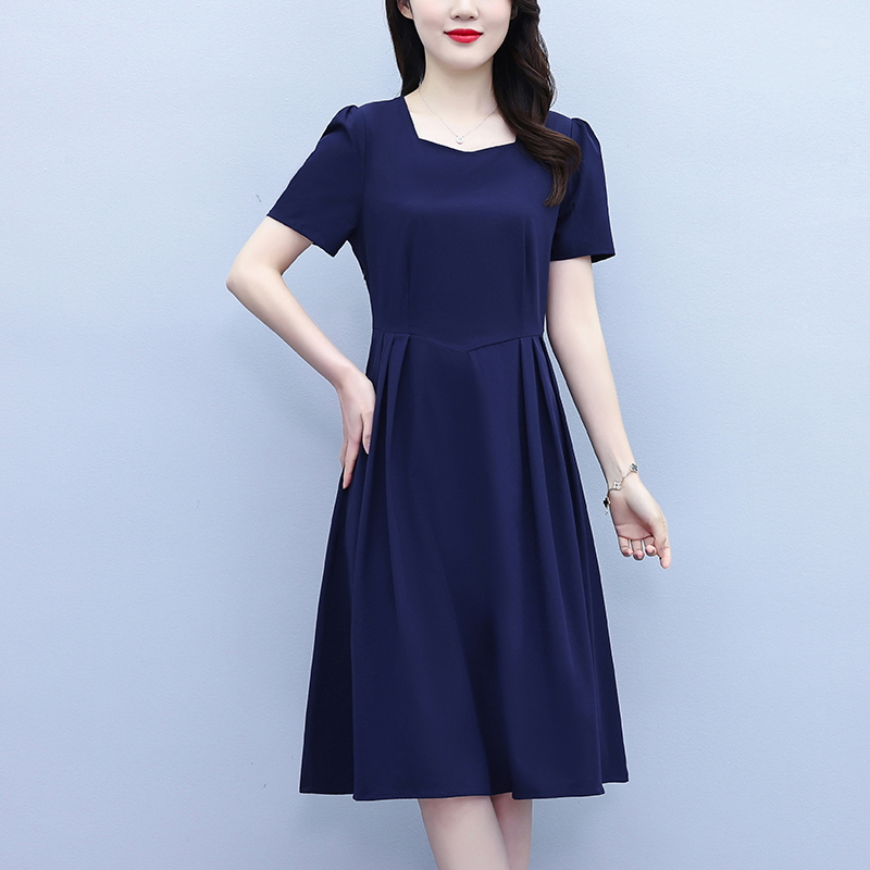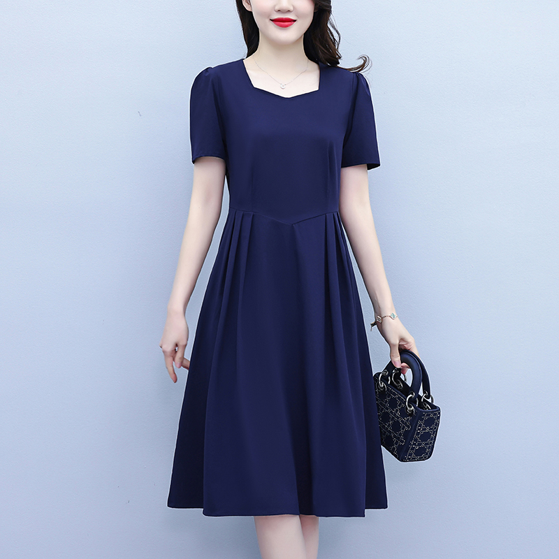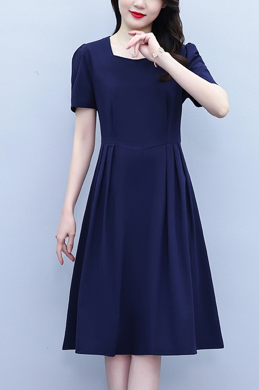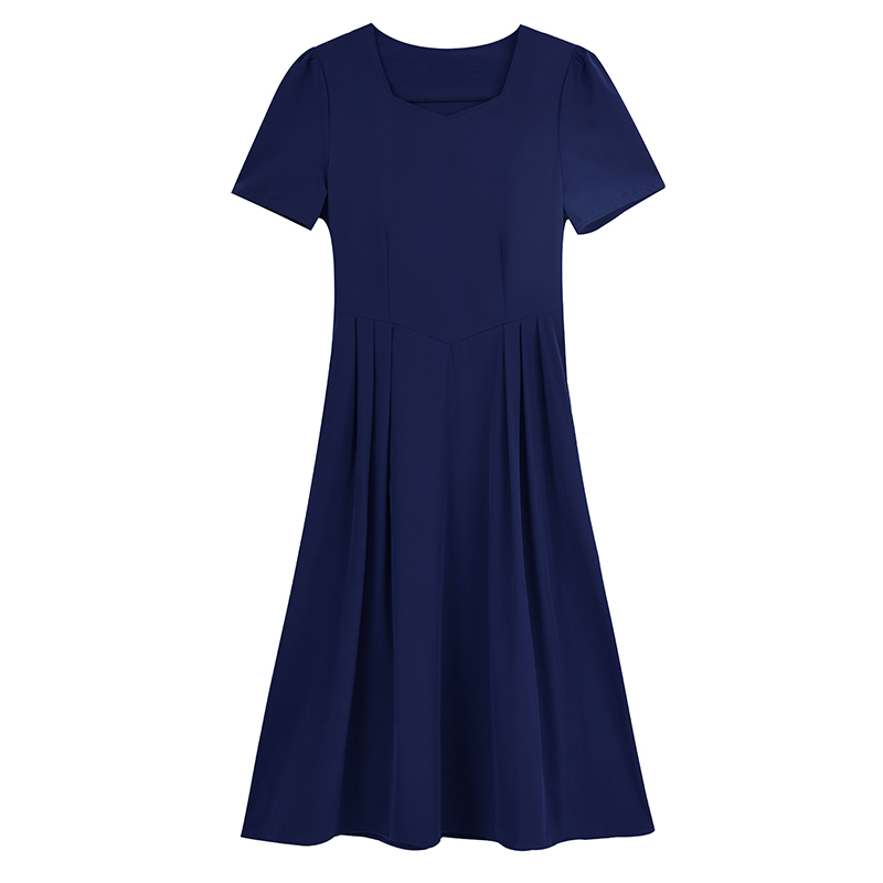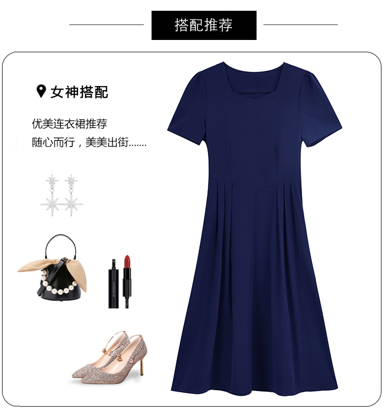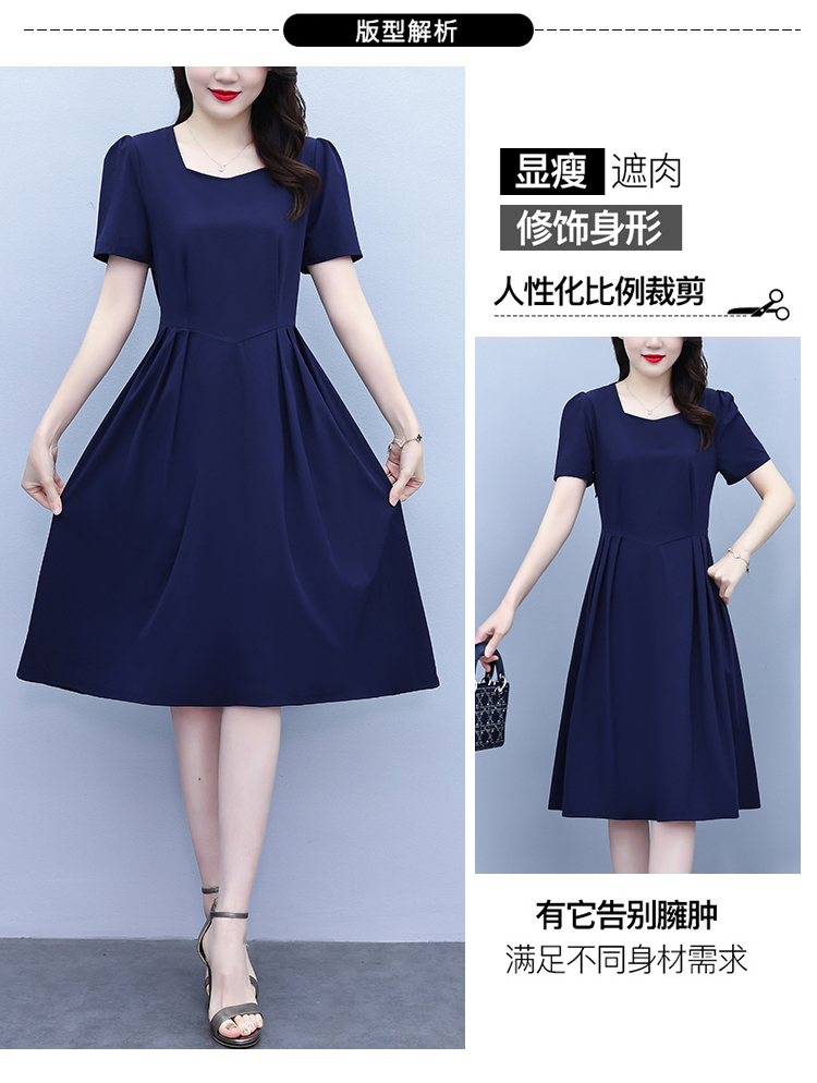 RY3989# 有口袋方领冰丝四面弹连衣裙2026夏季短袖新款气质修身显瘦裙子女