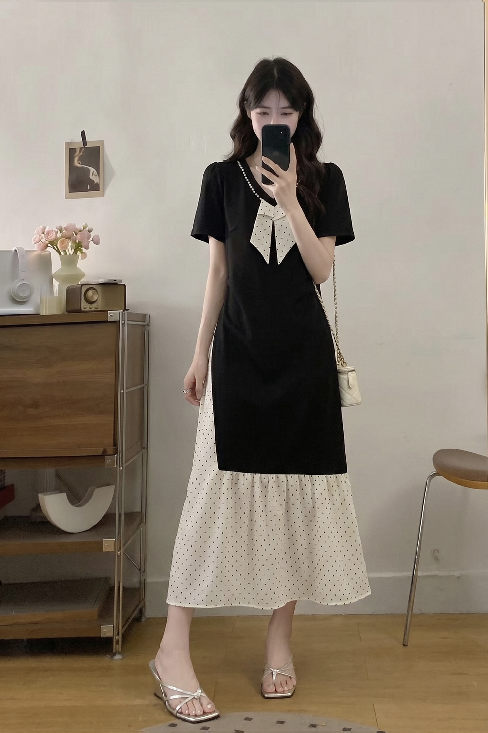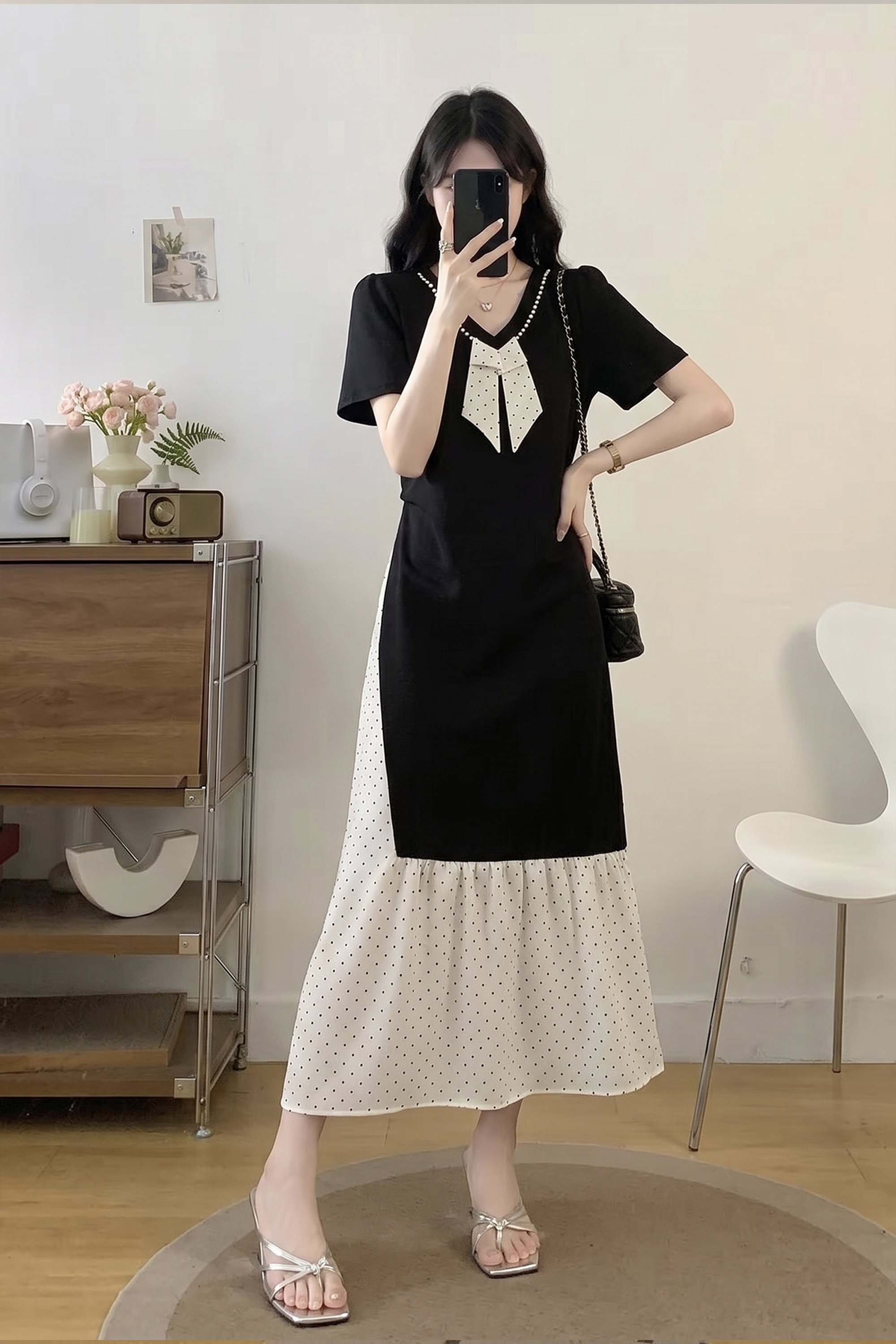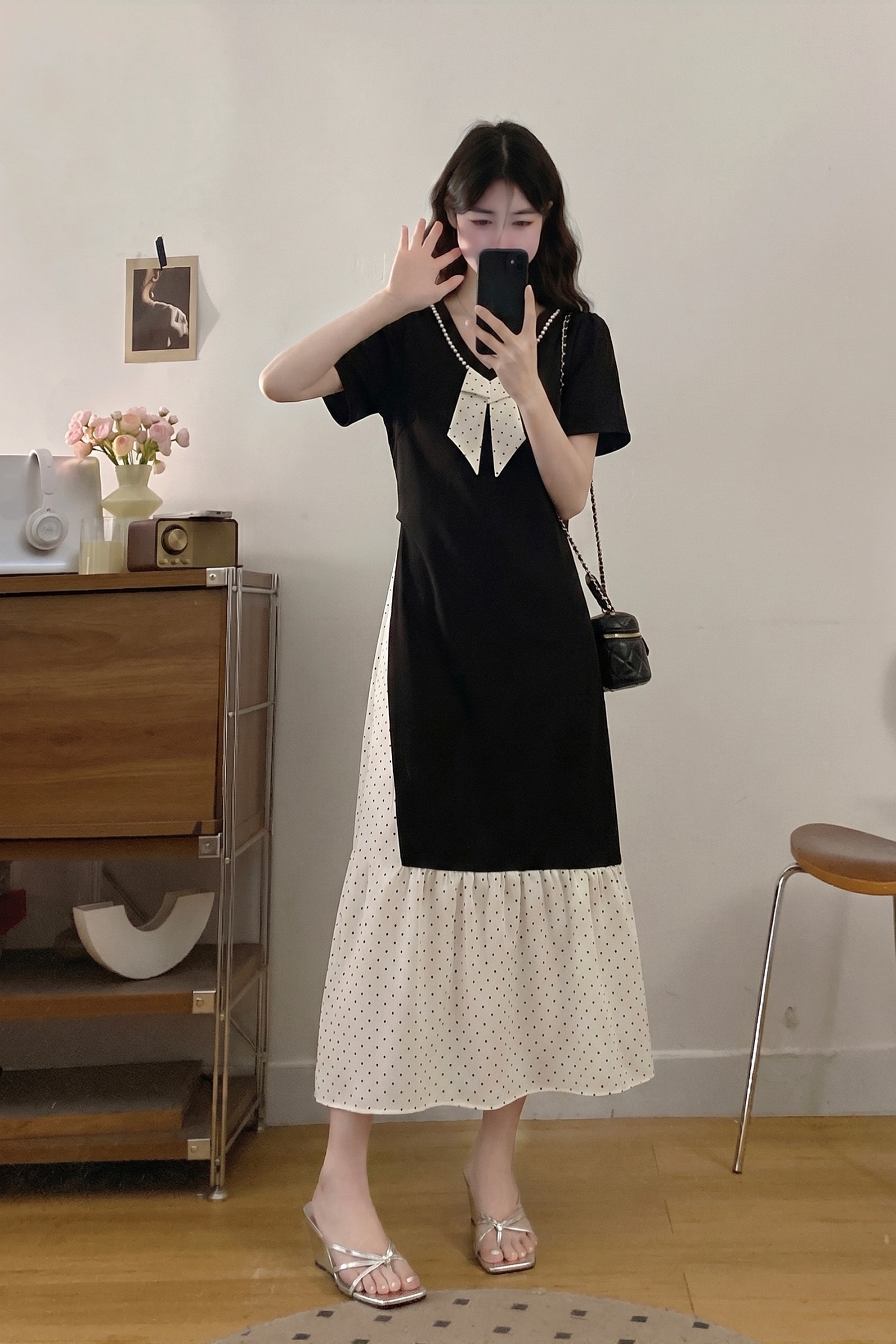 RY3990# 实拍大码女装2026夏季新款韩版轻奢气质时尚显瘦遮肉胖MM连衣裙