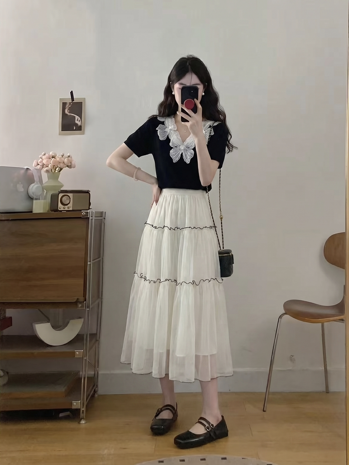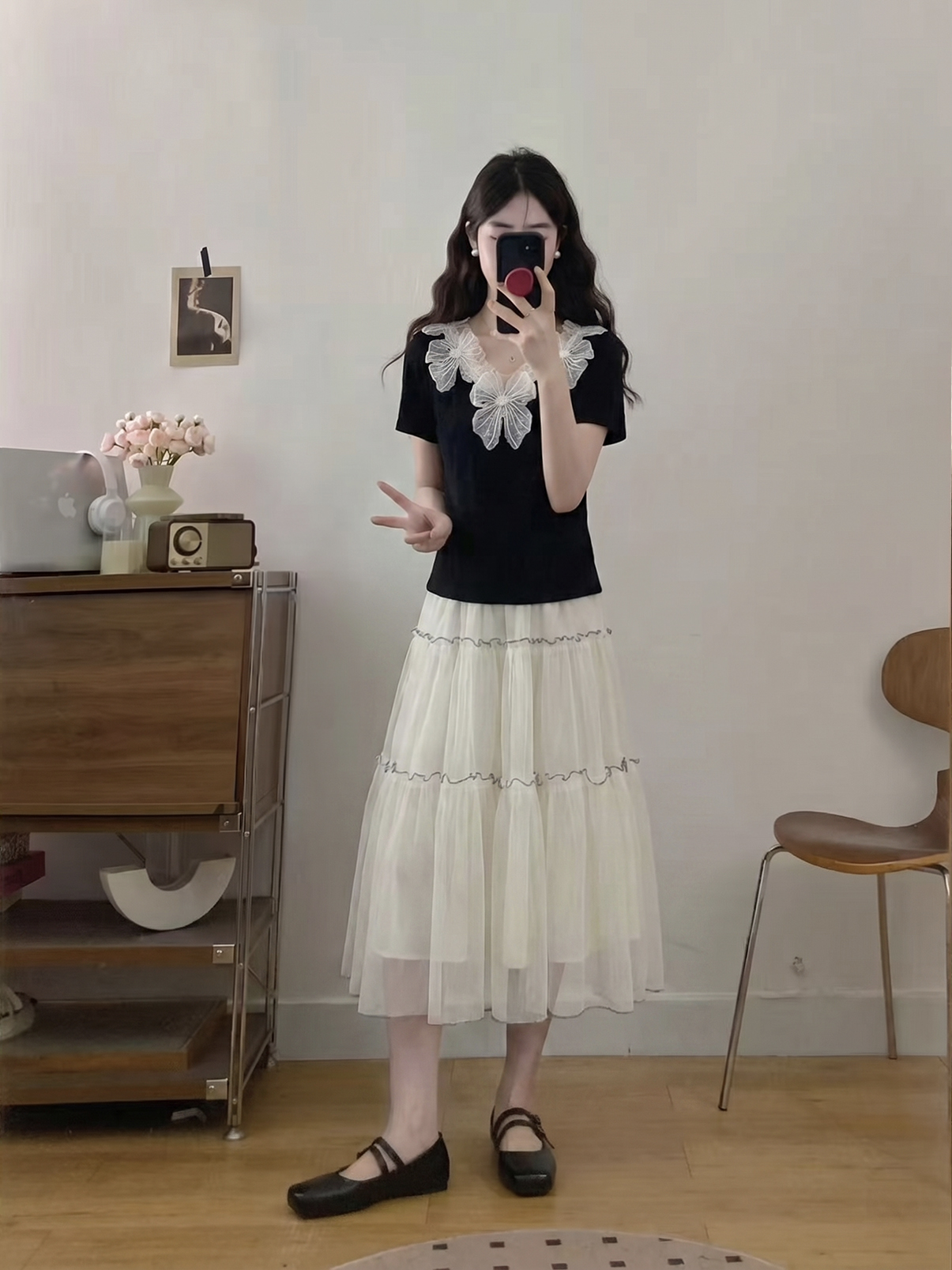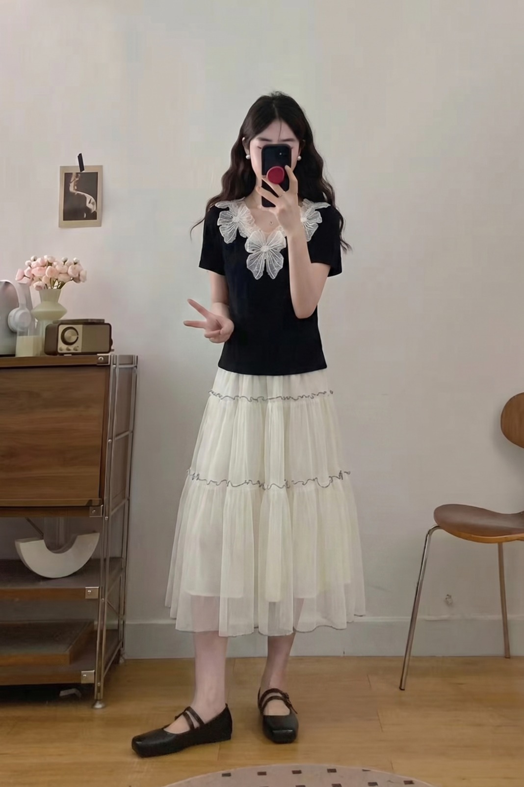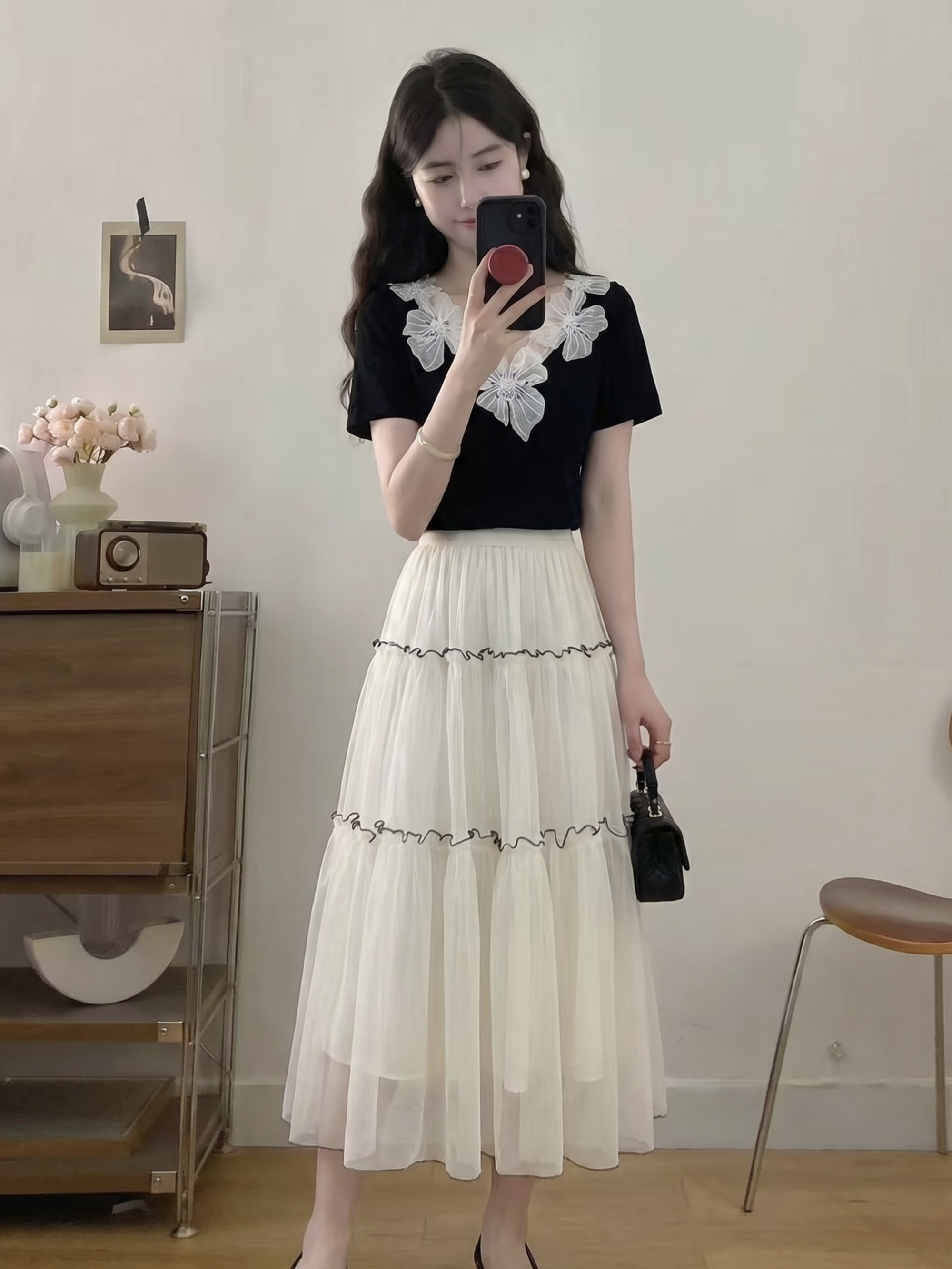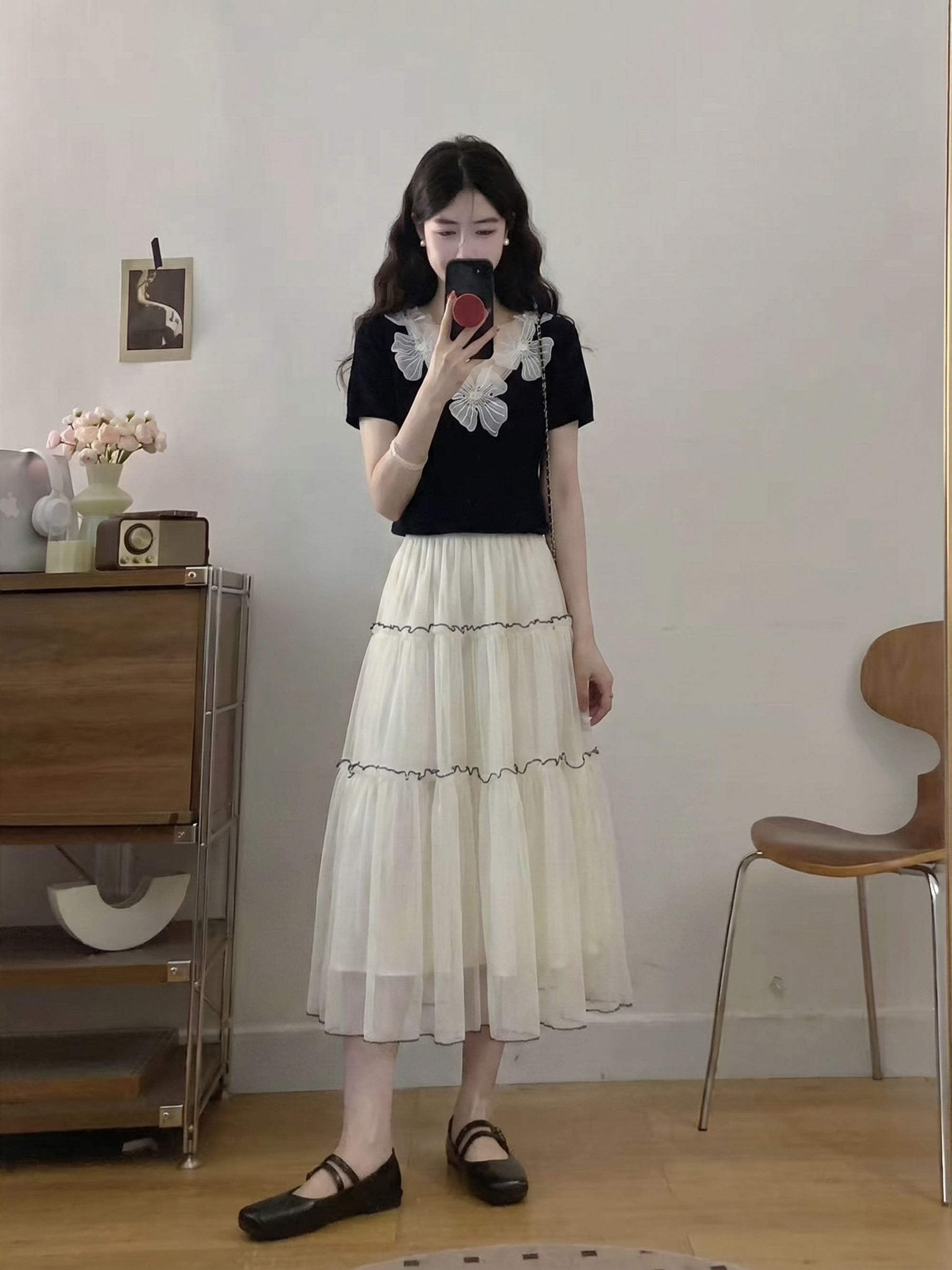 RY3992# 实拍大码女装2026夏季新款洋气花朵领显瘦遮肉百搭上衣+纱裙套装