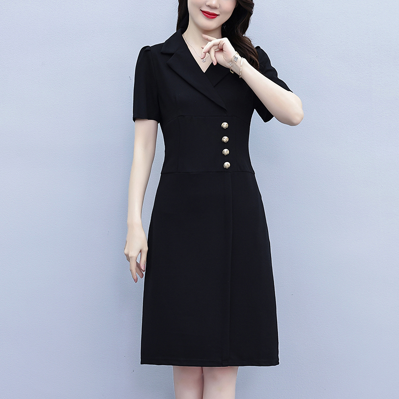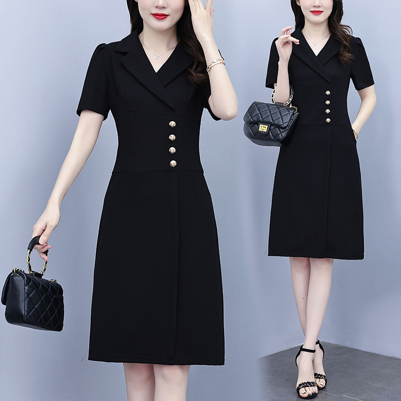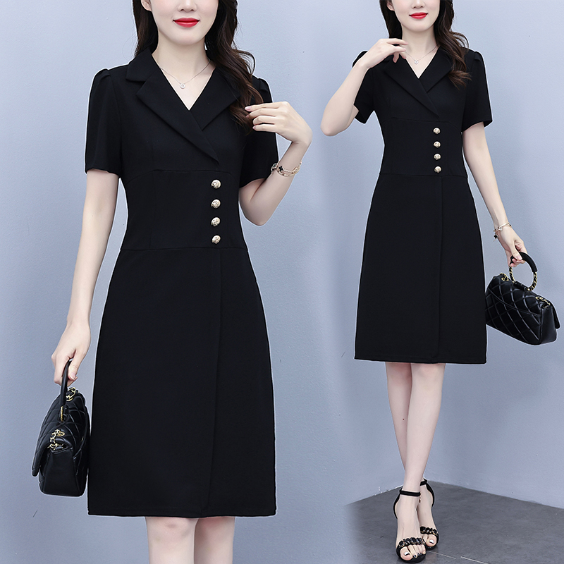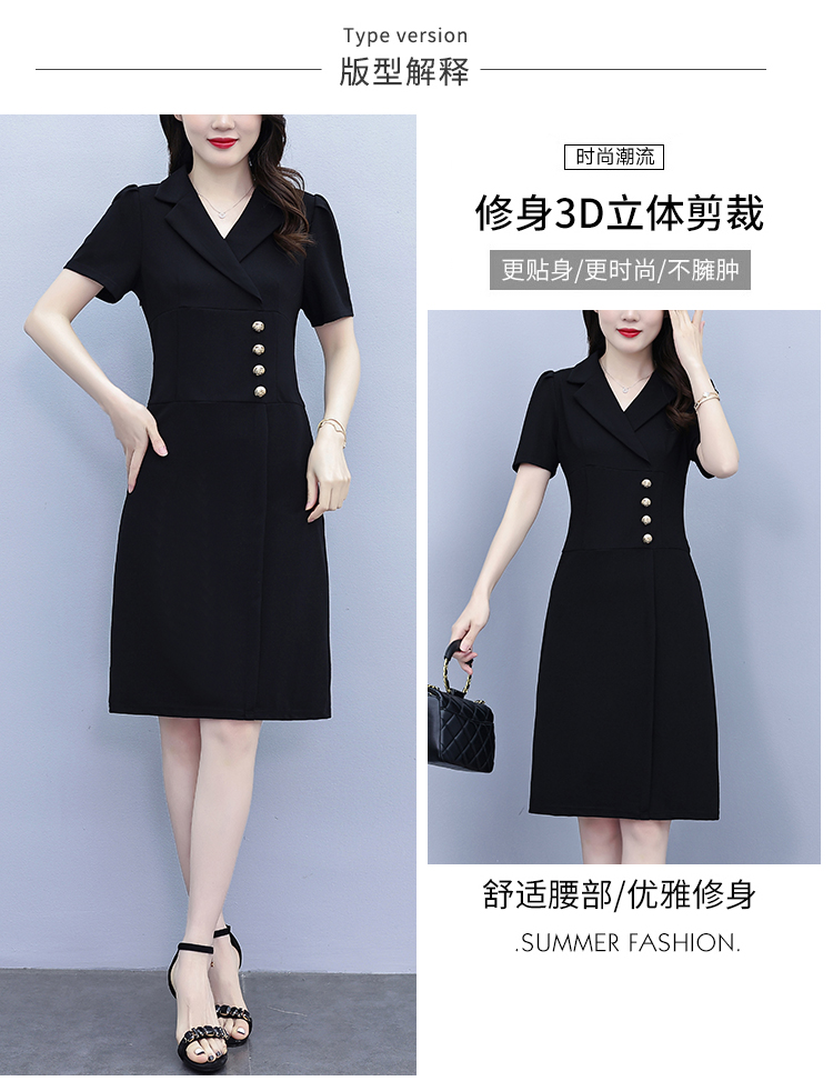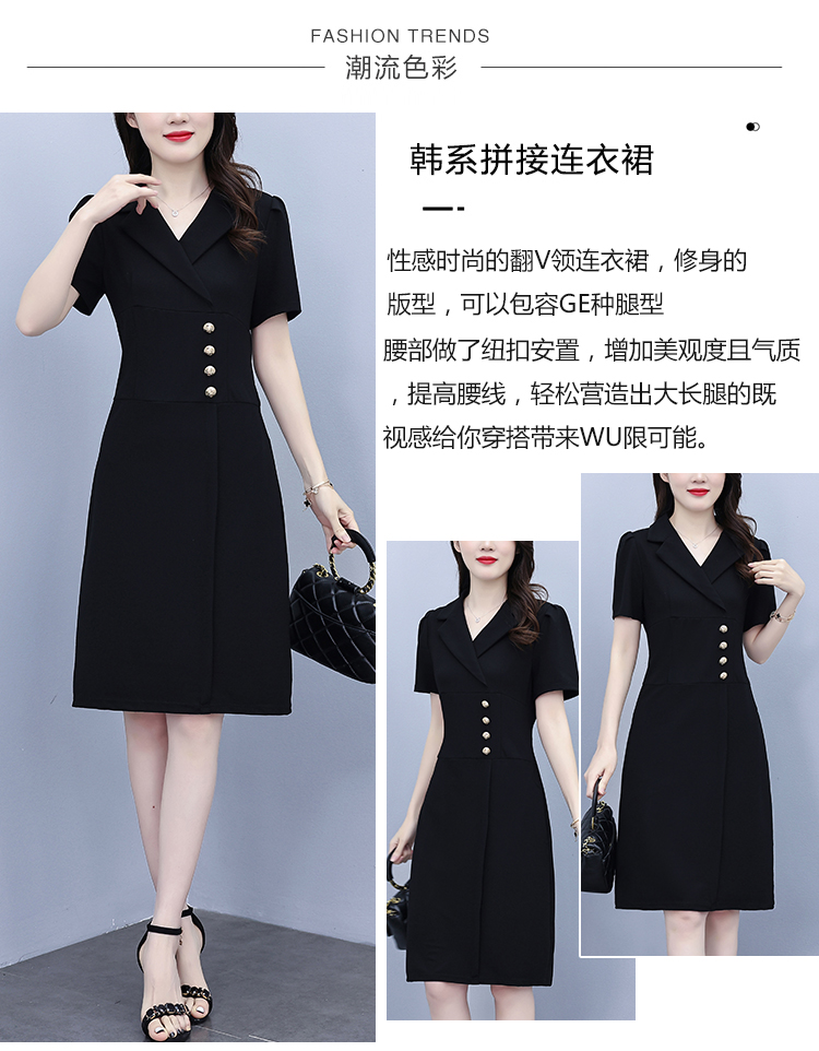 RY4002# 已出货 夏季新款大码女装连衣裙拼接假两件套通勤职业显瘦款裙子