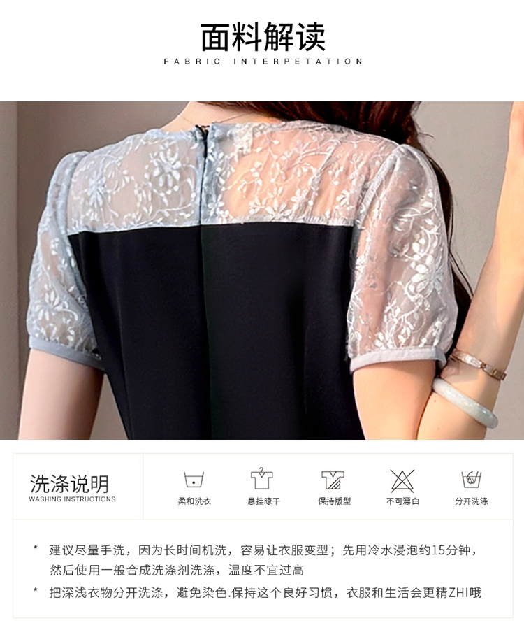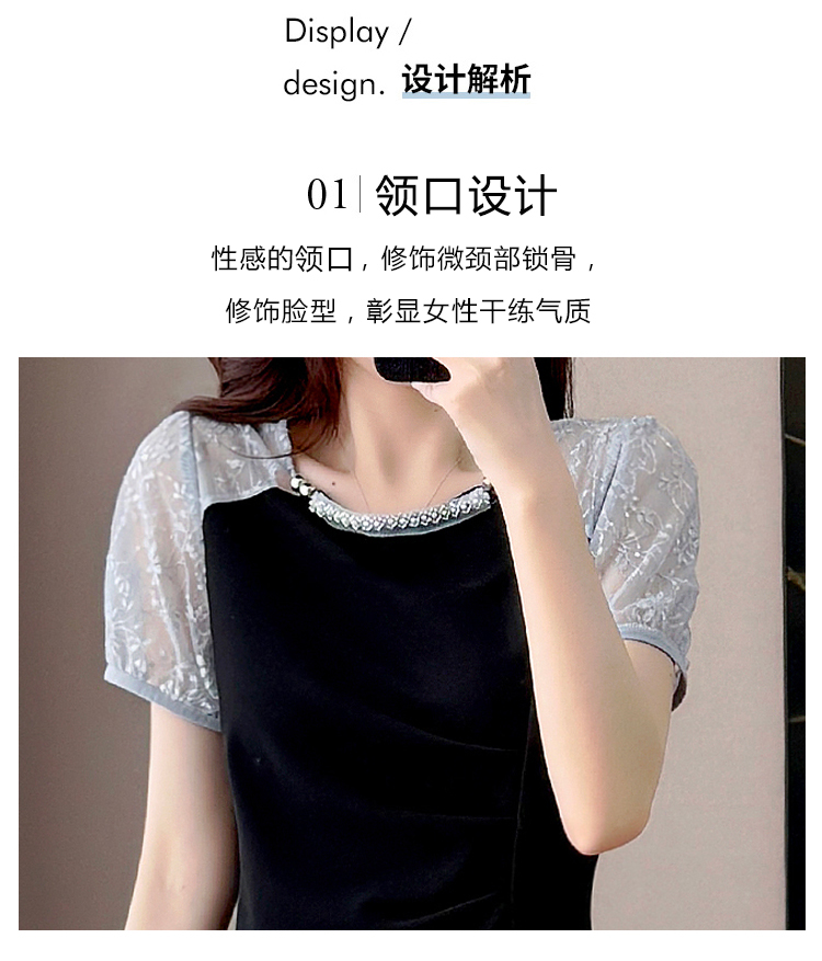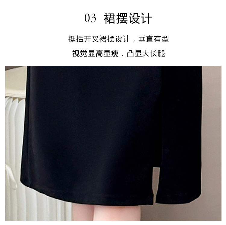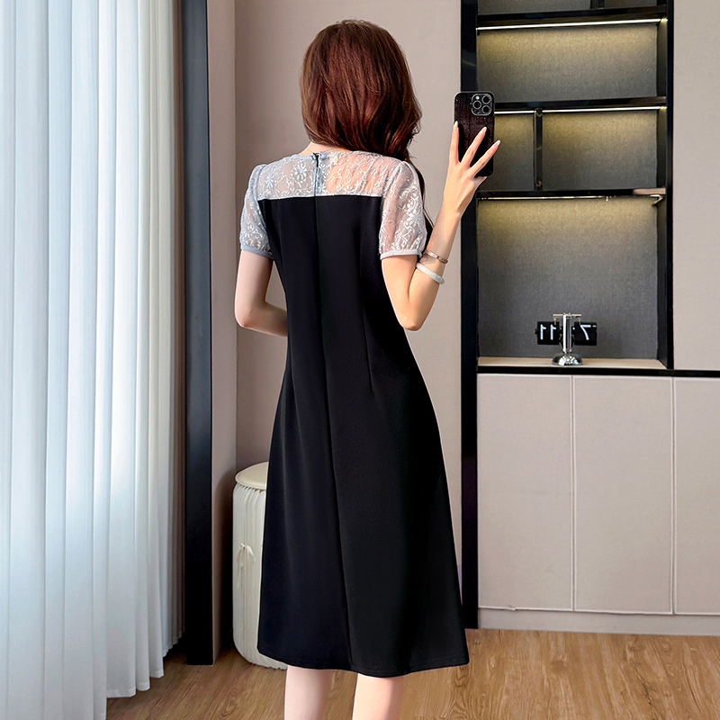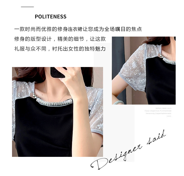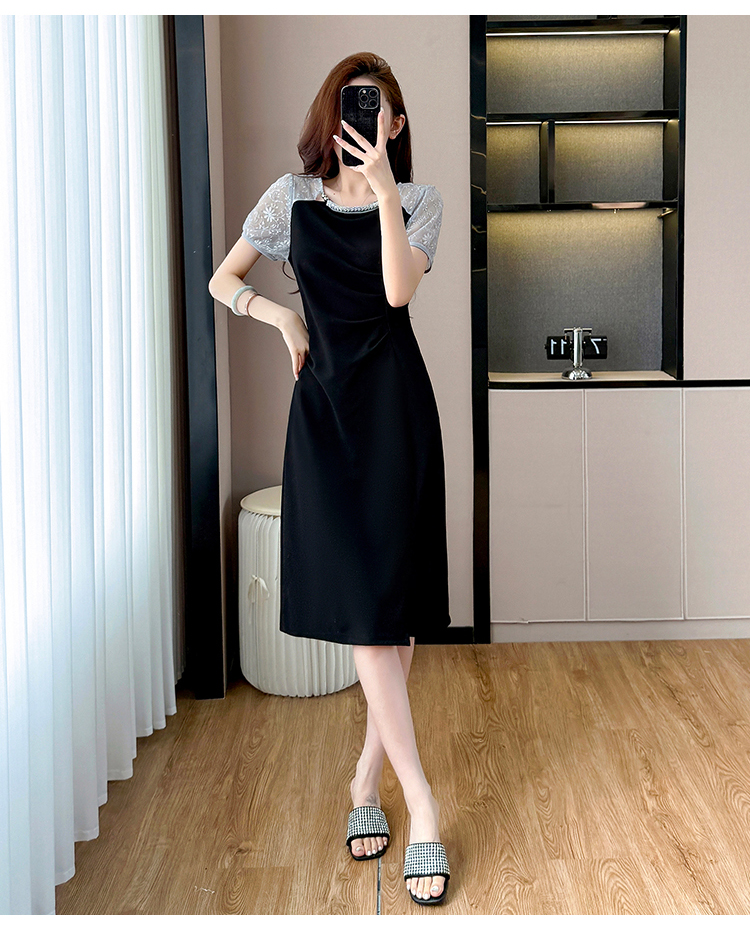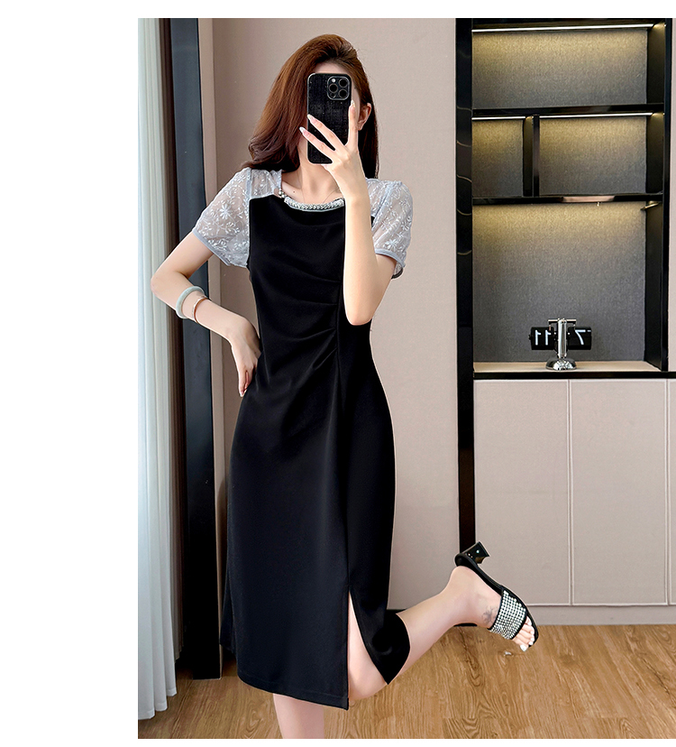 RY4003#胖mm新款钉珠时尚修身拼接洋气显瘦大码连衣裙夏季黑色开叉