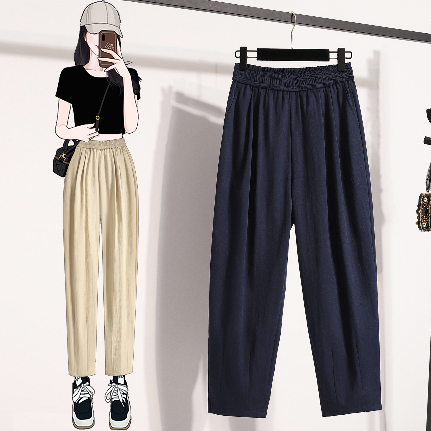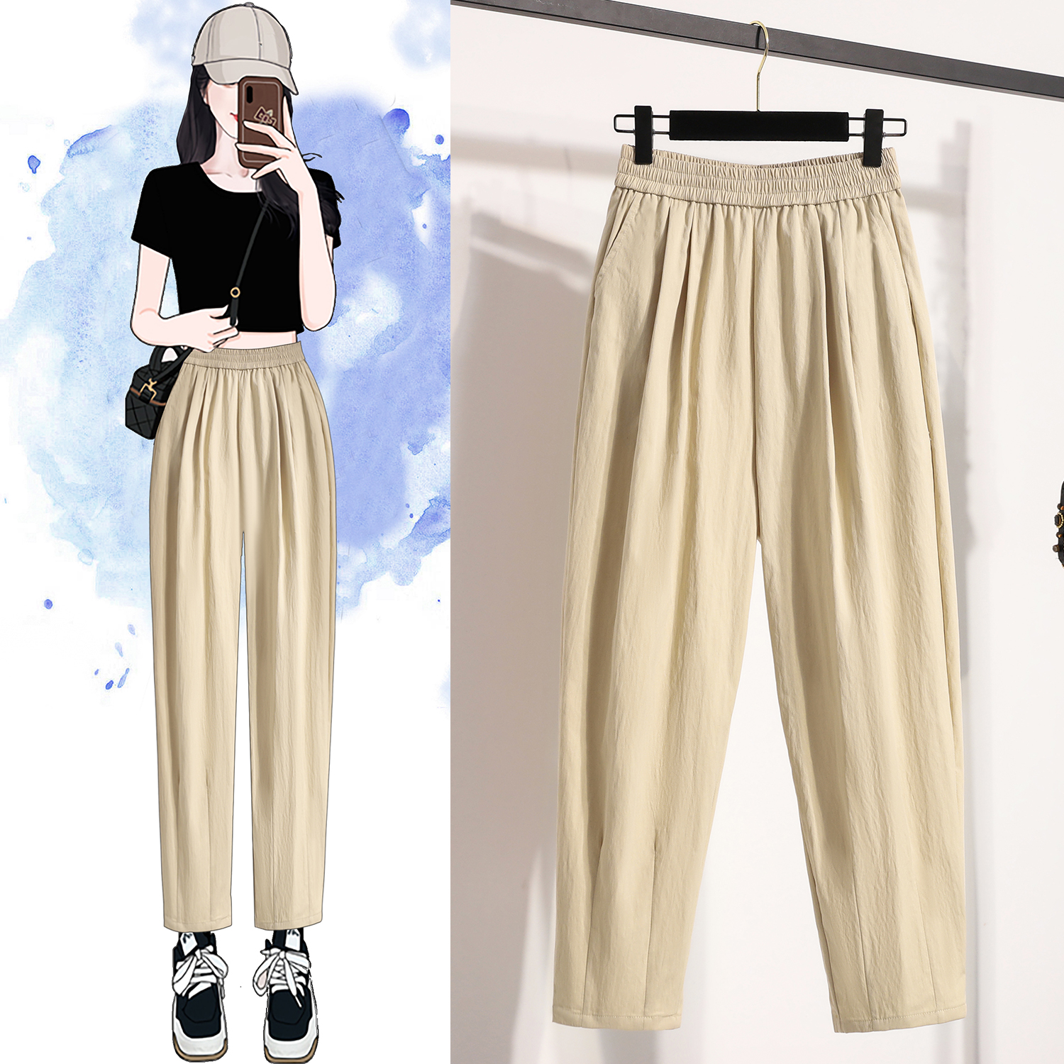 RY4005# 九分萝卜裤女夏季薄款小个子宽松休闲哈伦裤阔腿裤子