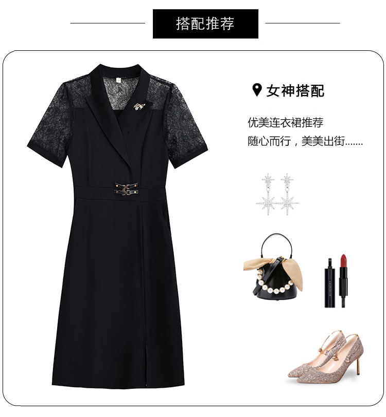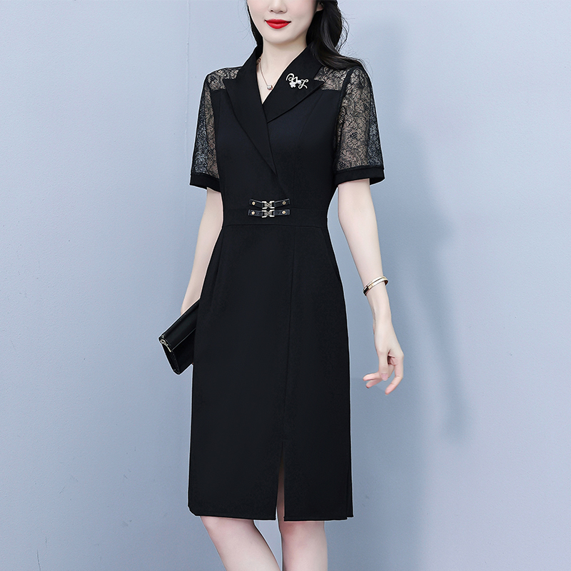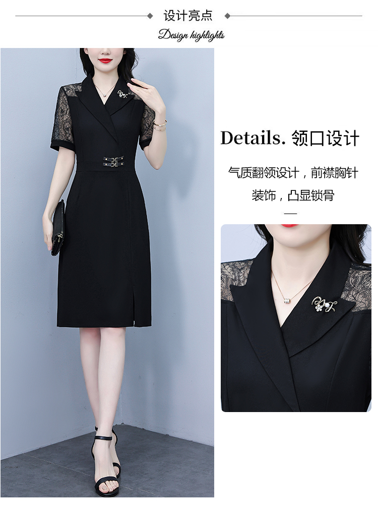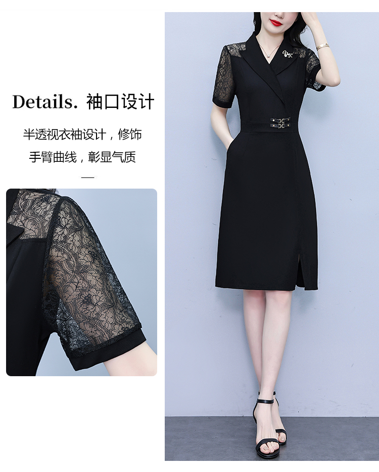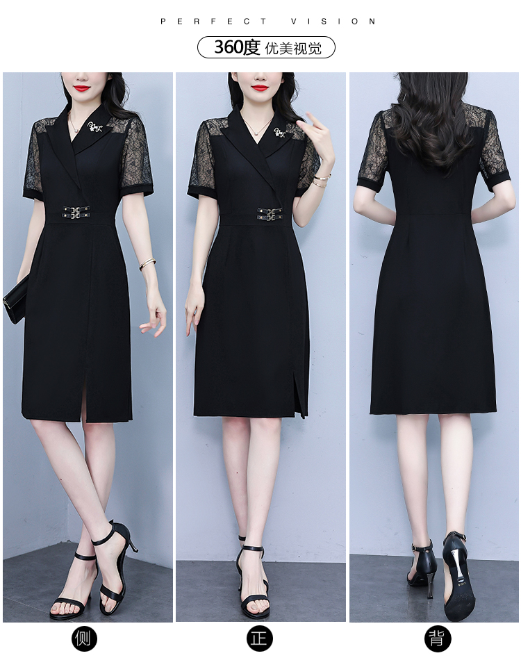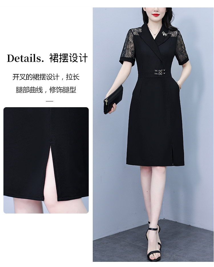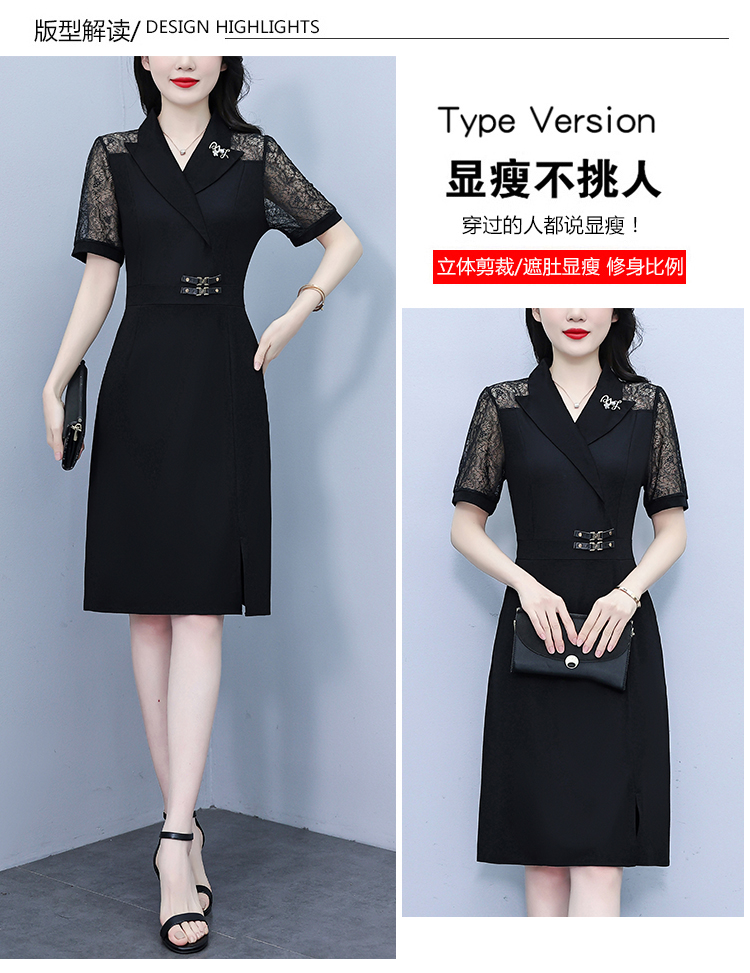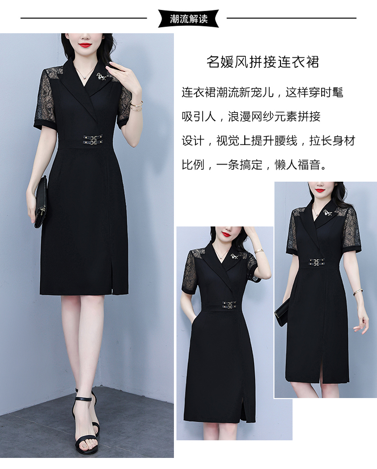 RY4067# 2026夏新款阔太太大码女装时尚气质减龄修身显瘦蕾丝拼接连衣裙