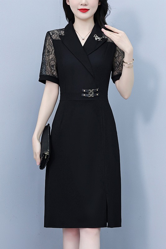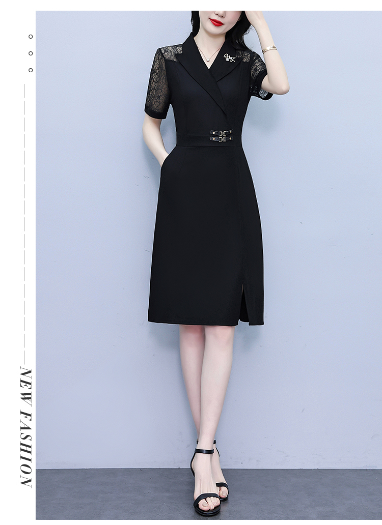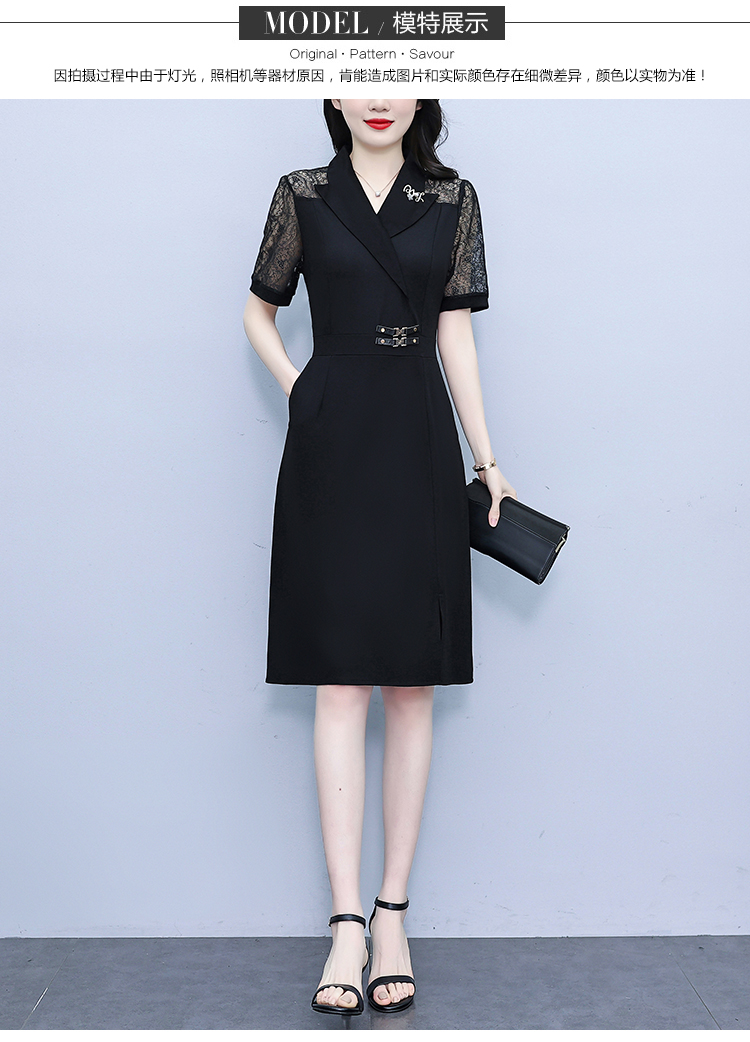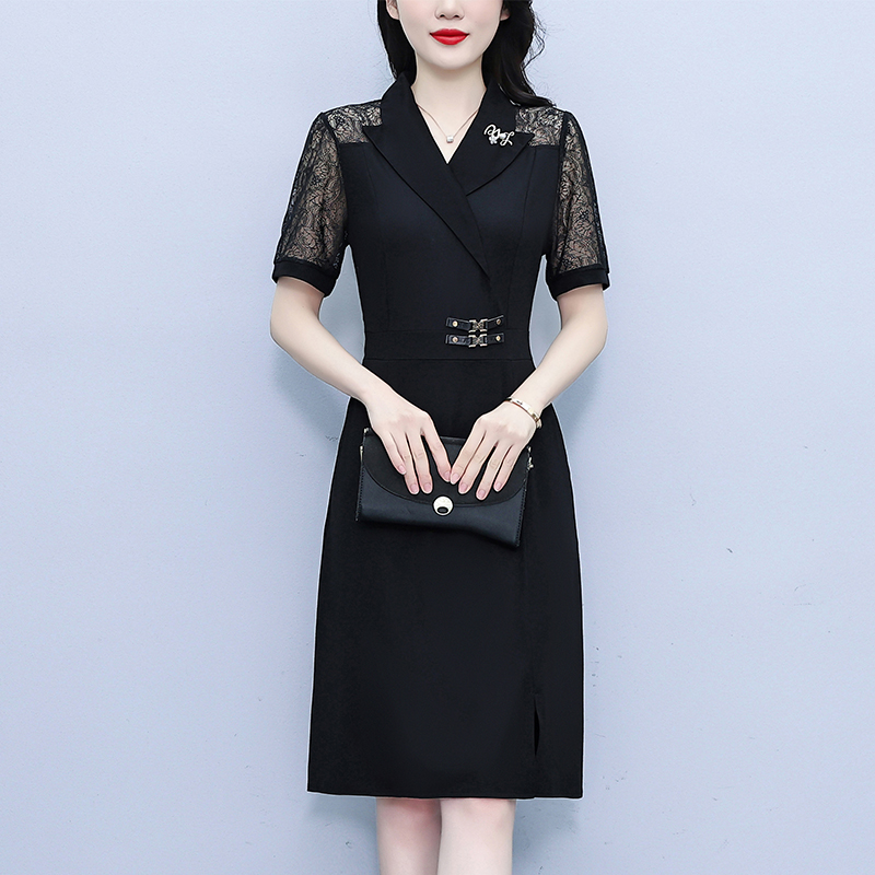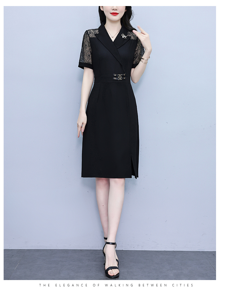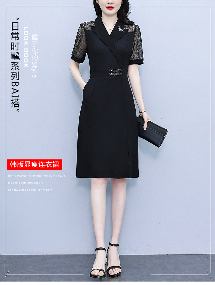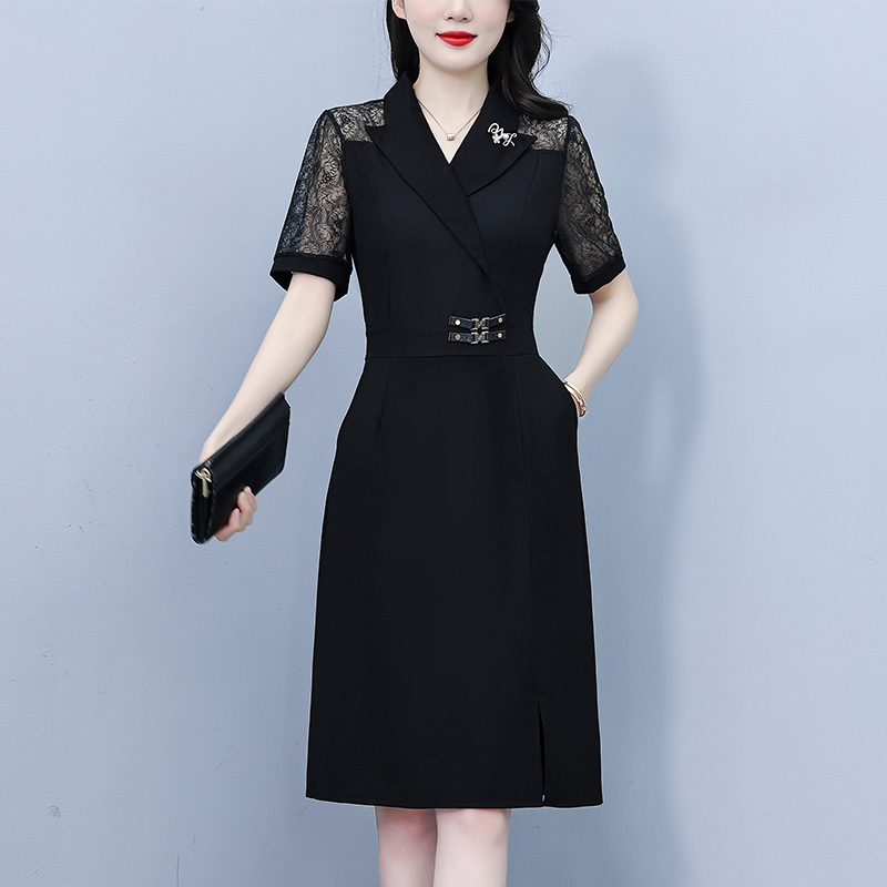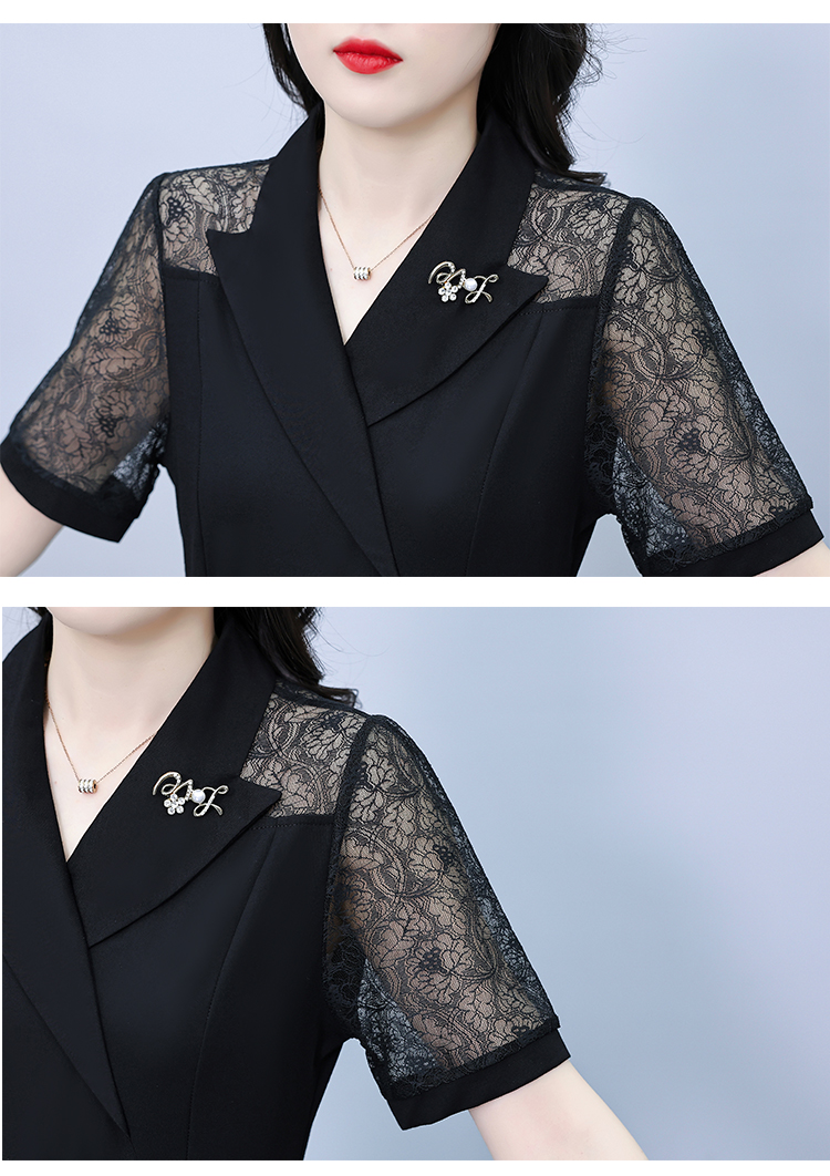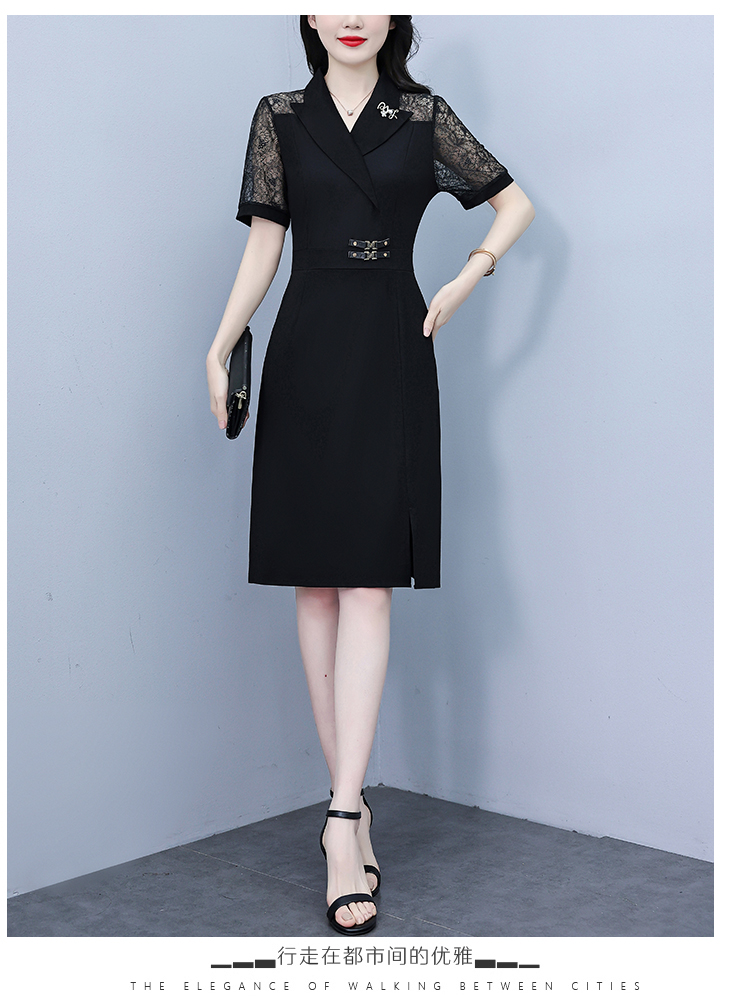 RY4067# 2026夏新款阔太太大码女装时尚气质减龄修身显瘦蕾丝拼接连衣裙