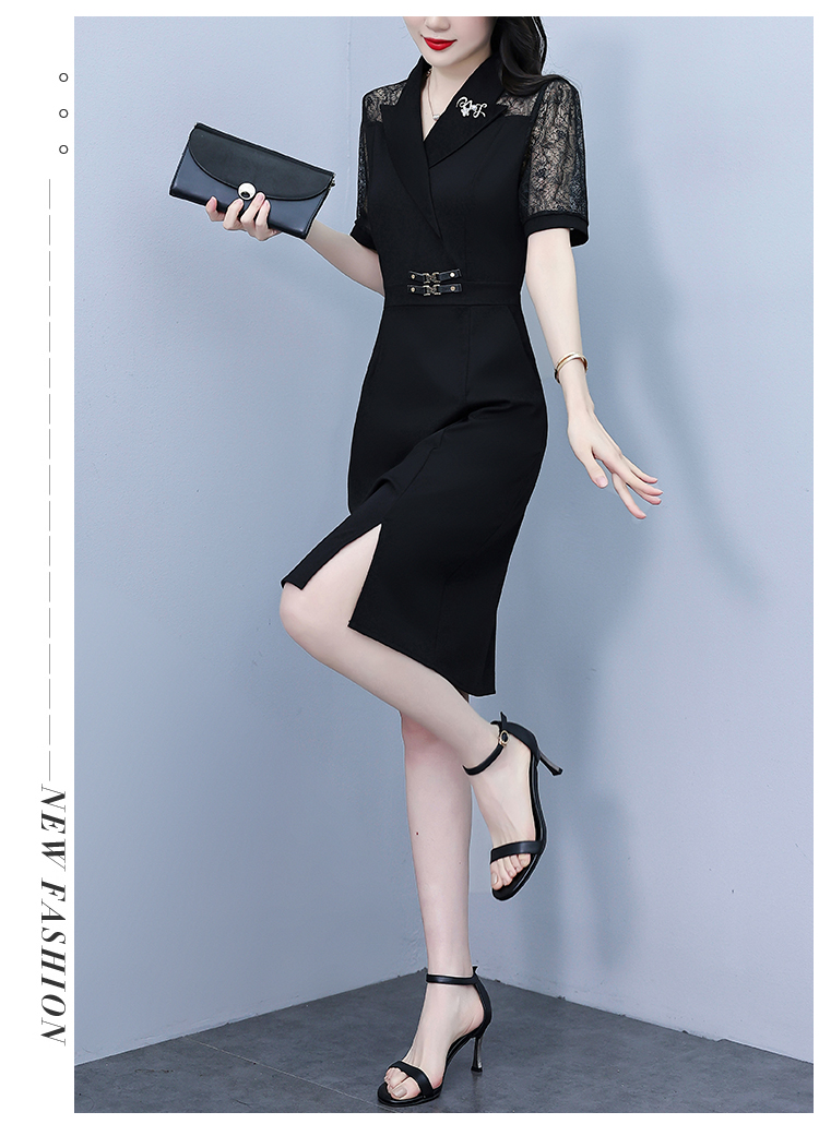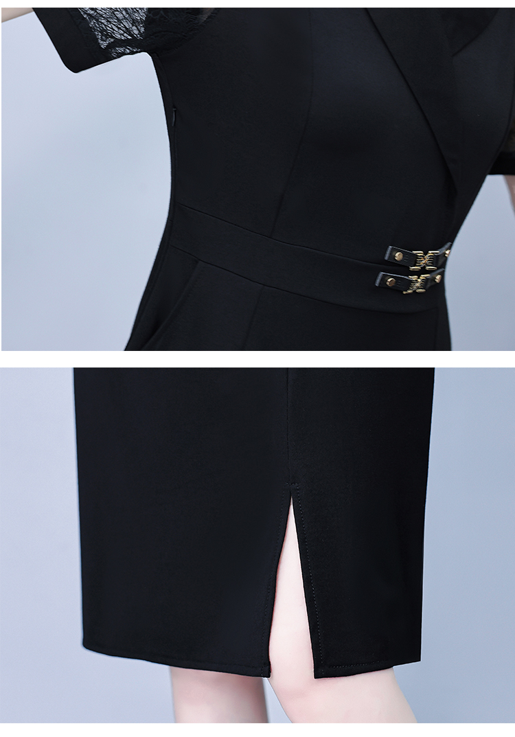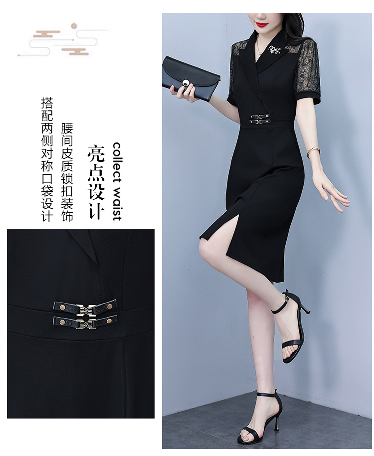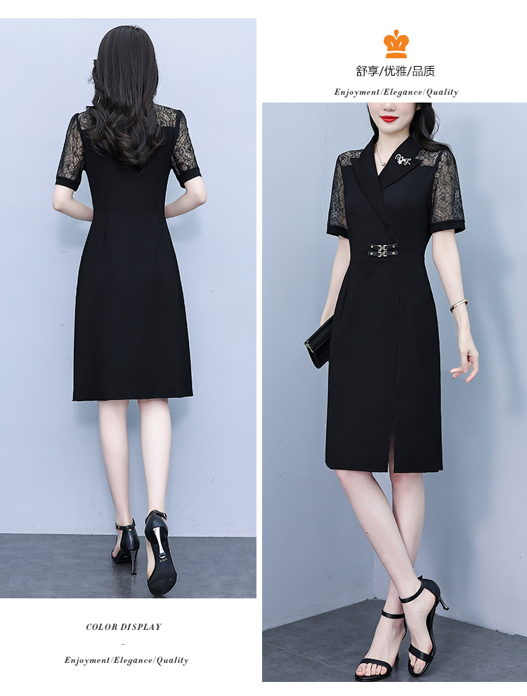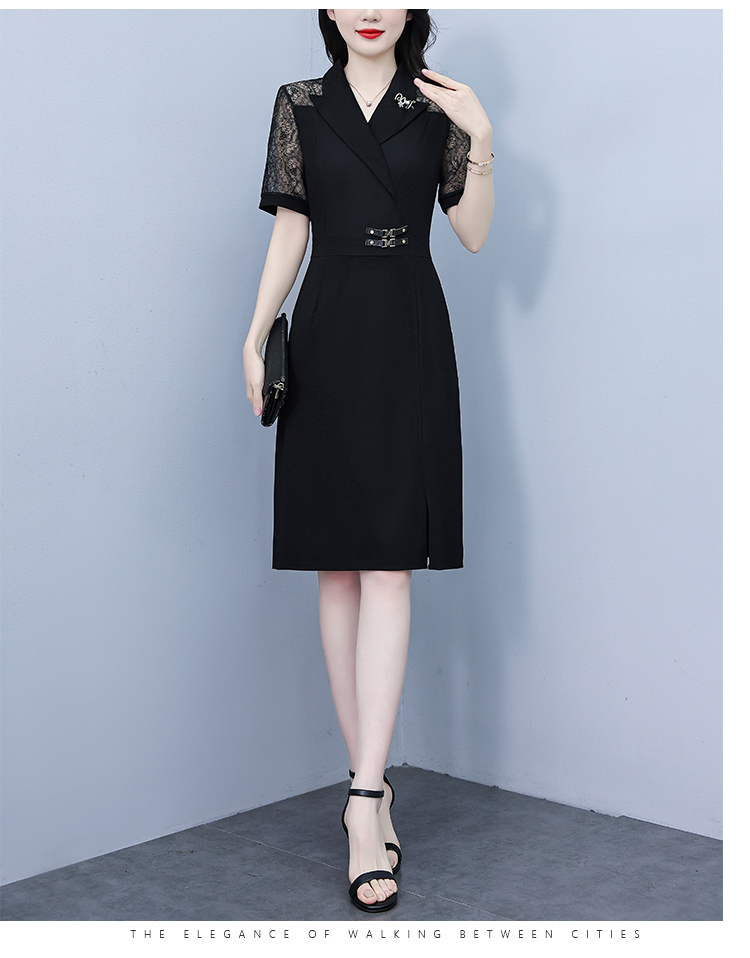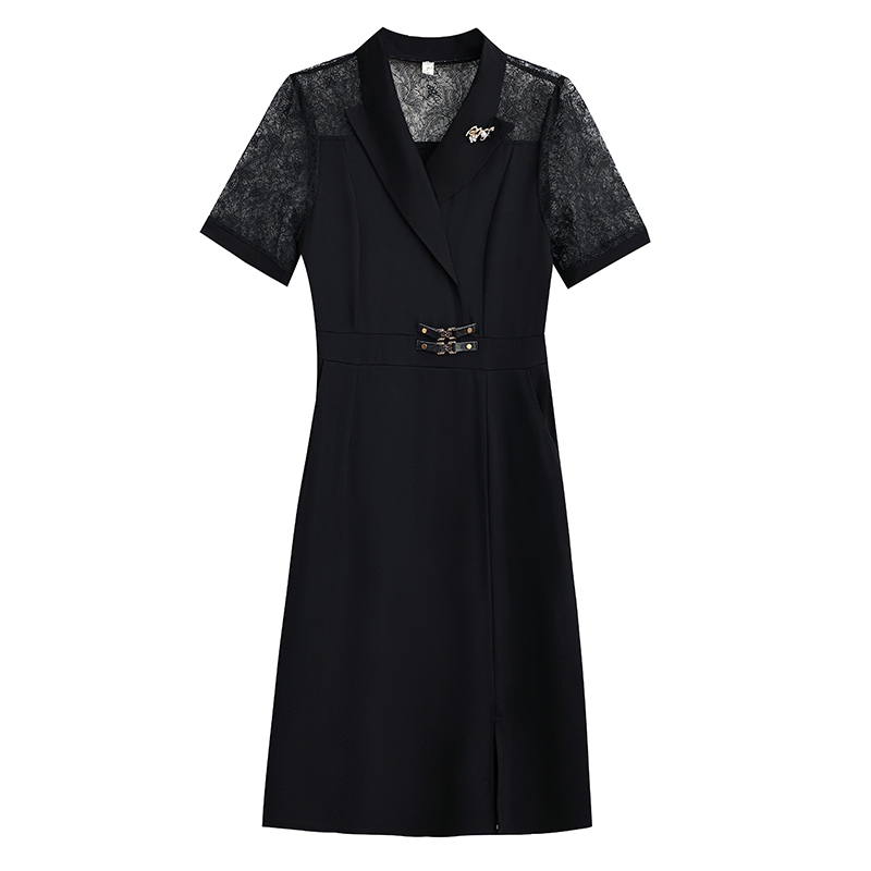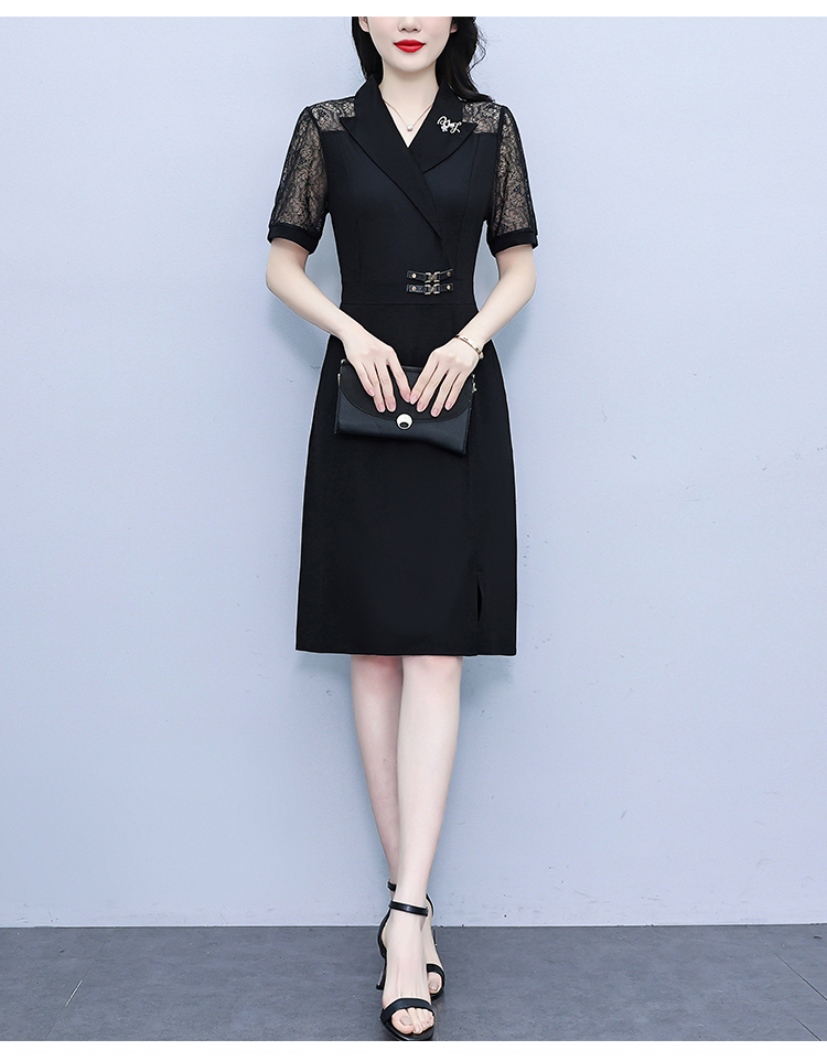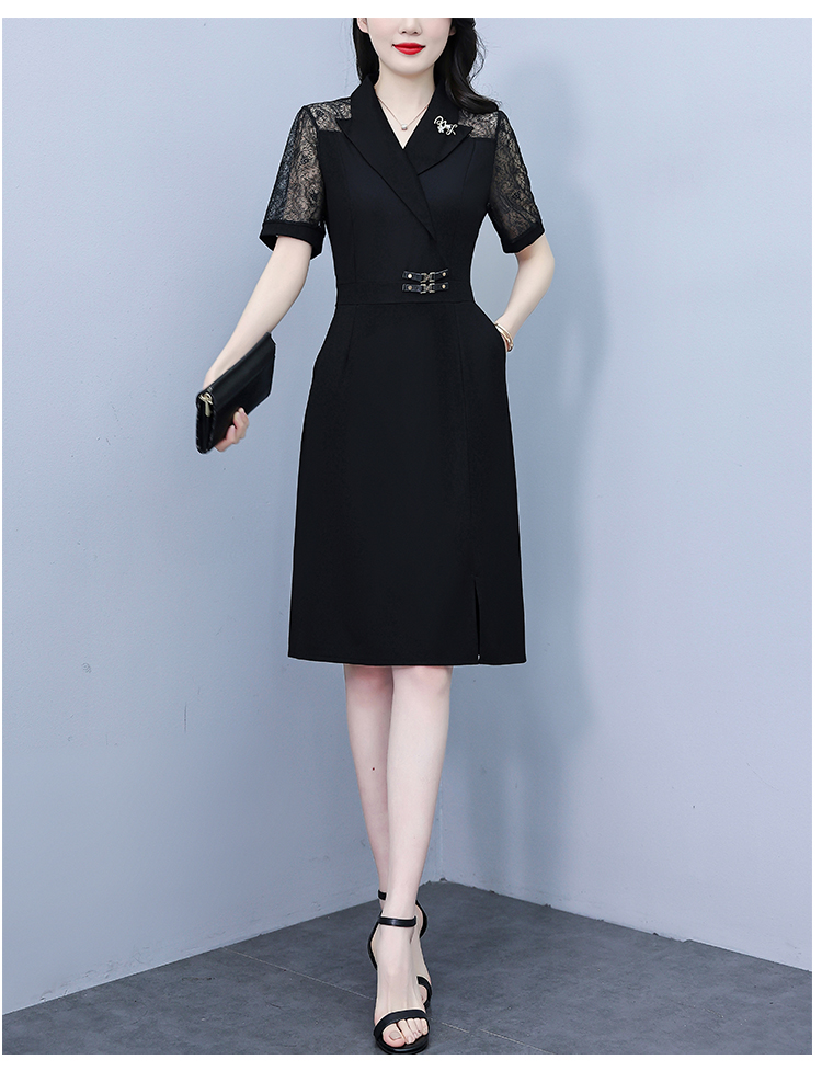 RY4067# 2026夏新款阔太太大码女装时尚气质减龄修身显瘦蕾丝拼接连衣裙