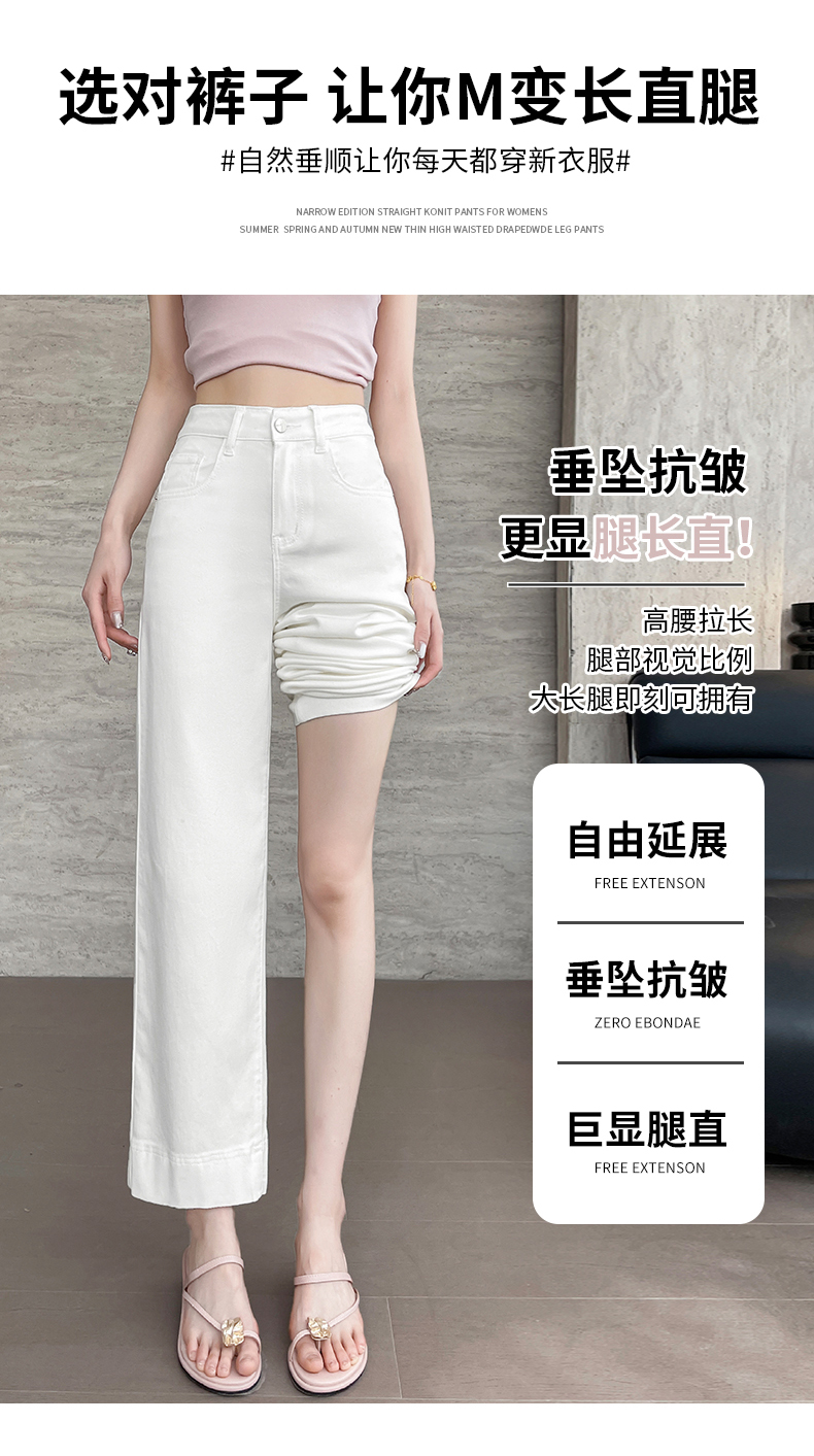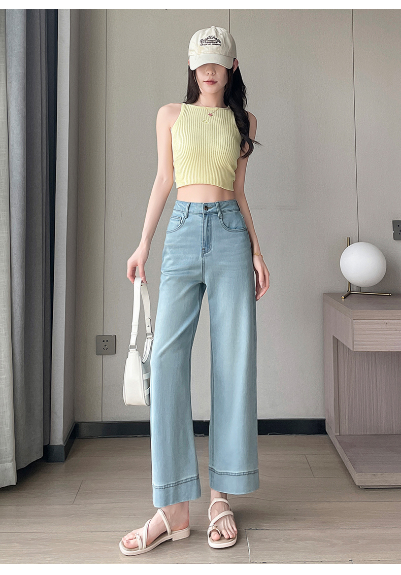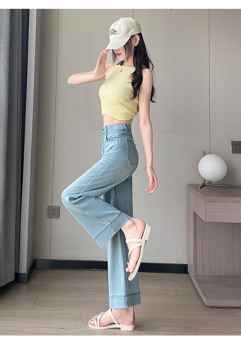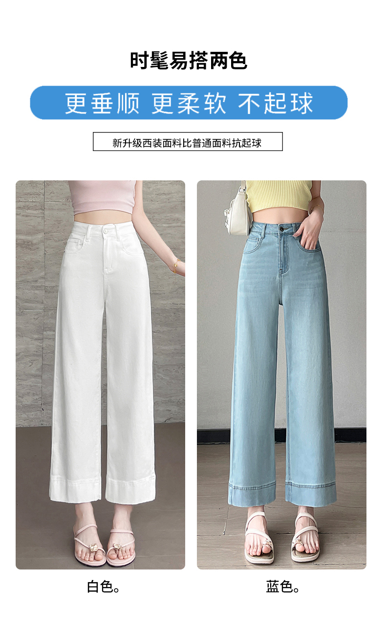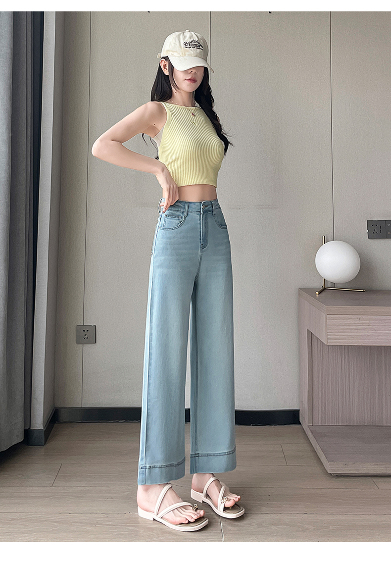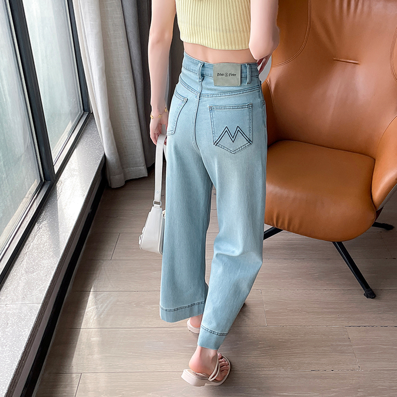 RY4163# 天丝阔腿牛仔裤女2026夏薄款高腰弹力小个子八九分冰丝刺绣直筒裤