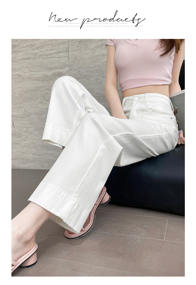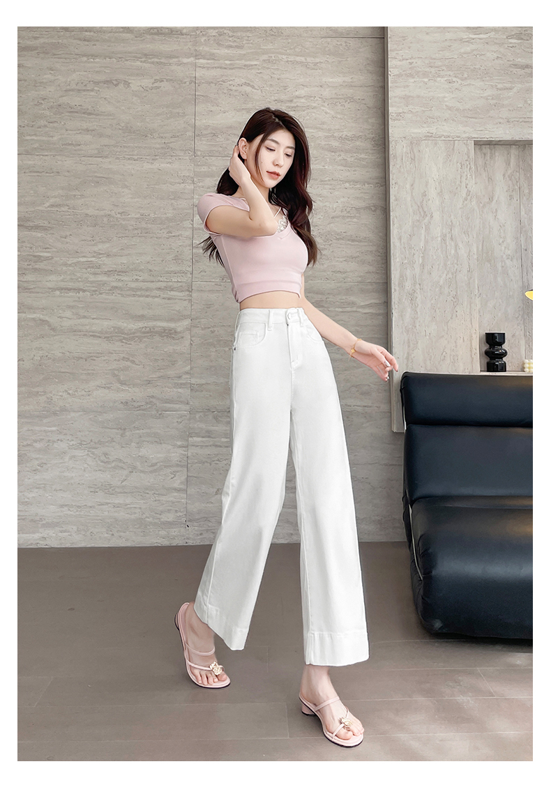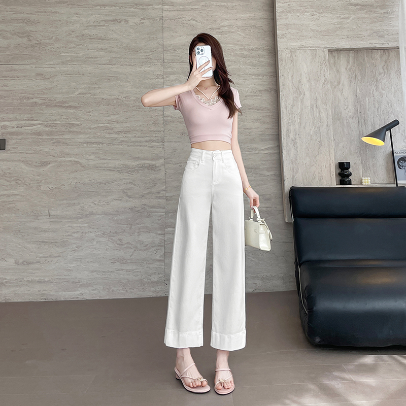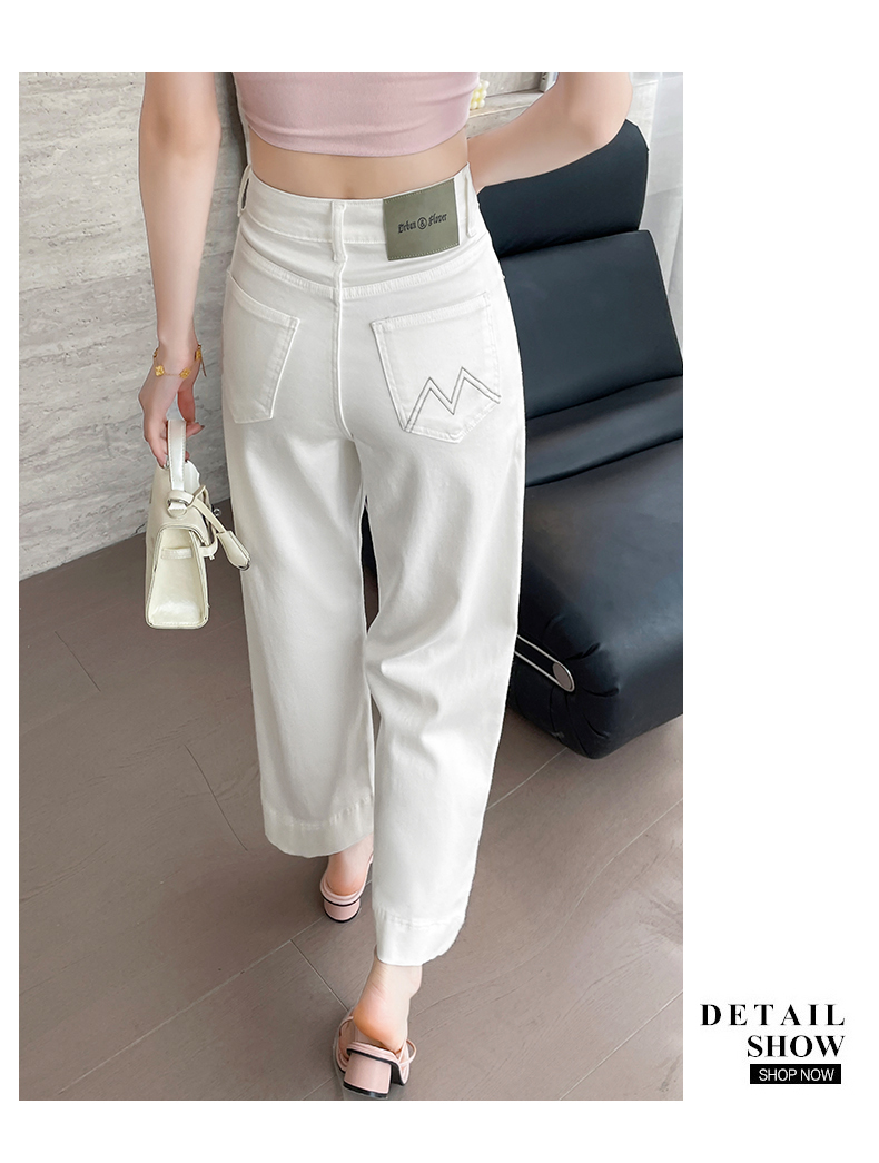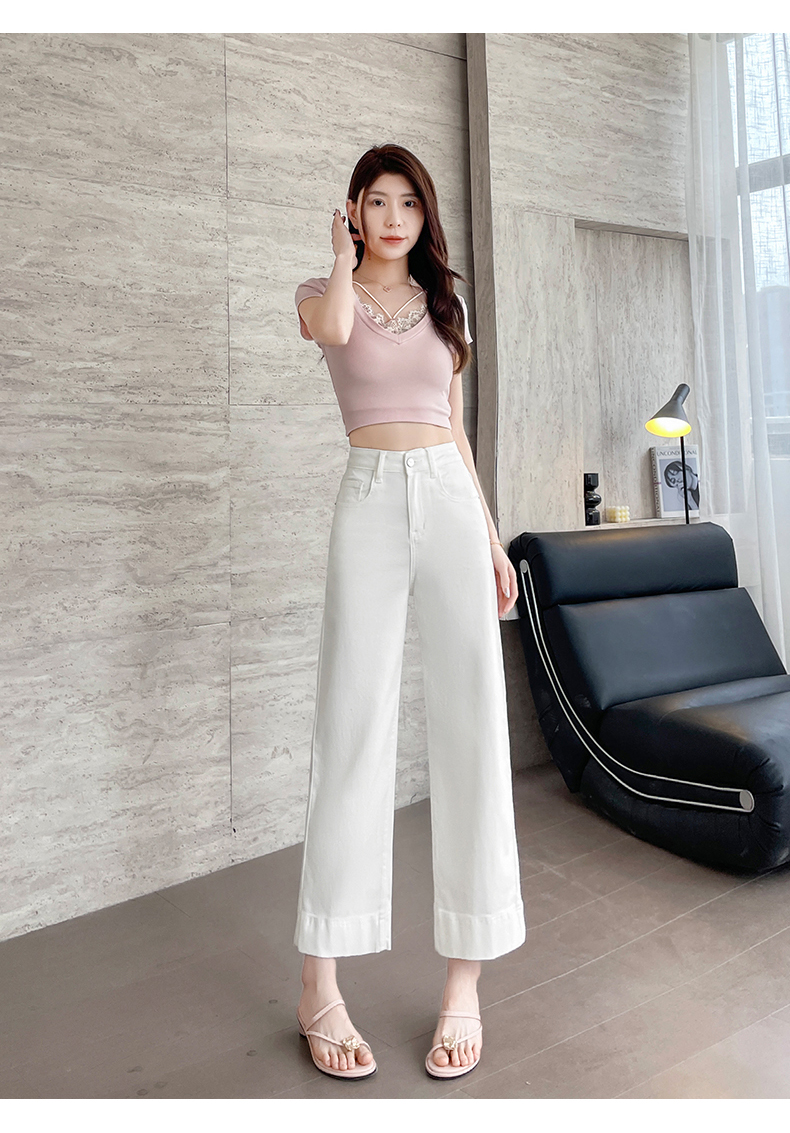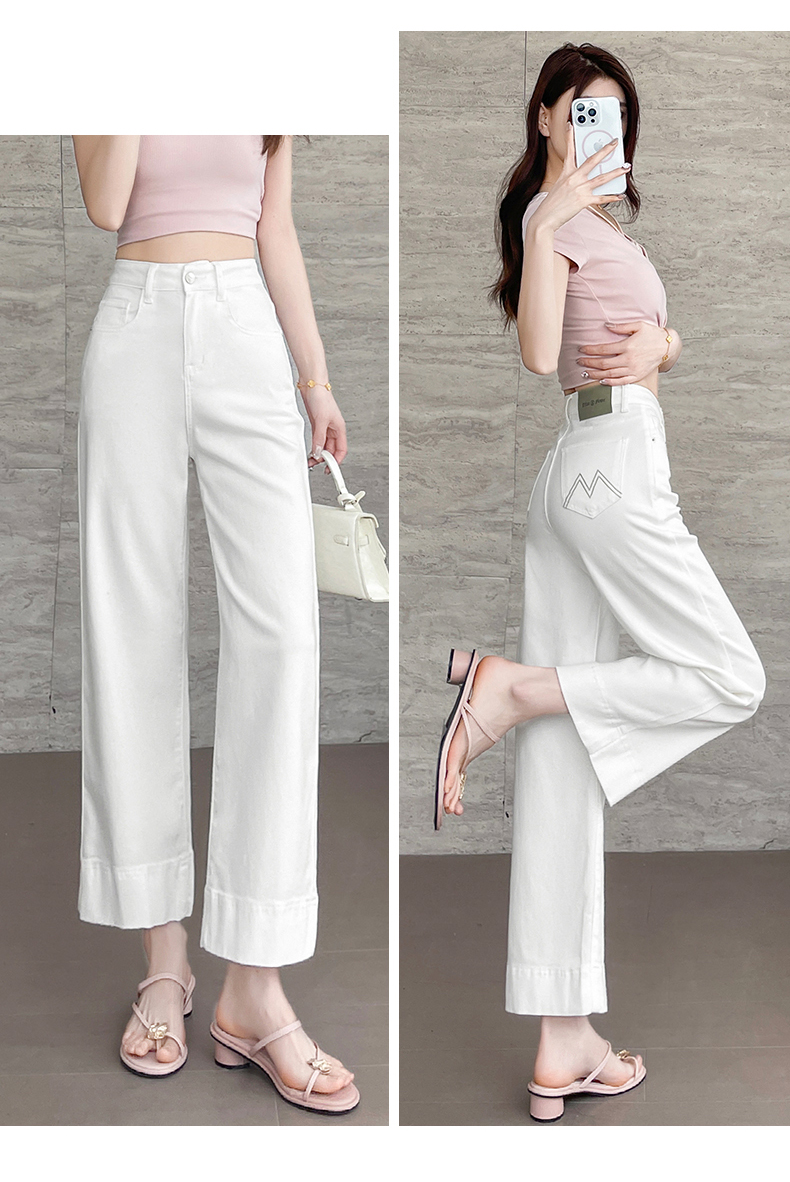 RY4163# 天丝阔腿牛仔裤女2026夏薄款高腰弹力小个子八九分冰丝刺绣直筒裤