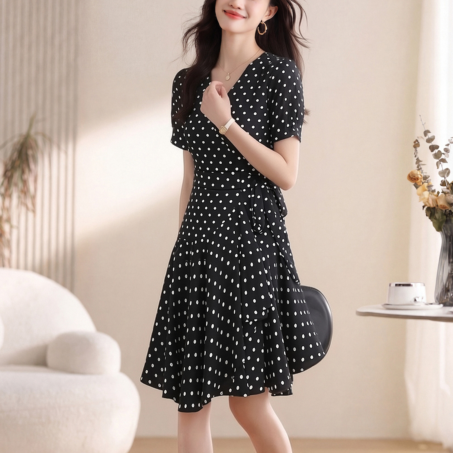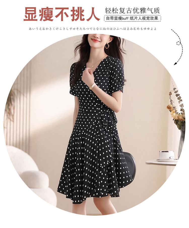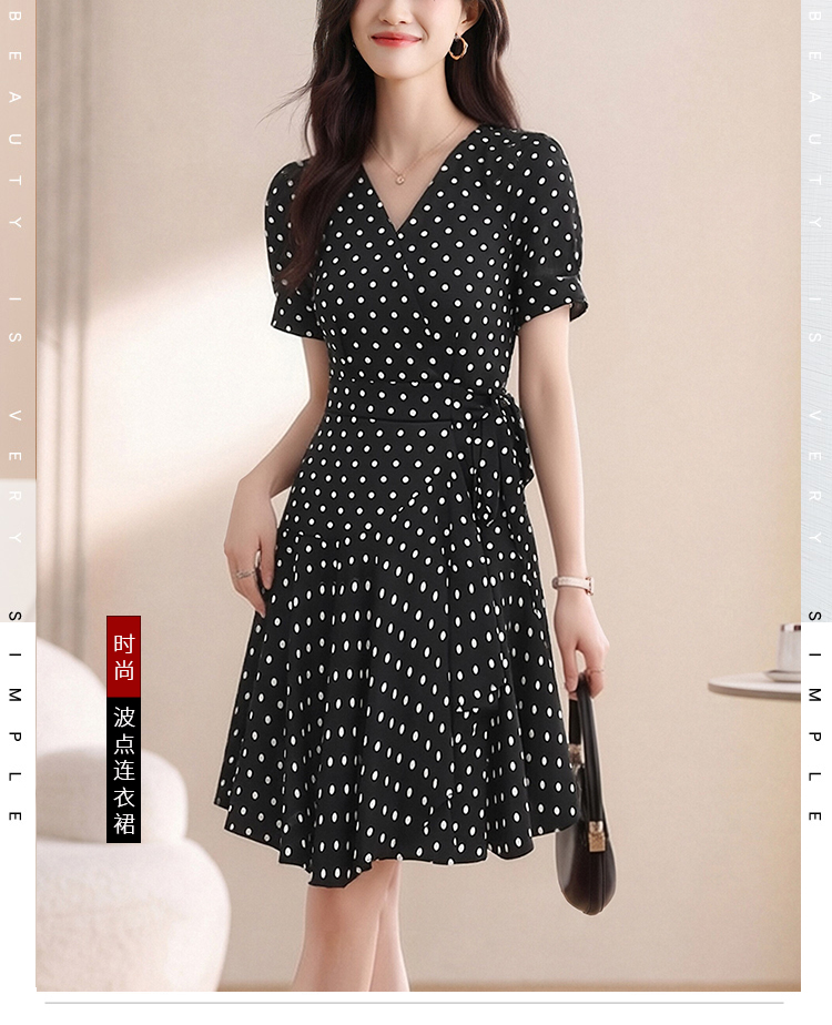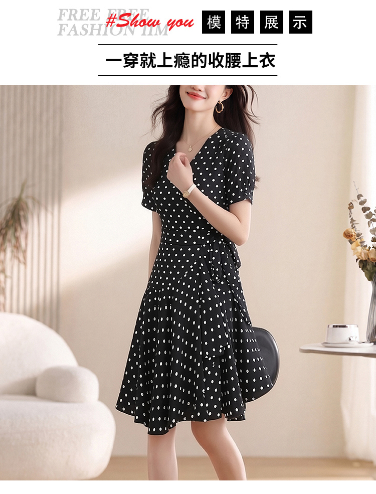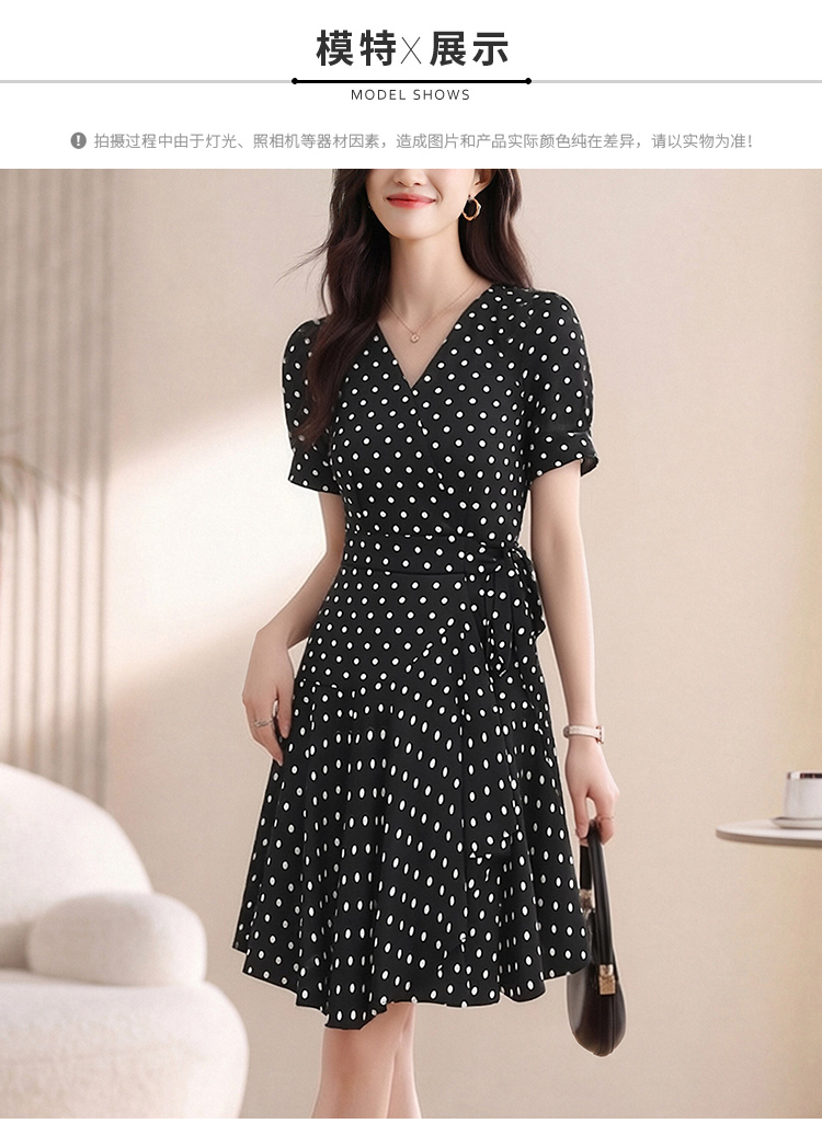 RY4221# 实拍 2026夏季新款小个子时尚绑带气质百搭减龄女神范V领中长裙女