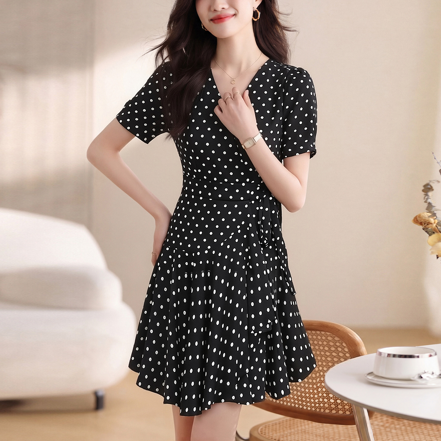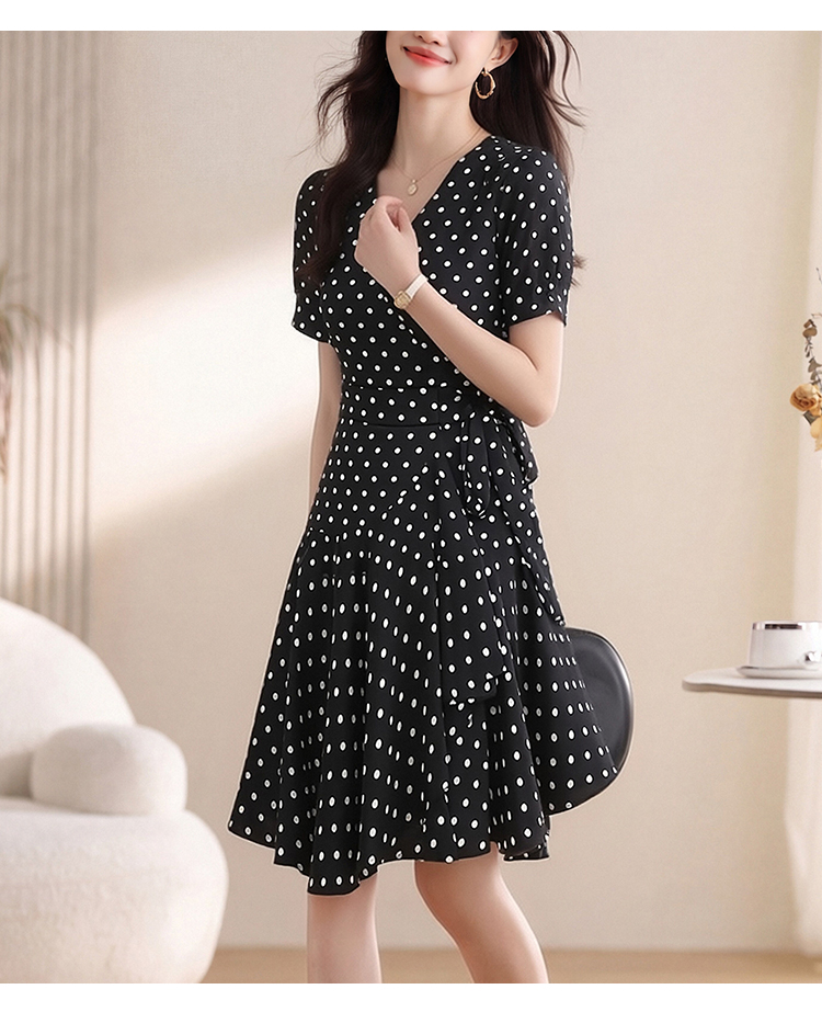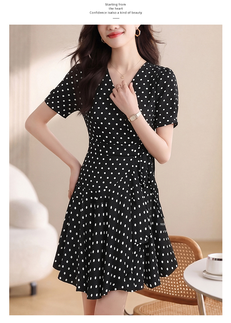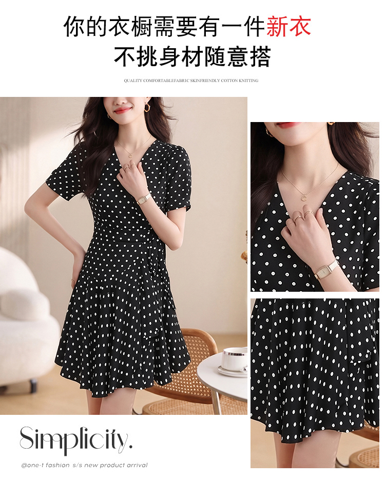 RY4221# 实拍 2026夏季新款小个子时尚绑带气质百搭减龄女神范V领中长裙女