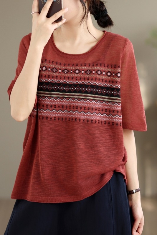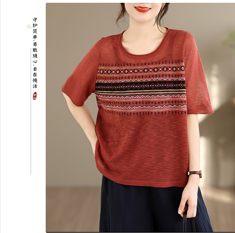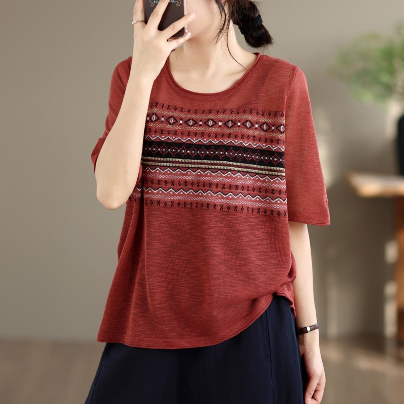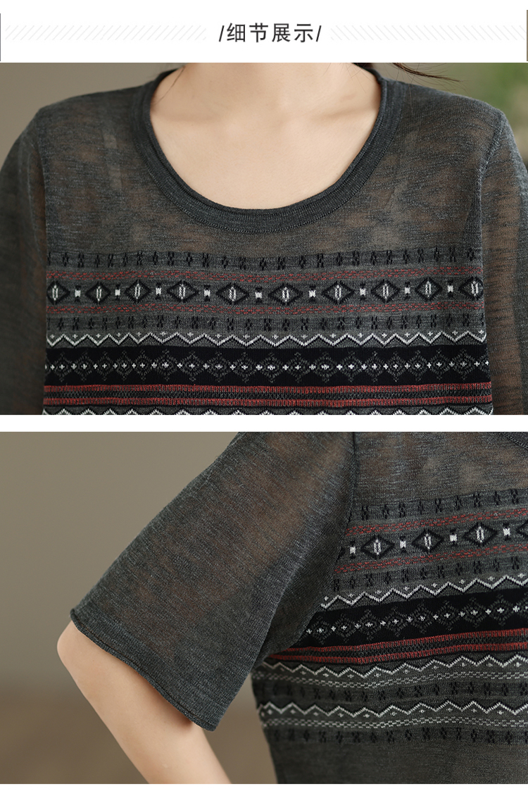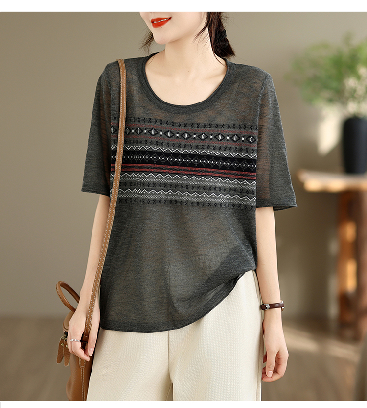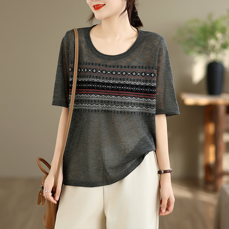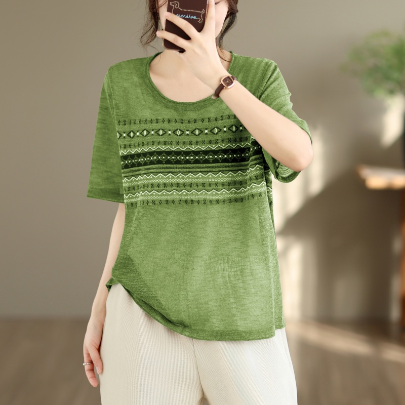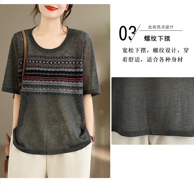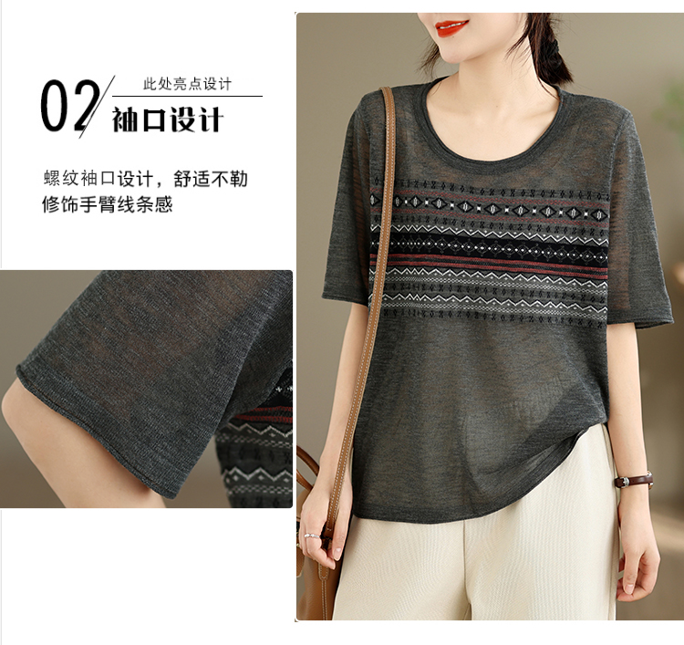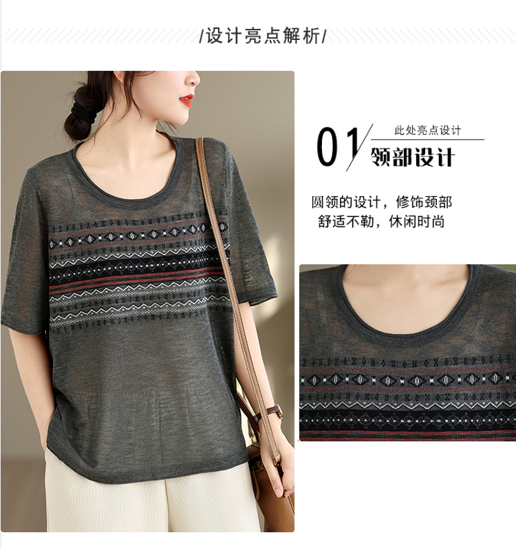 RY4233# 实拍高端欧货t恤韩版圆领洋气减龄冰丝薄款短袖针织女夏亚麻上衣