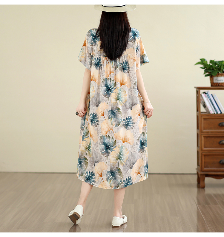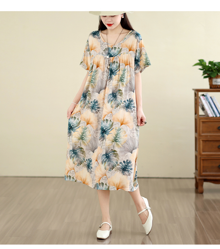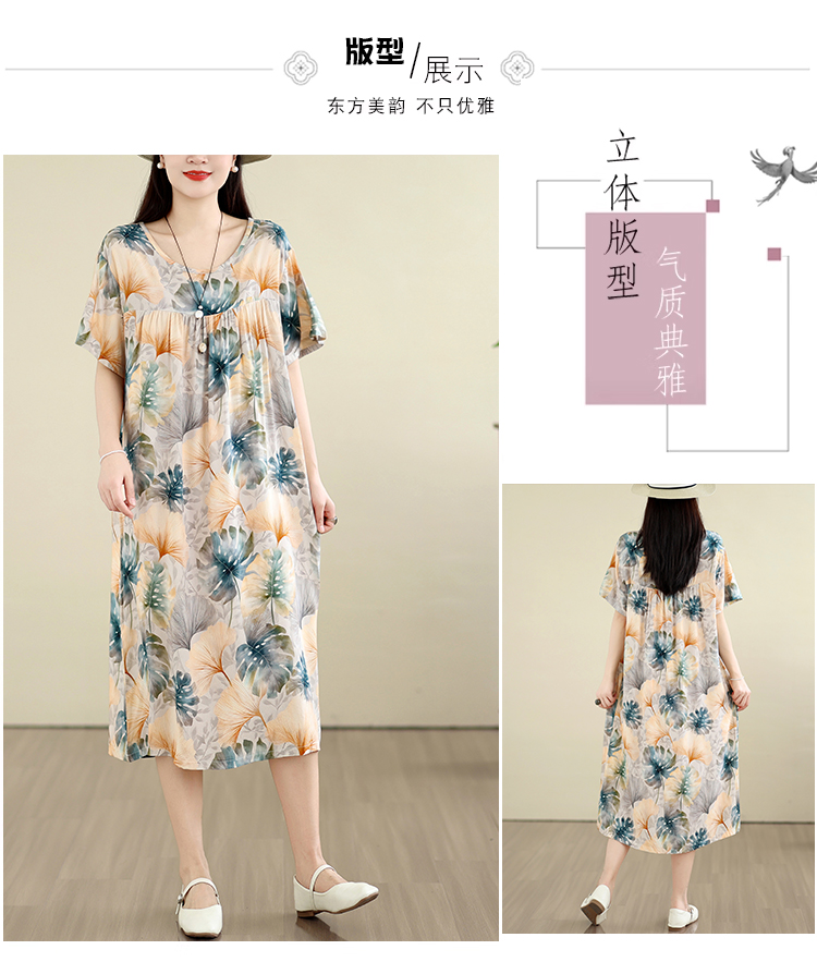 RY4234# 夏天甜美田园风复古花色女大码显瘦宽松居家裙棉绸文艺睡裙