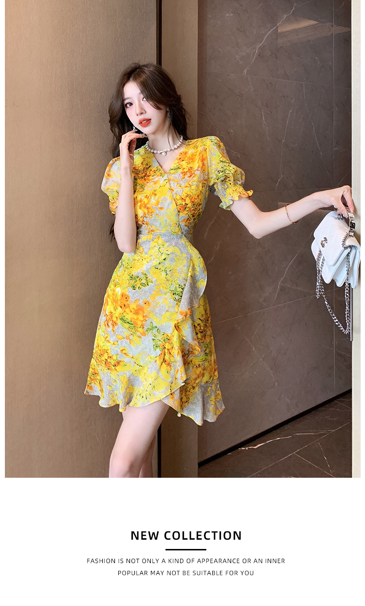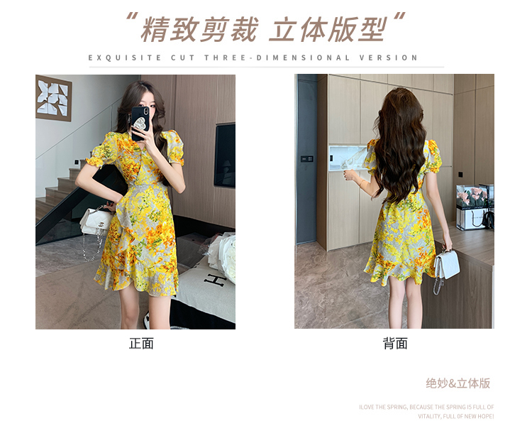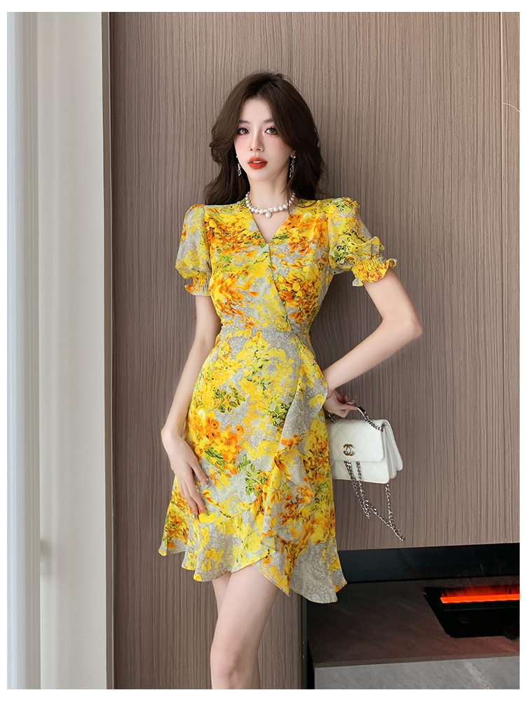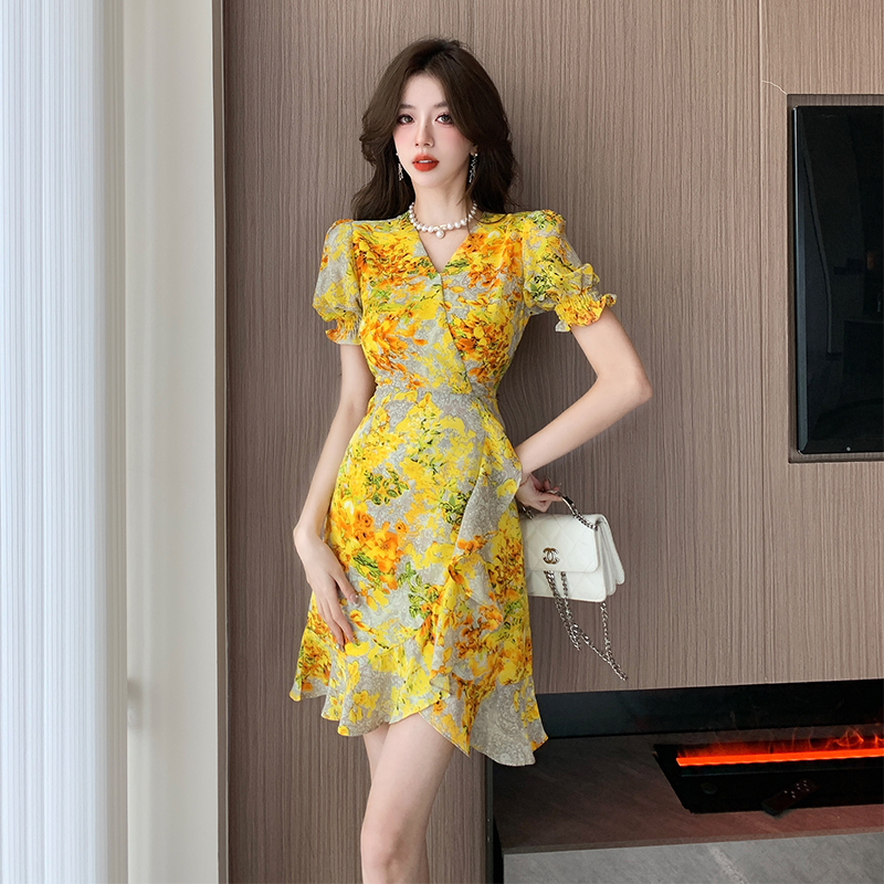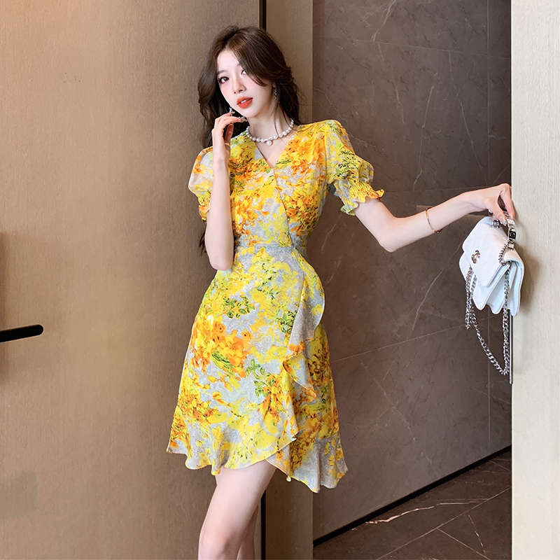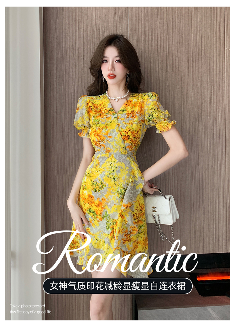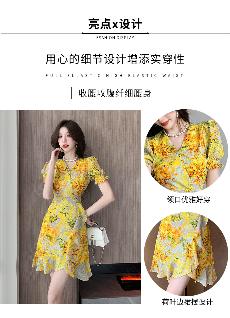 RY4236# 碎花雪纺连衣裙女海边度假气质显瘦长裙子特价