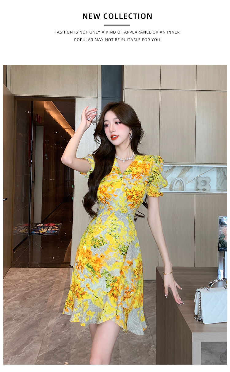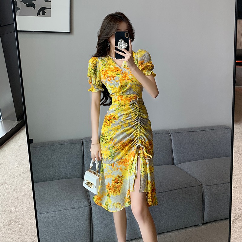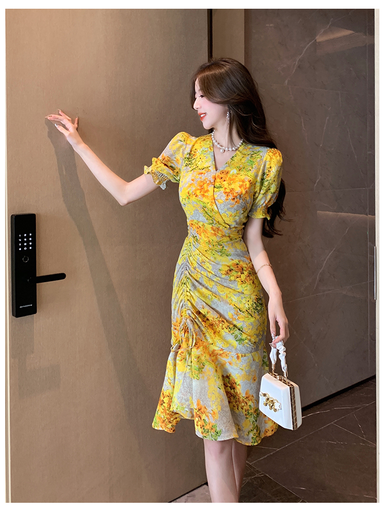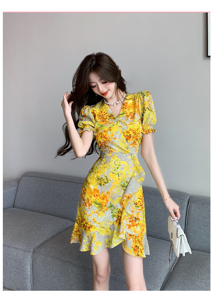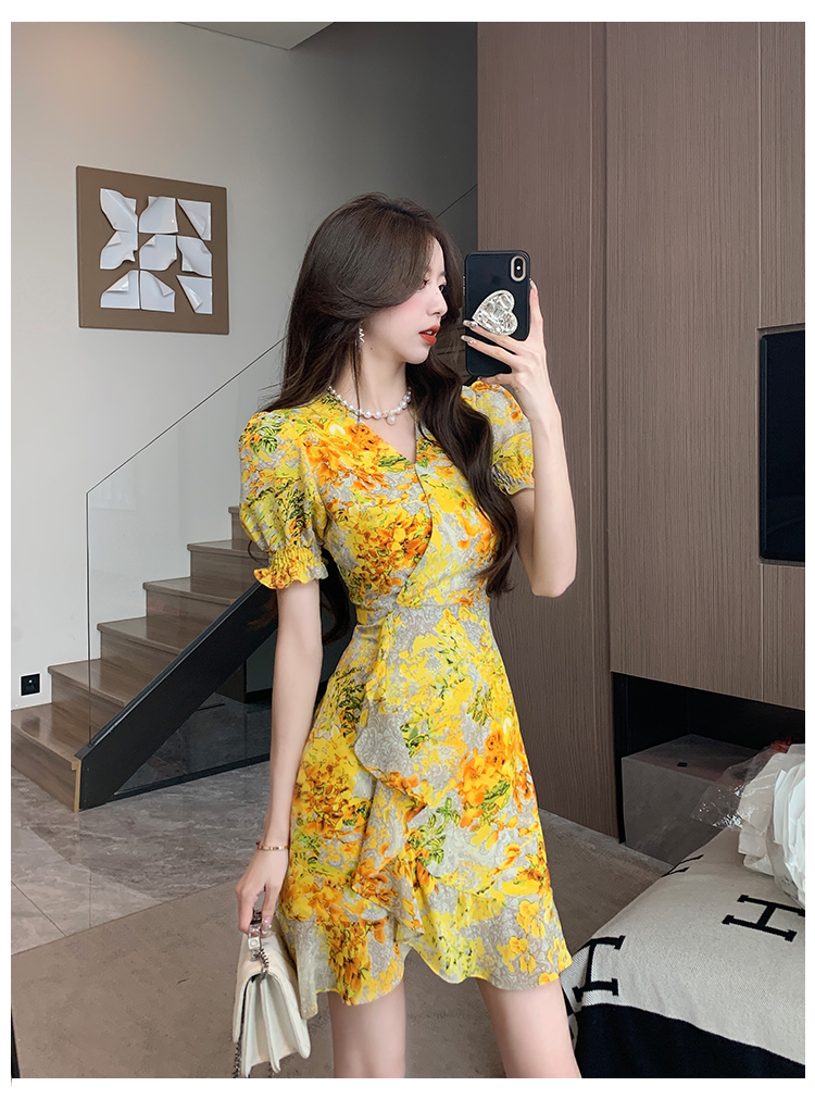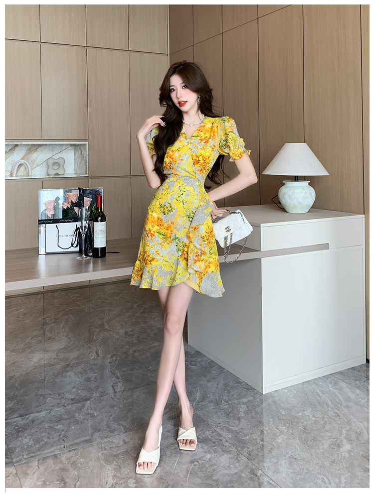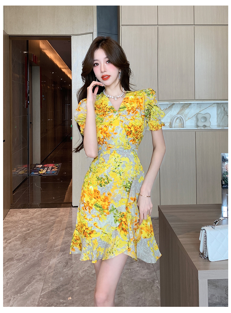 RY4236# 碎花雪纺连衣裙女海边度假气质显瘦长裙子特价