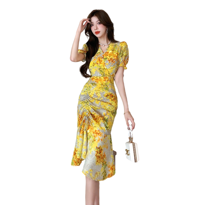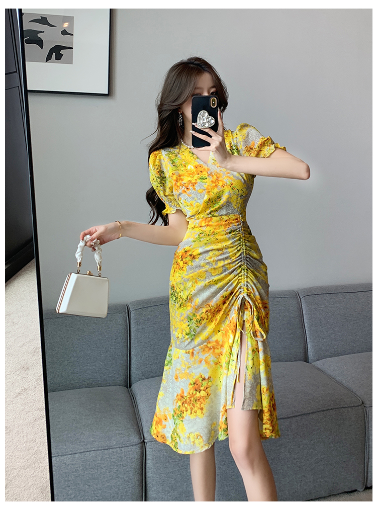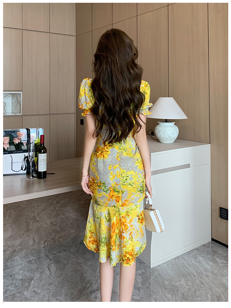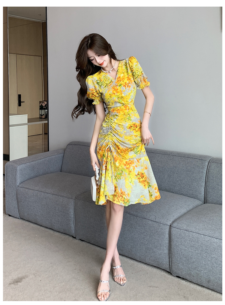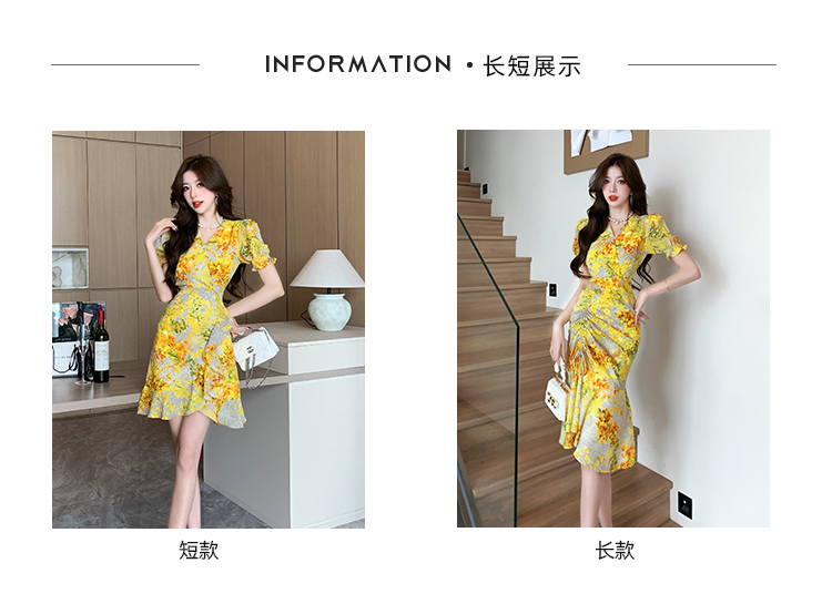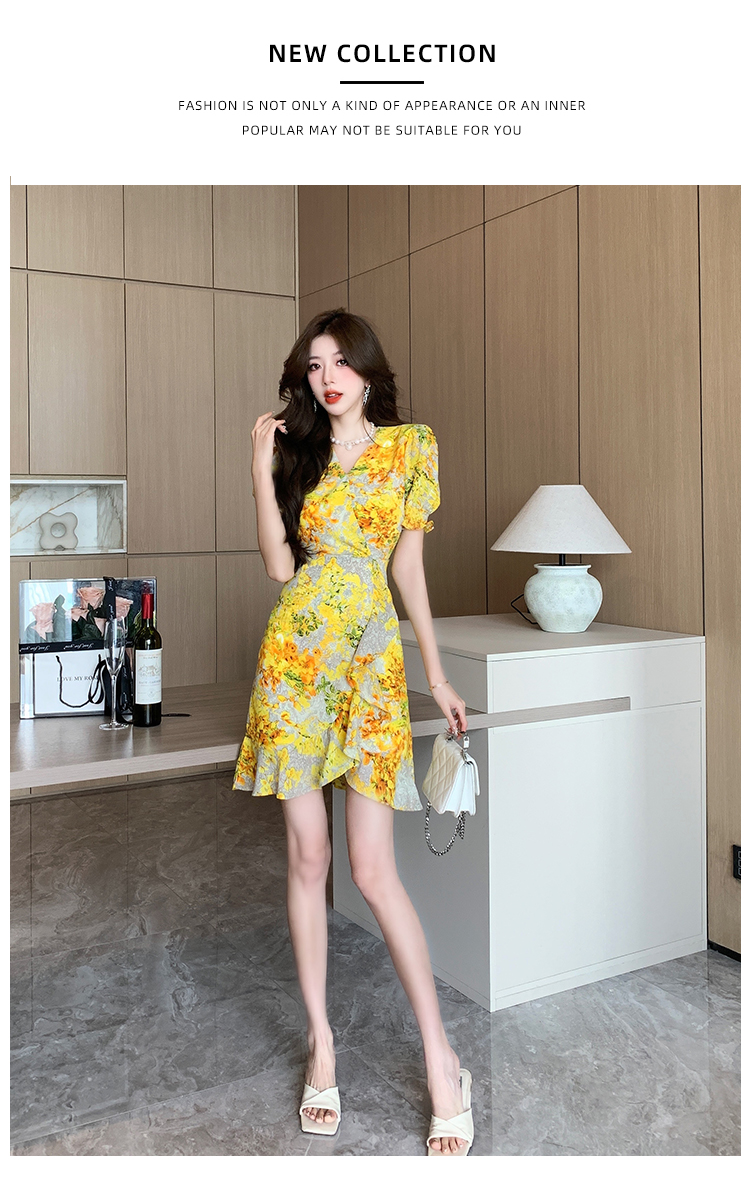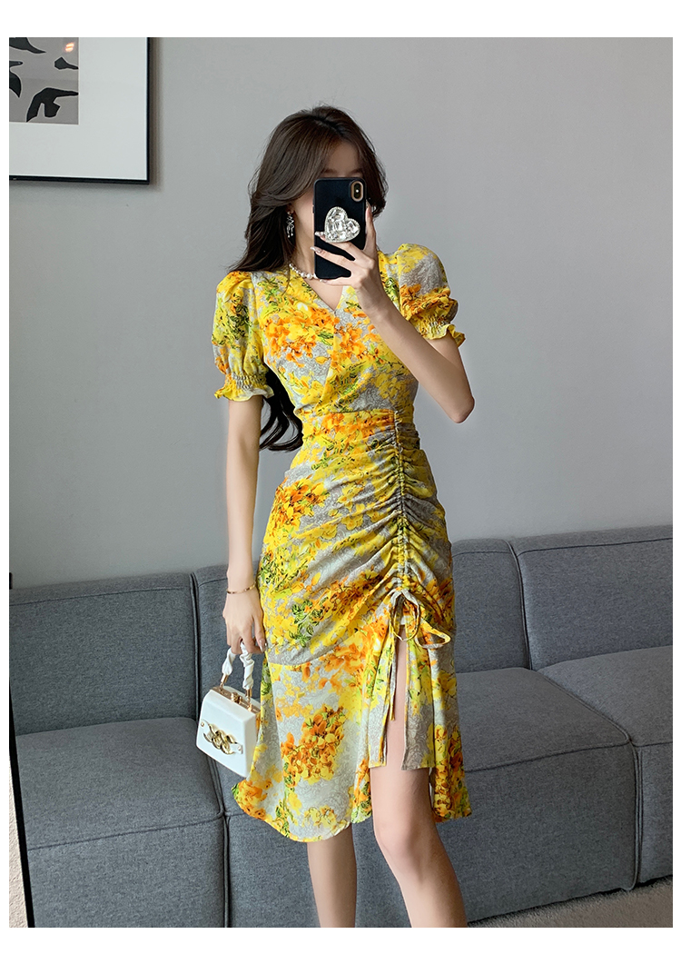 RY4236# 碎花雪纺连衣裙女海边度假气质显瘦长裙子特价
