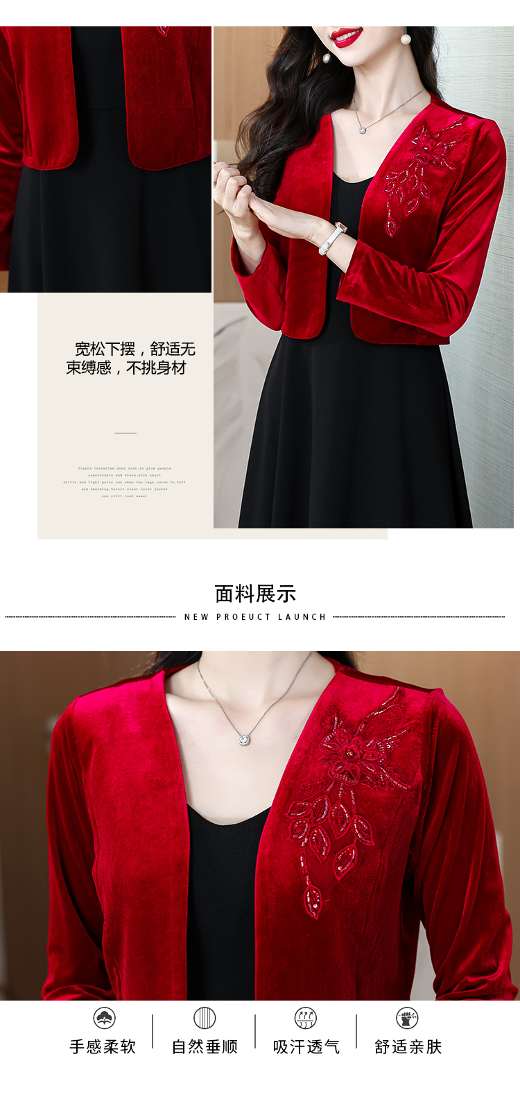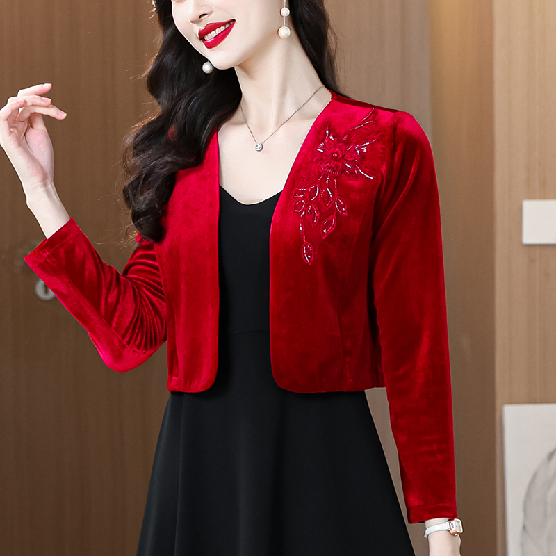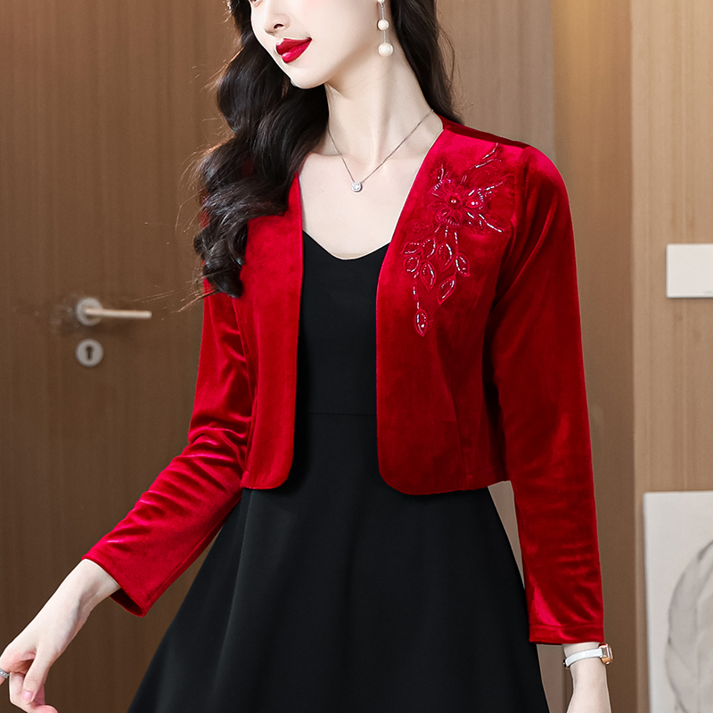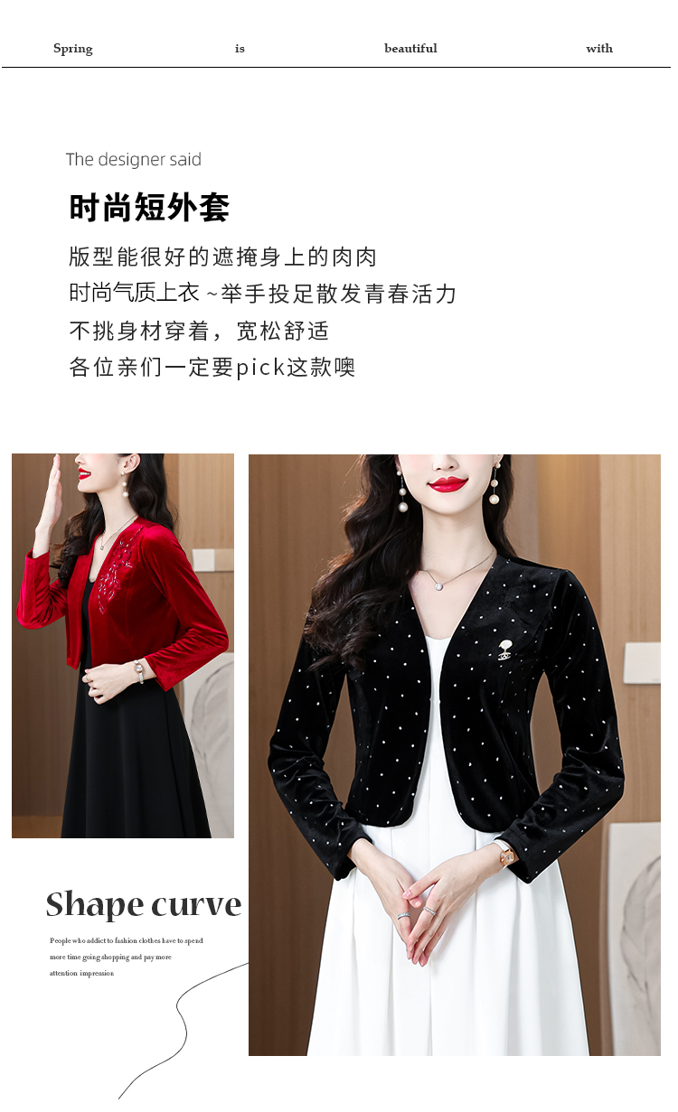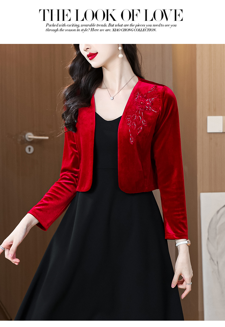 RY4249# 2026年春 金丝绒小外套小香风短外套披肩外搭配裙子和旗袍