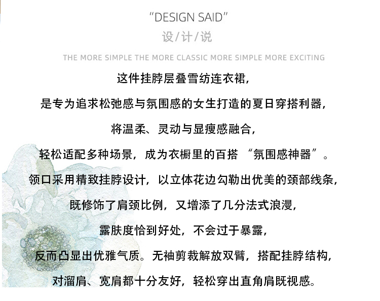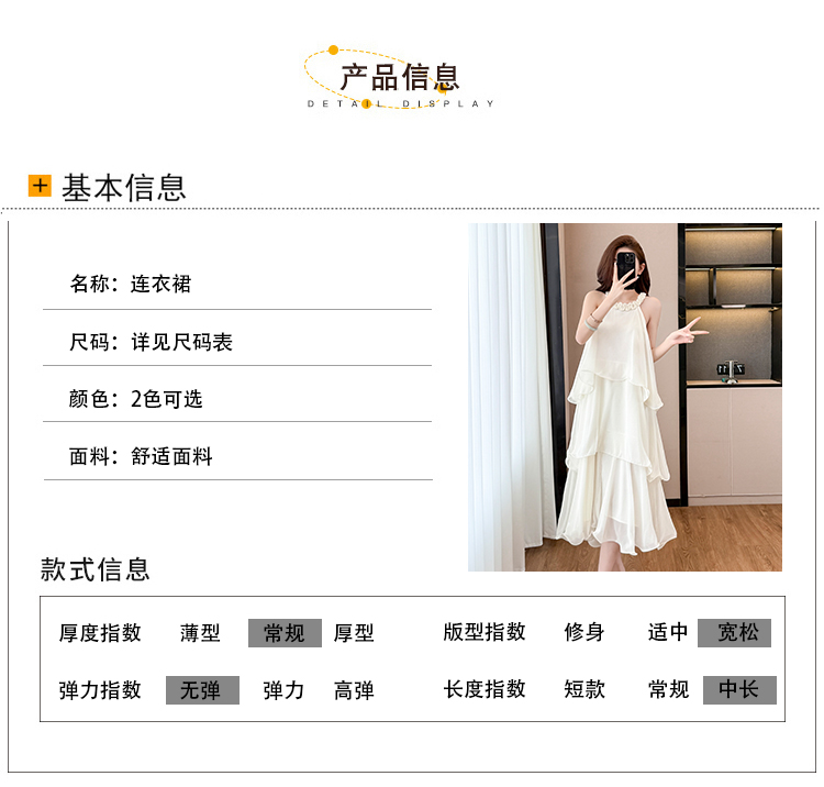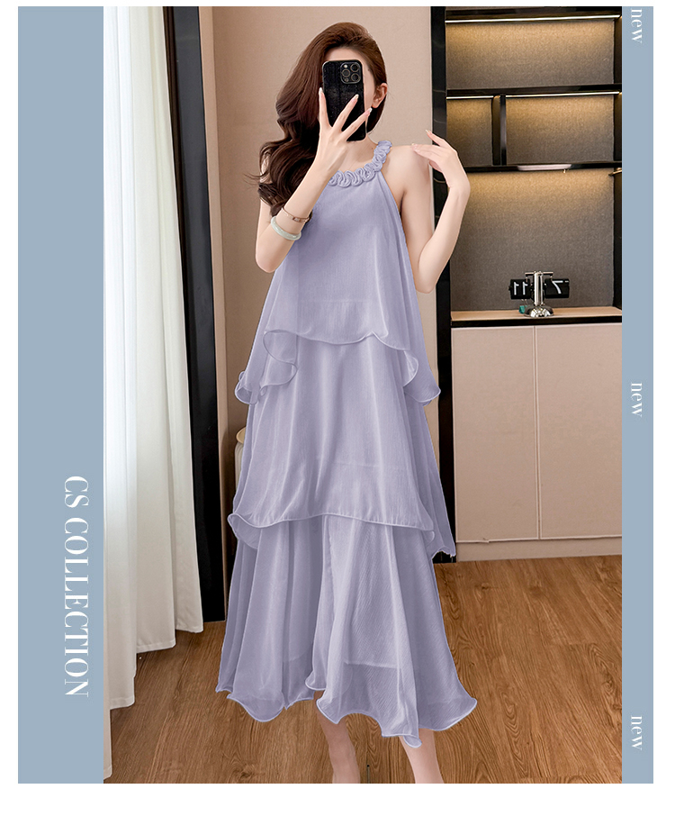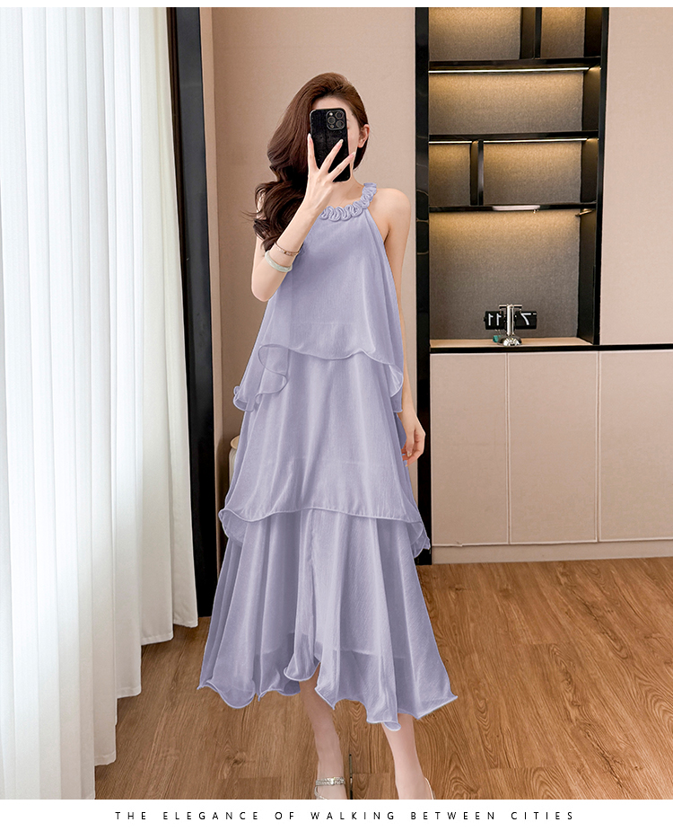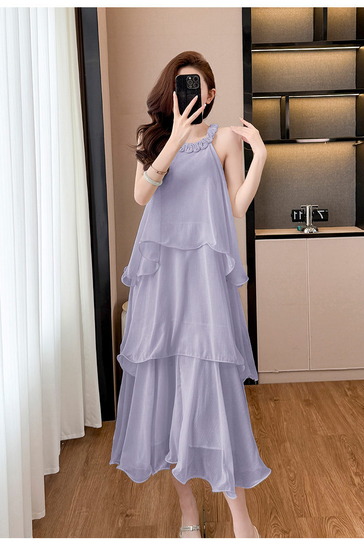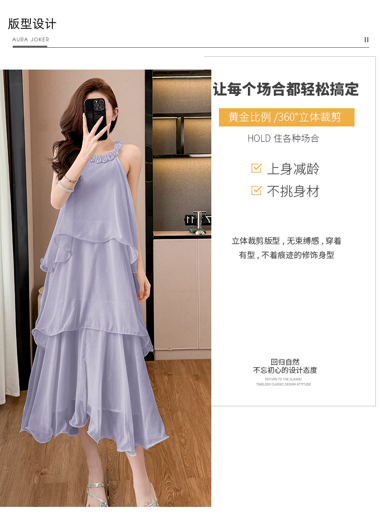 RY4259# 白玉兰春夏法式度假风名媛千金雪纺蛋糕裙气质无袖挂脖连衣裙夏
