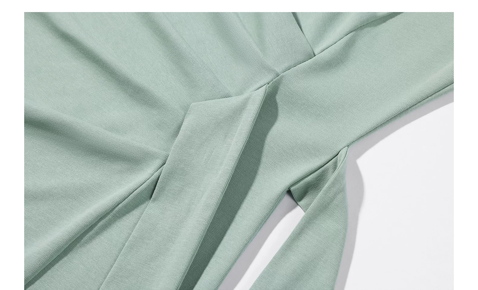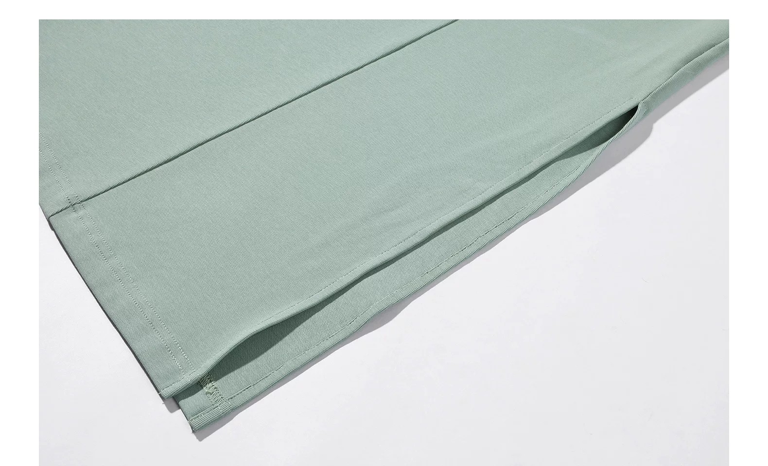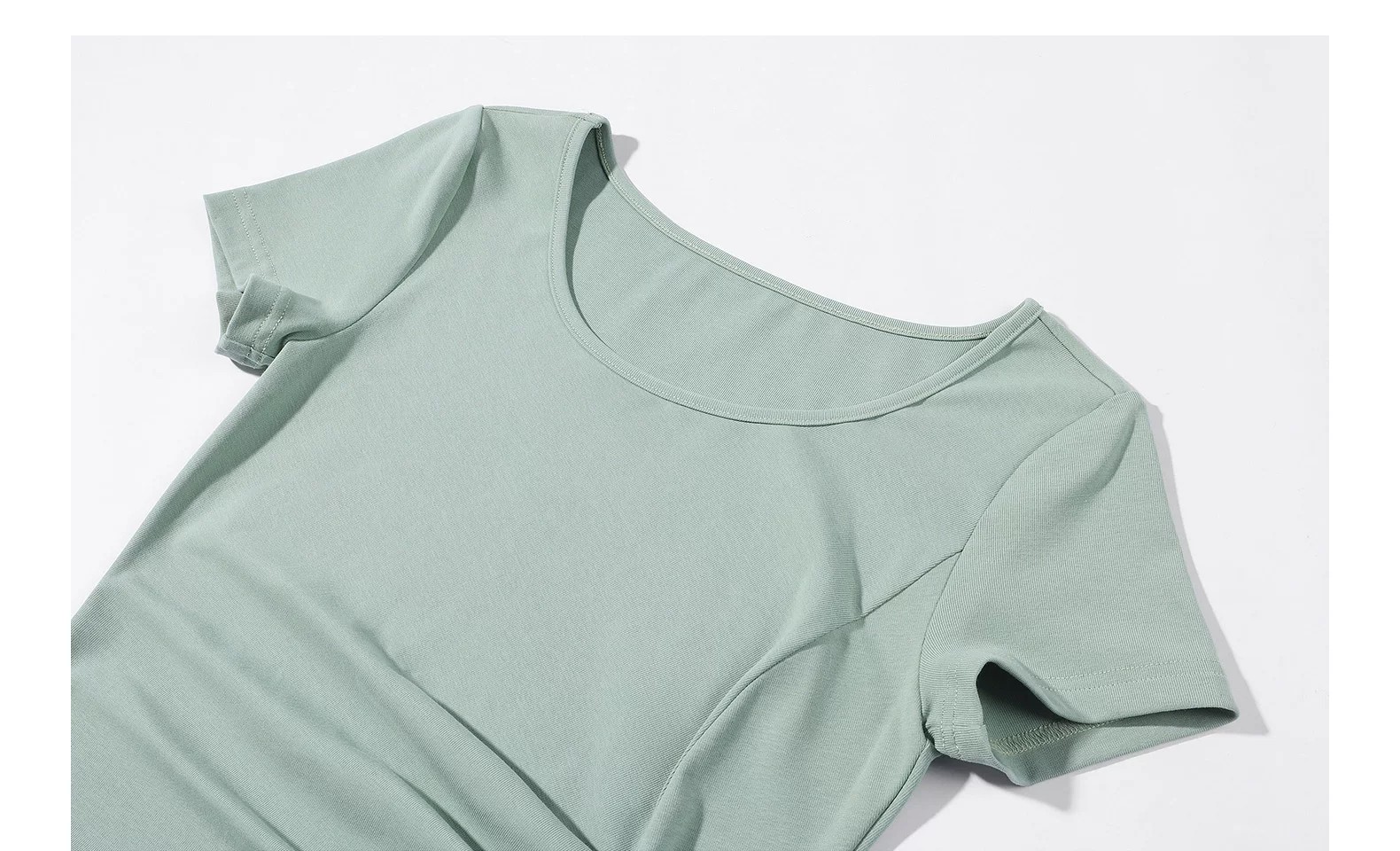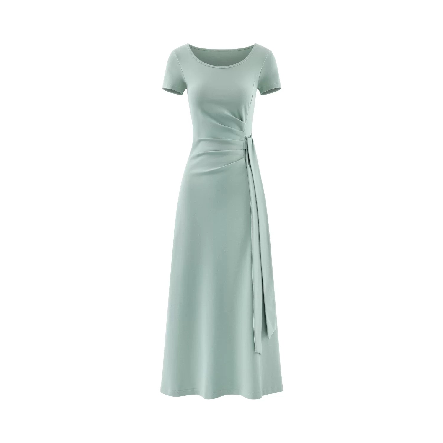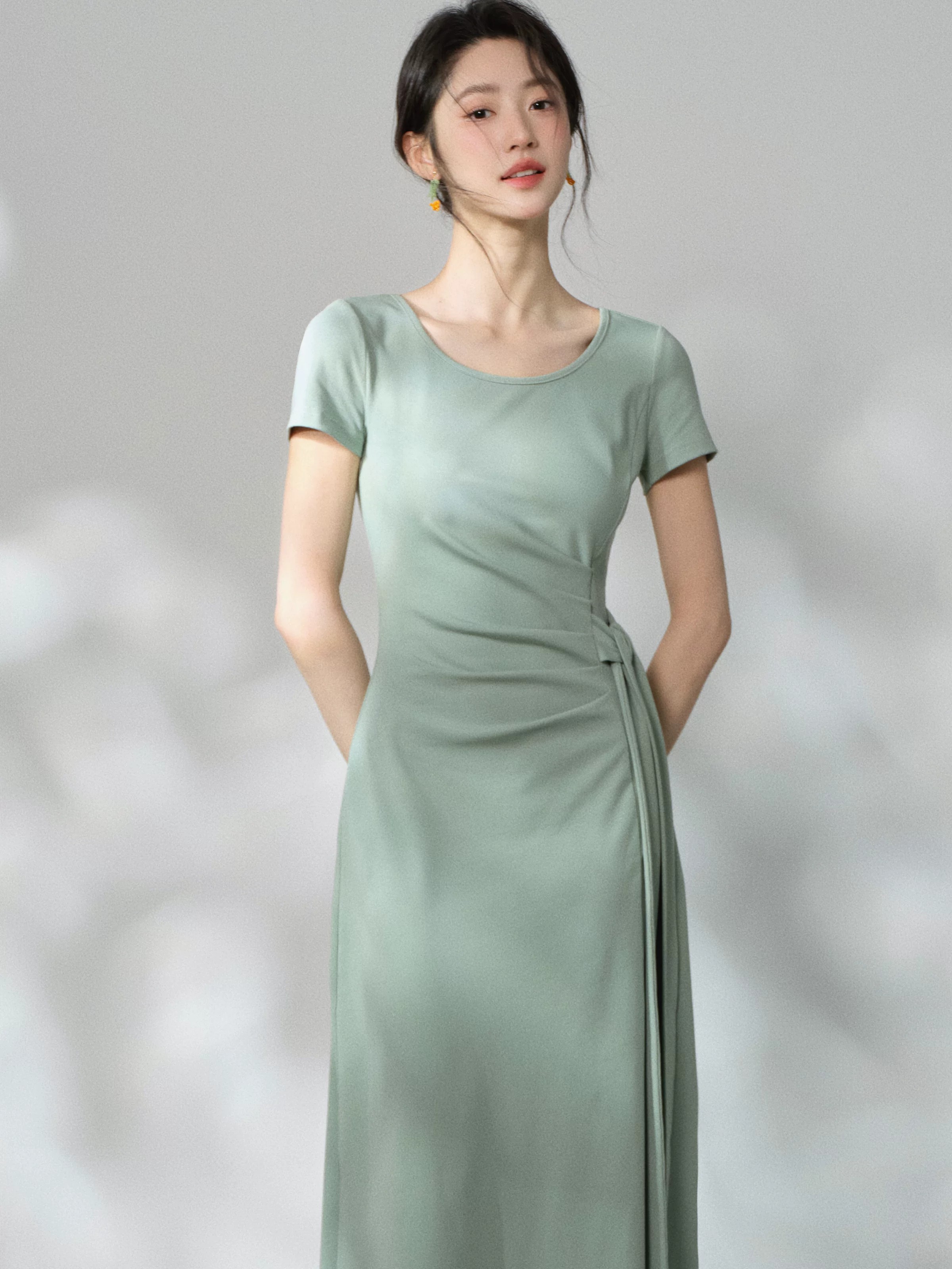 RY4264# 薄荷绿绑带修身显瘦法式开衩短袖连衣裙女圆领小个子
