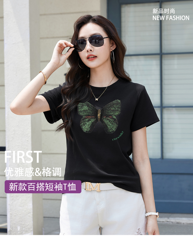 RY4293# 黑色短袖t恤女宽松夏季2026年新款时尚洋气正肩体恤半袖上衣百搭