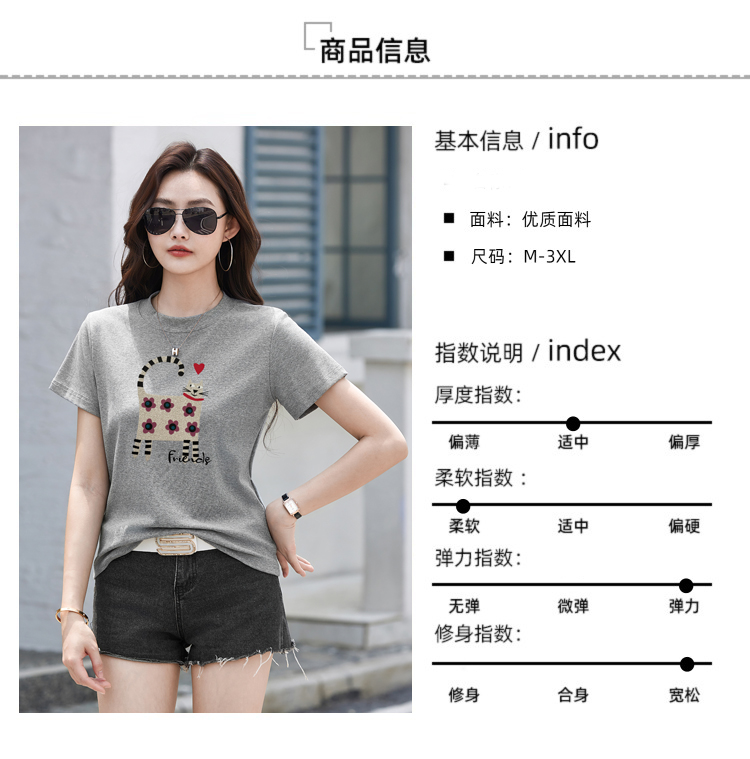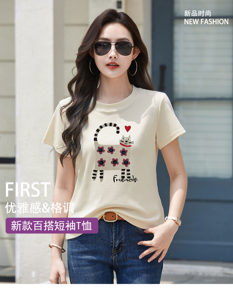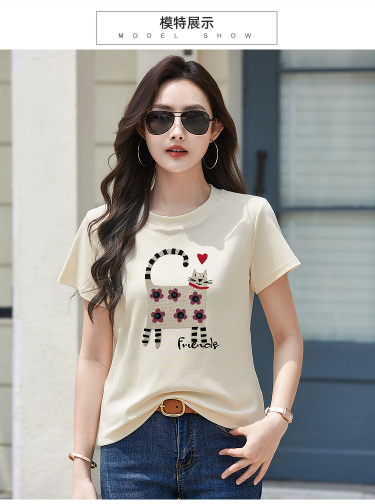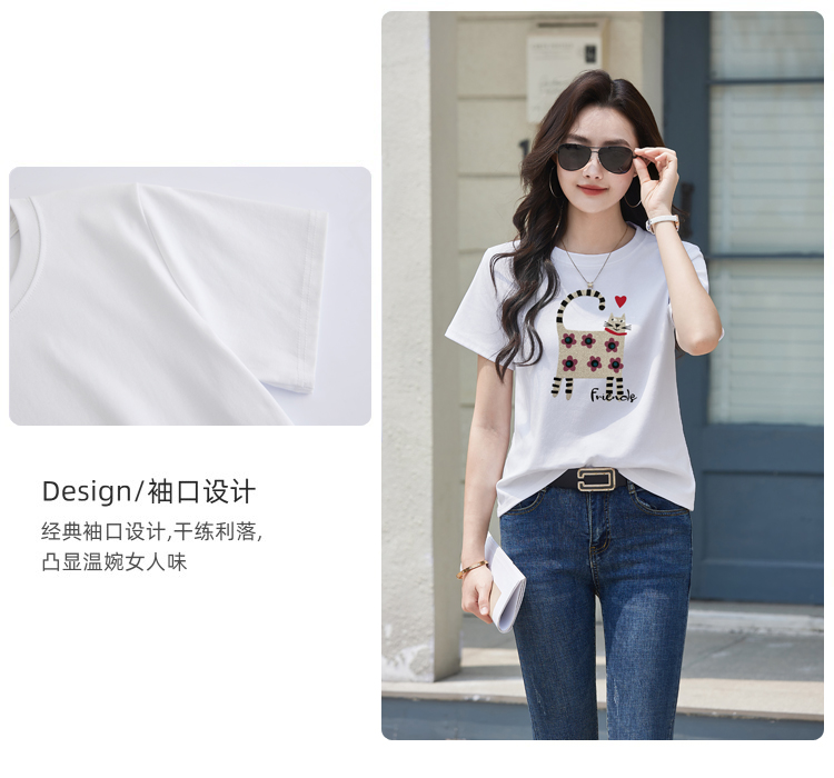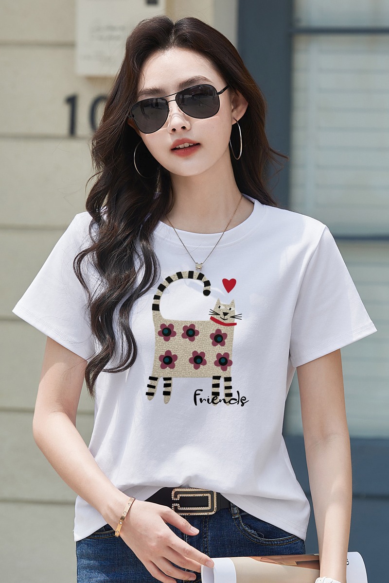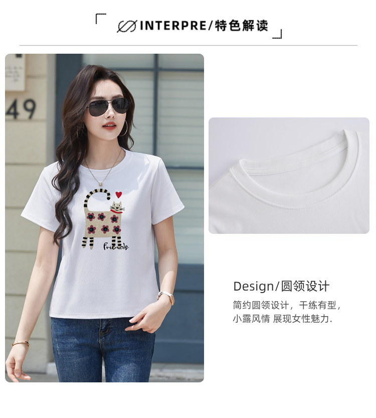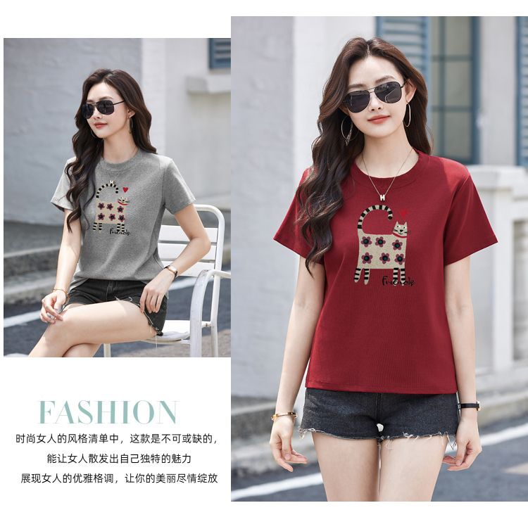 RY4296# 2026新款短袖T恤女装夏季潮流时尚宽松显瘦简约圆领立体图案上衣