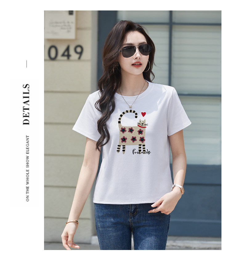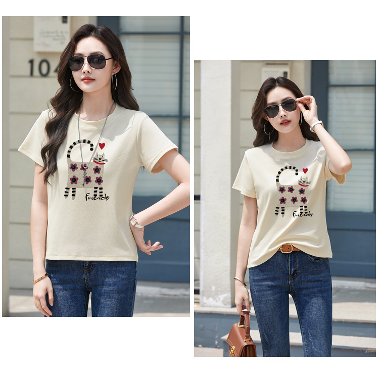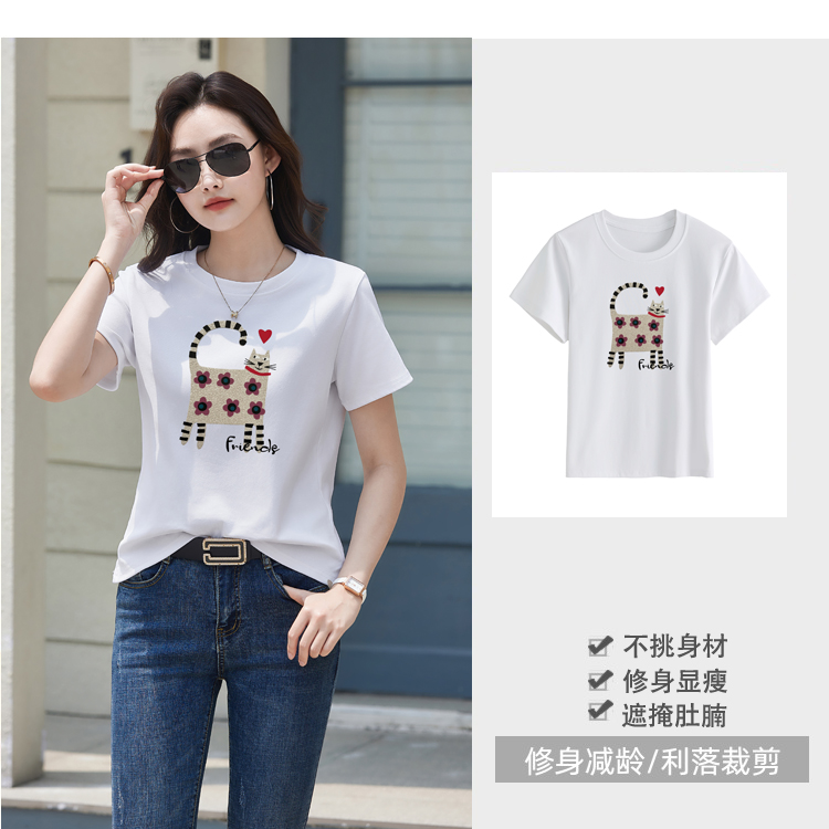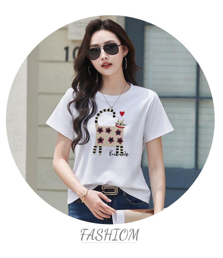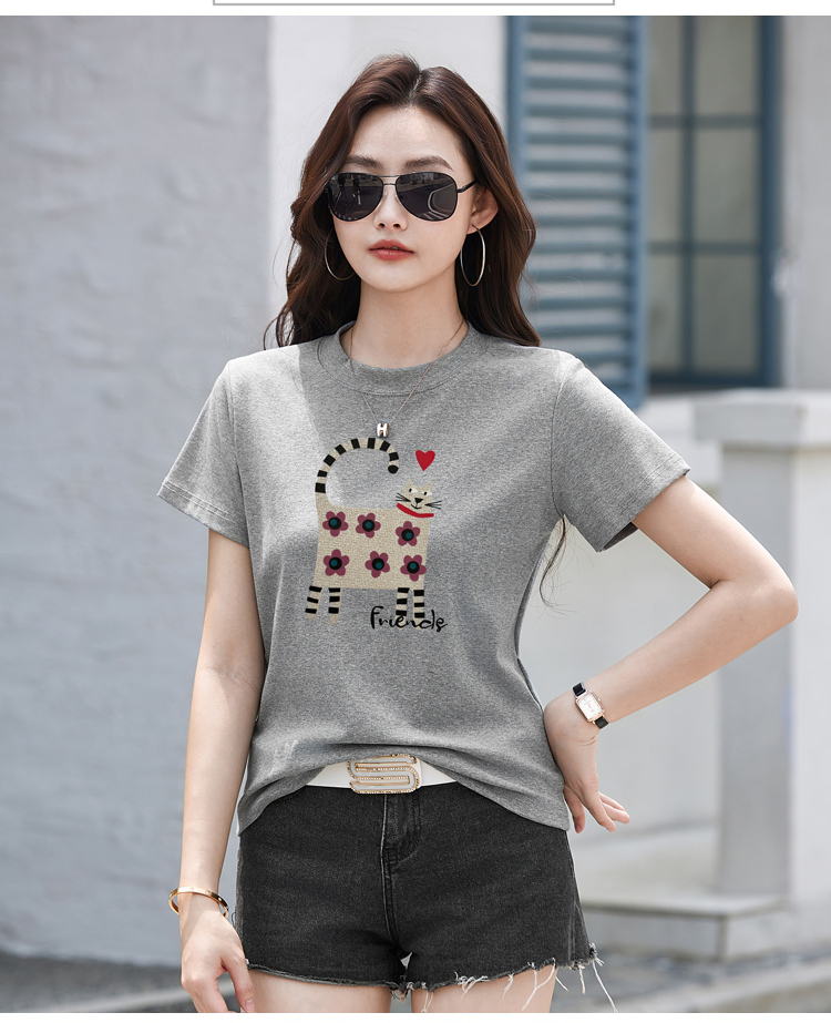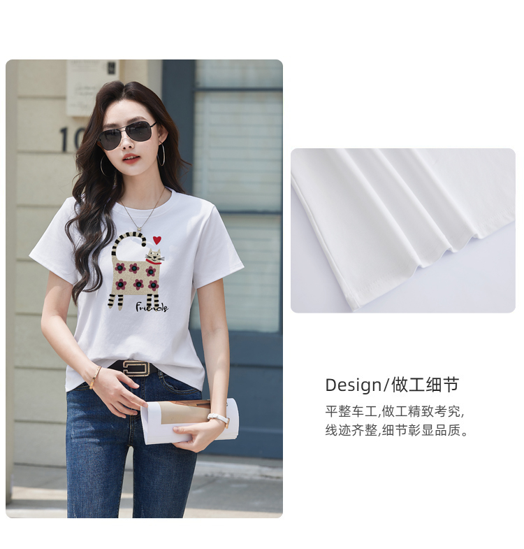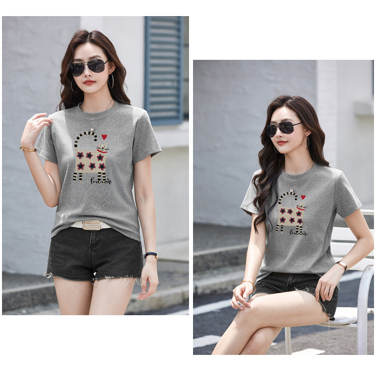 RY4296# 2026新款短袖T恤女装夏季潮流时尚宽松显瘦简约圆领立体图案上衣